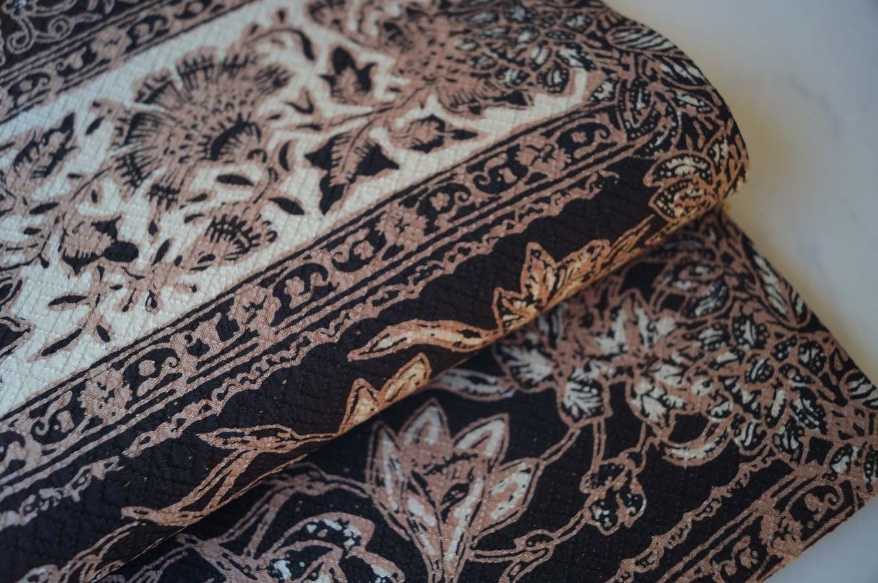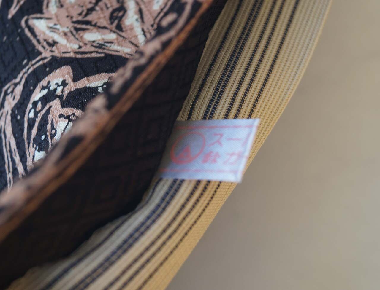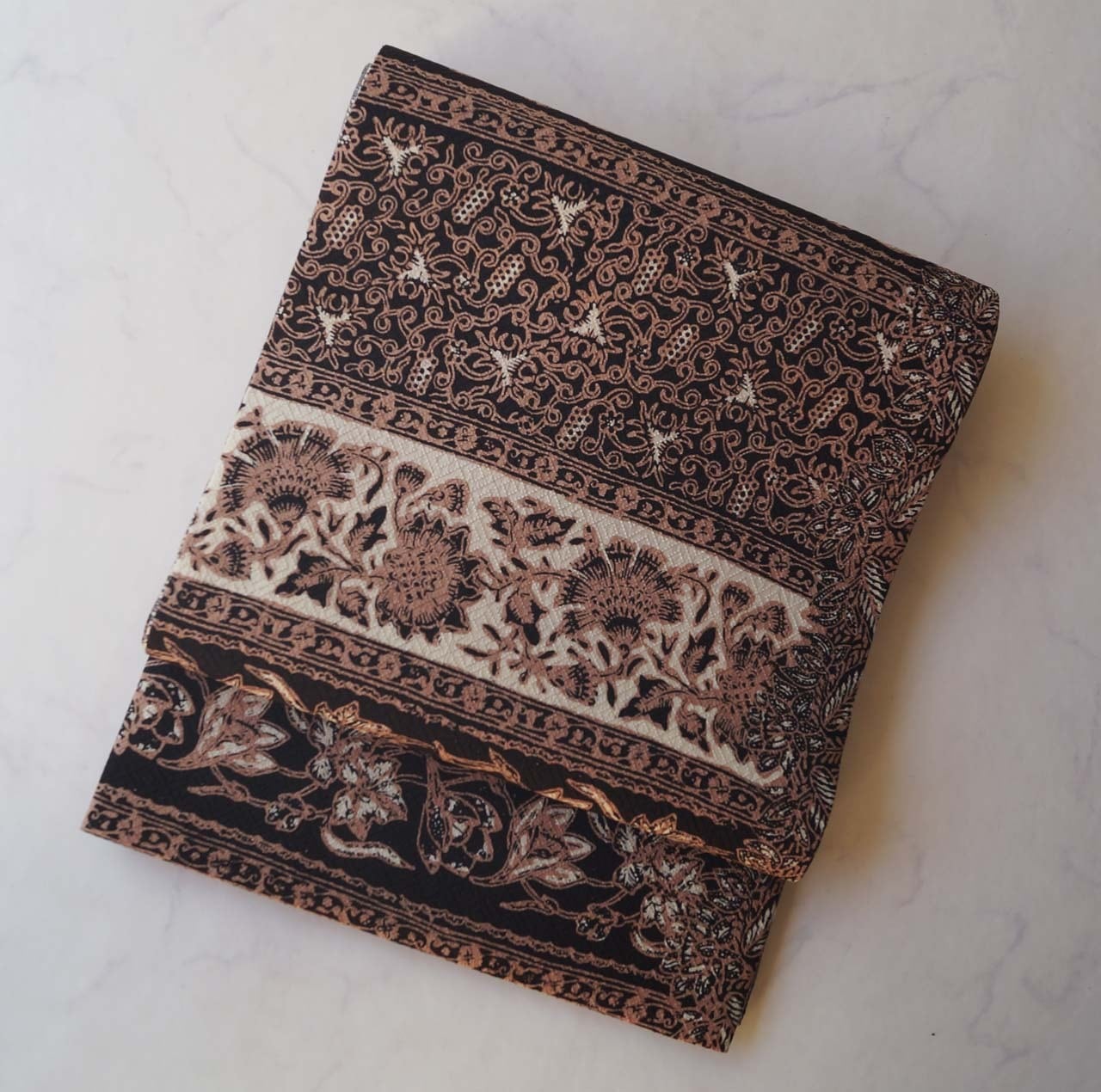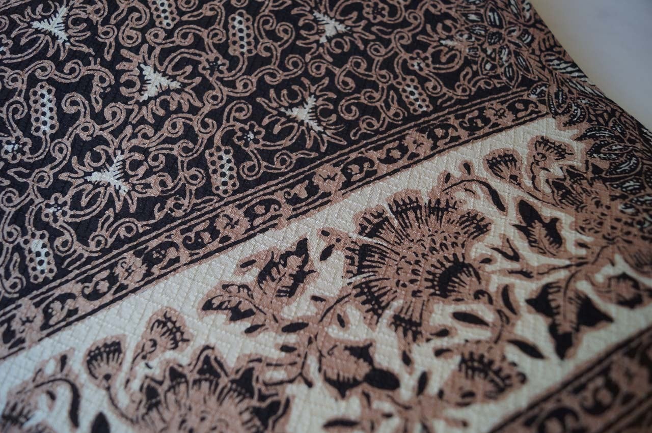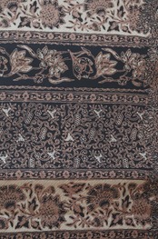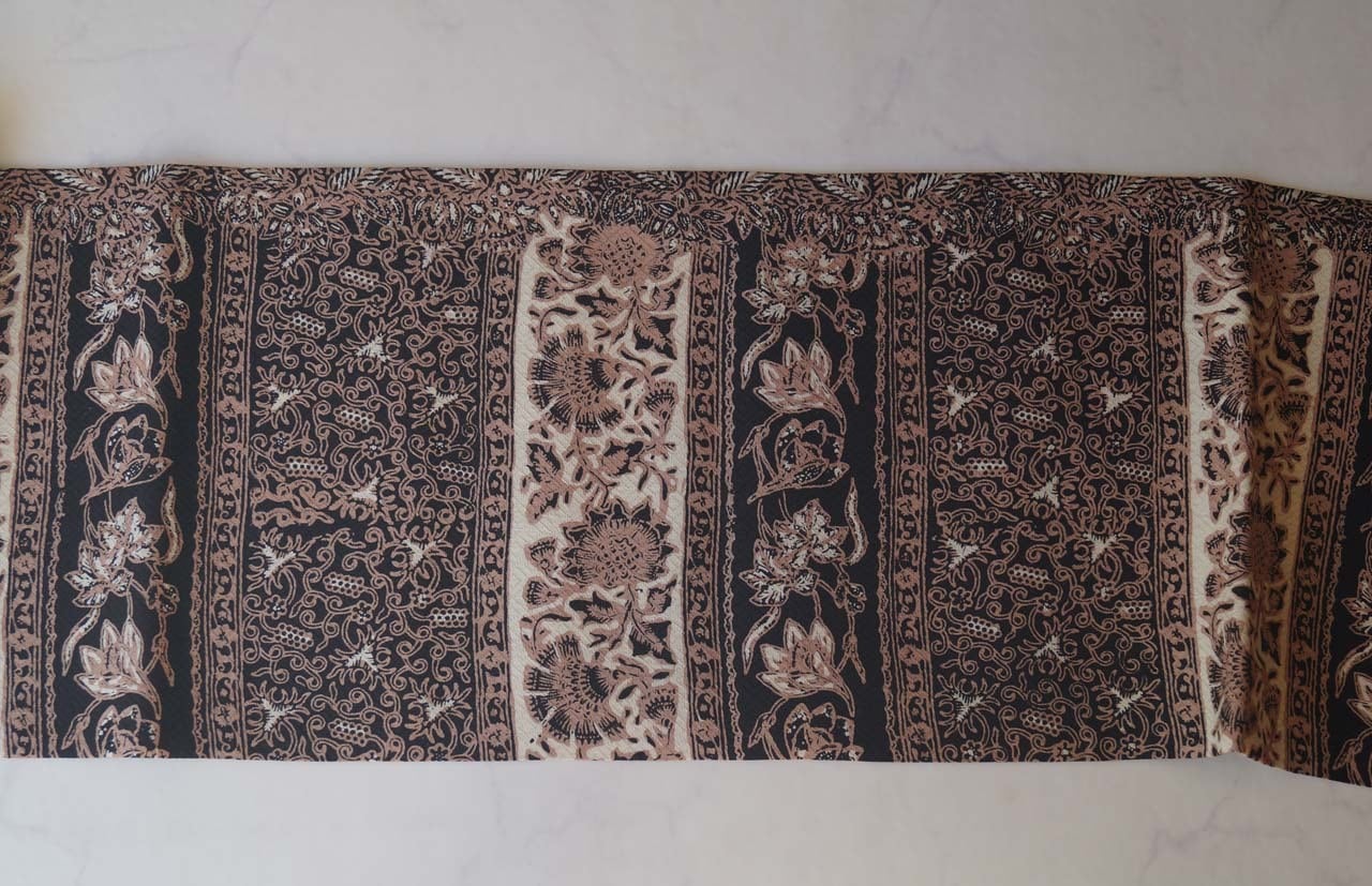 【ふくろ帯】黒色×生成色×丁子茶色 更紗文 洒落ふくろ帯