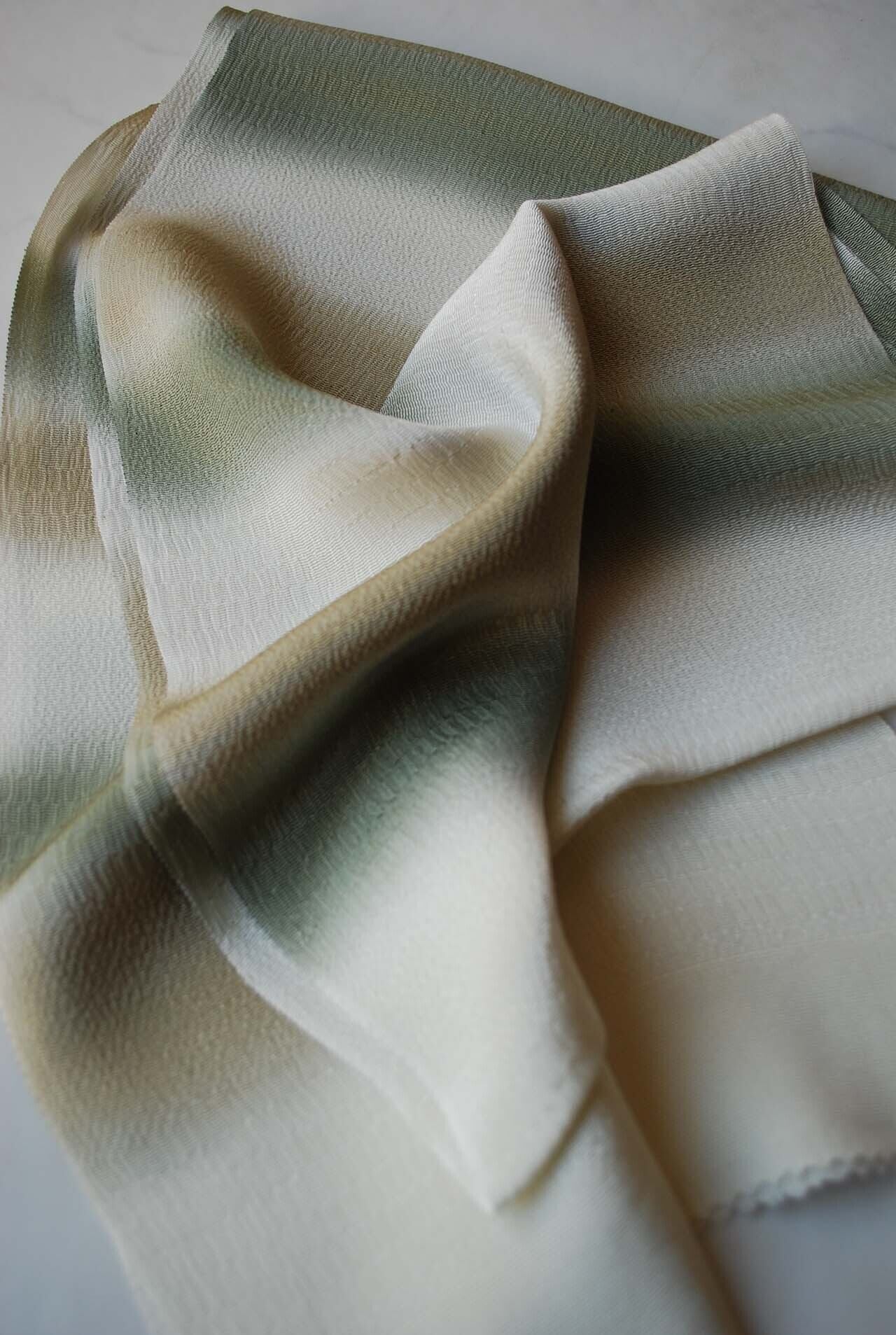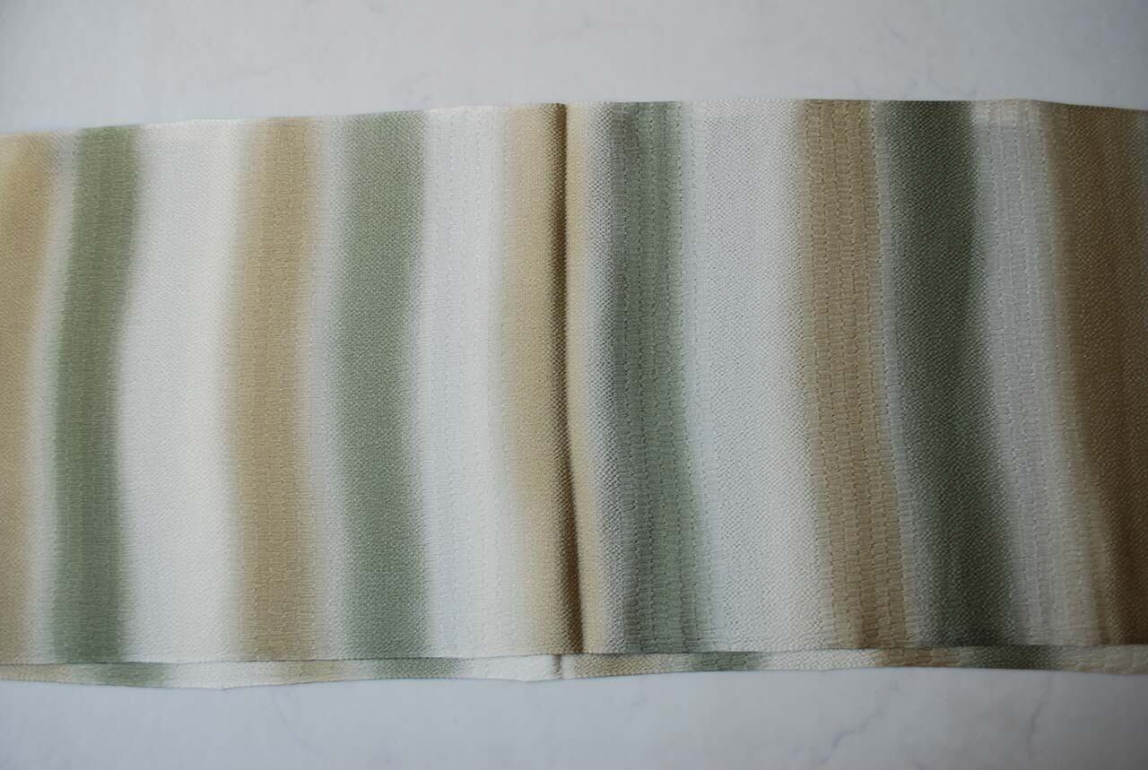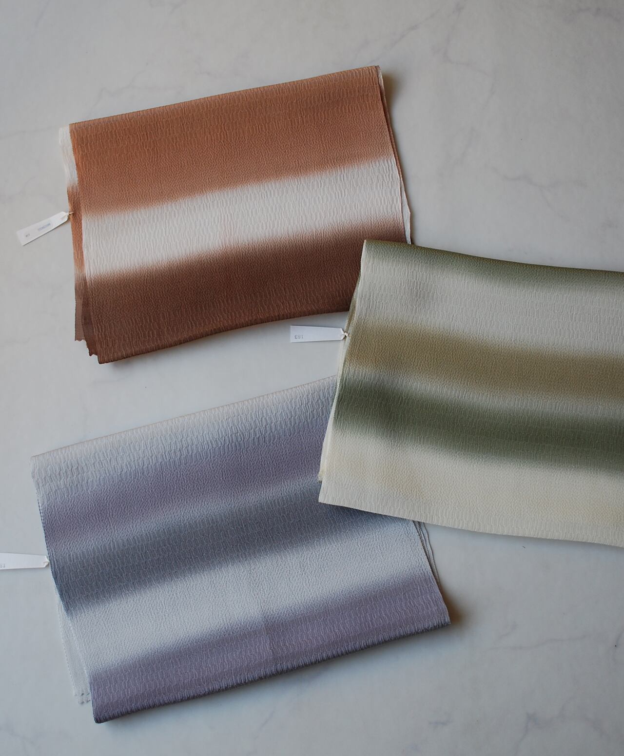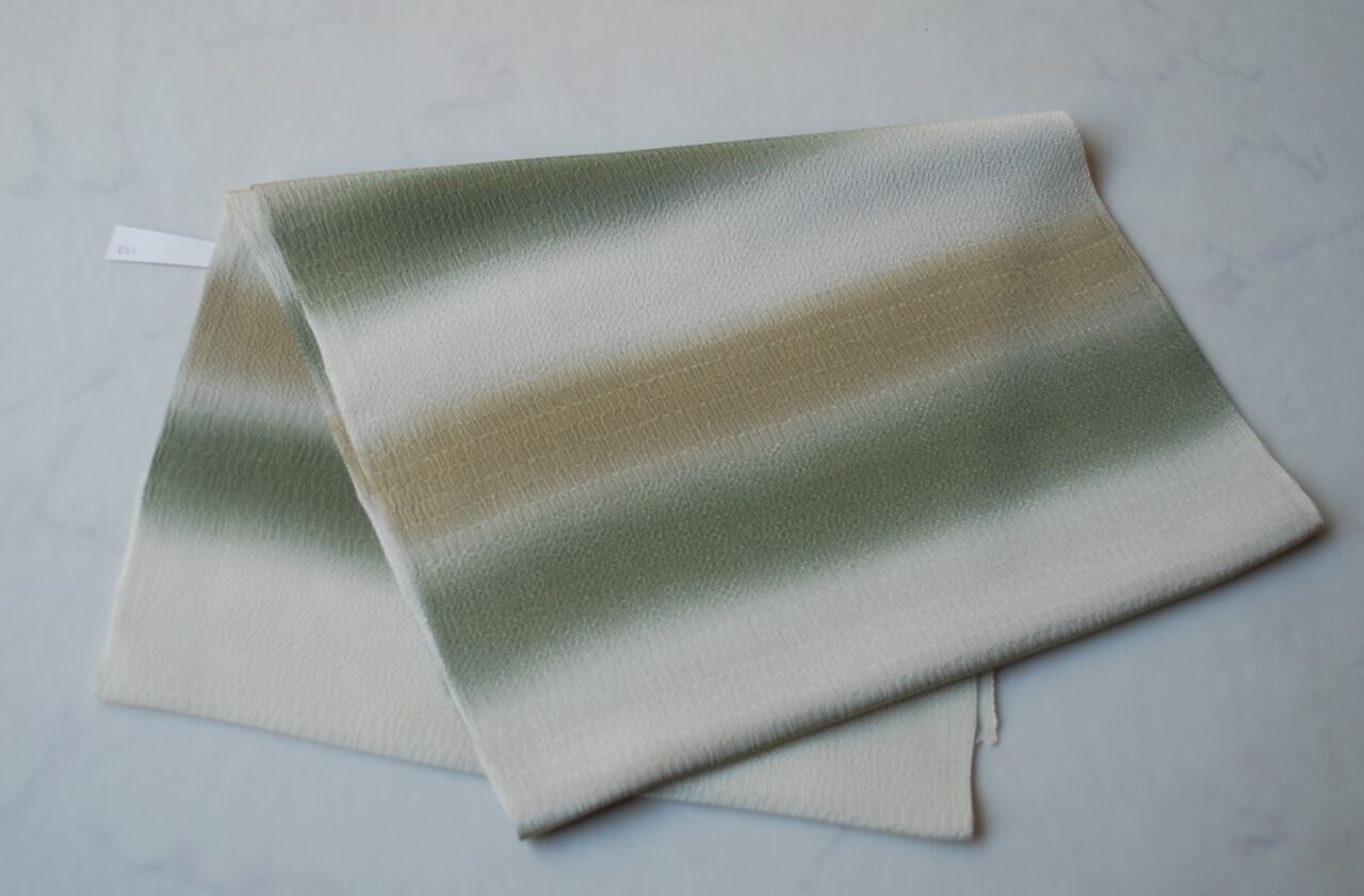 【帯揚げ】老竹色×素色×利休白茶 うずら縮緬 三色横段暈し 帯揚げ 251119⑳