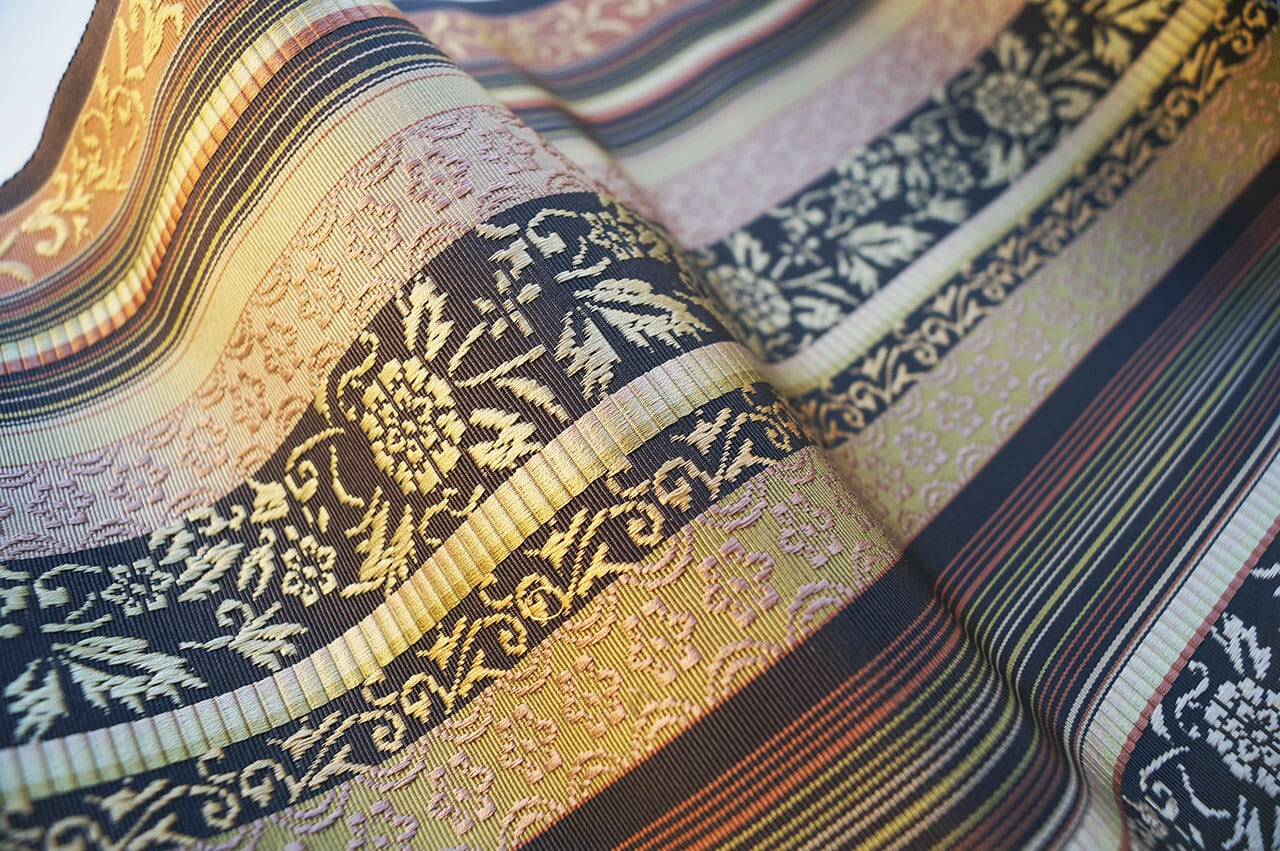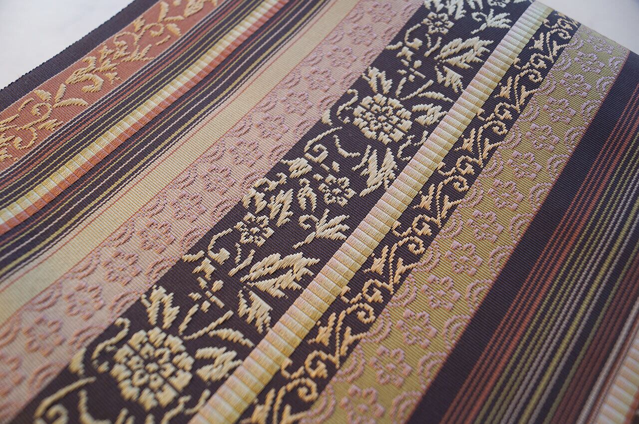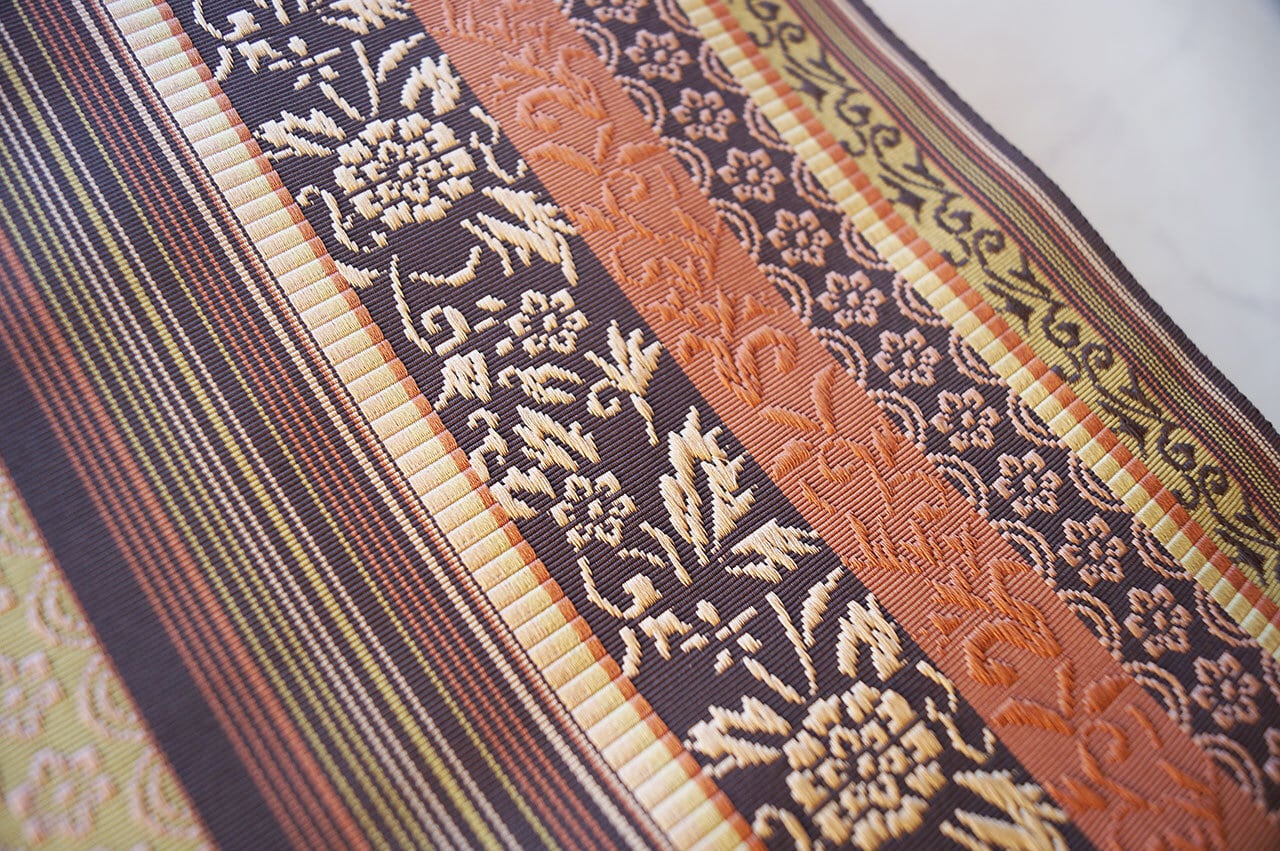 幾何学的なお柄と花草文の織りの美しさ