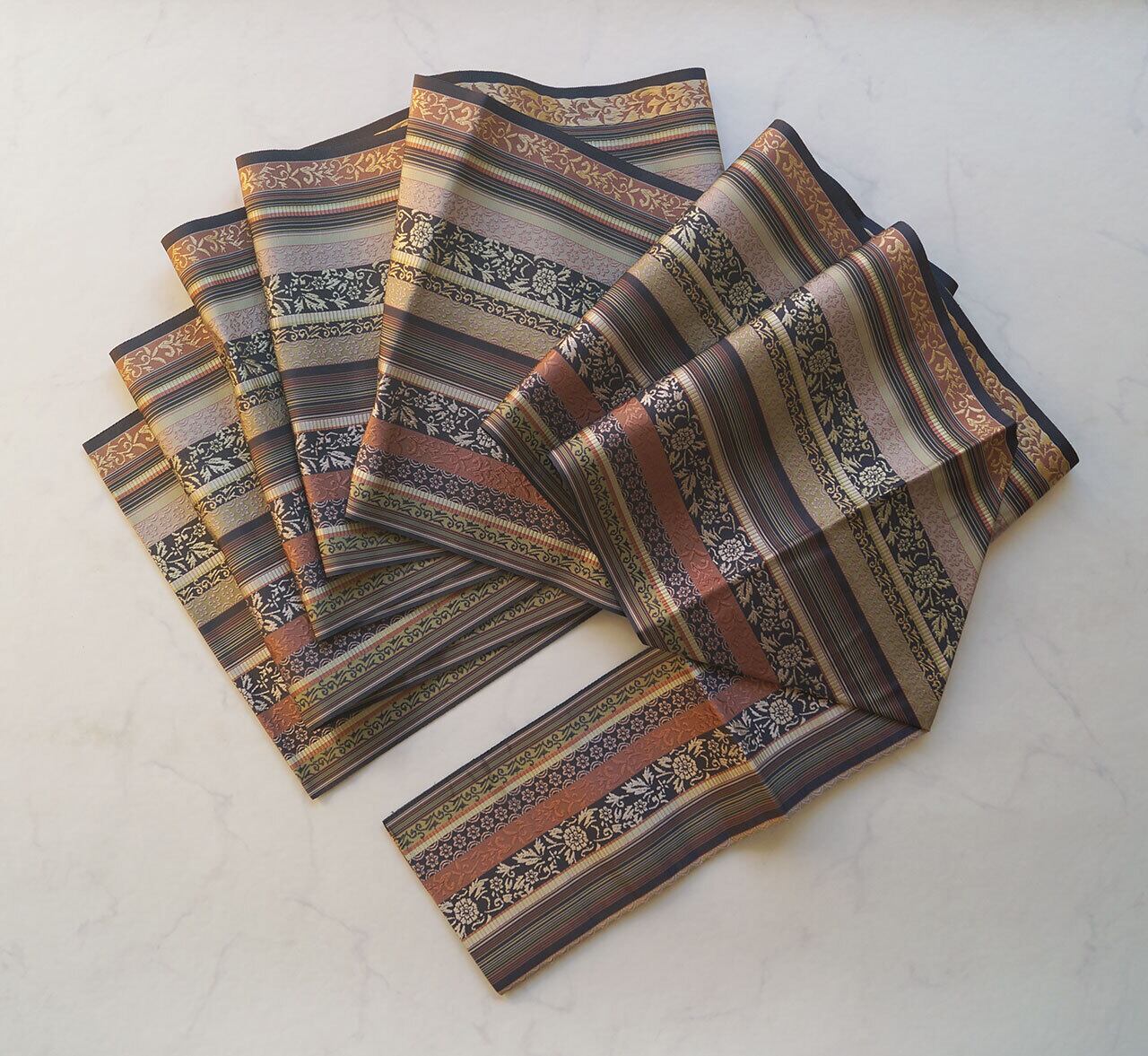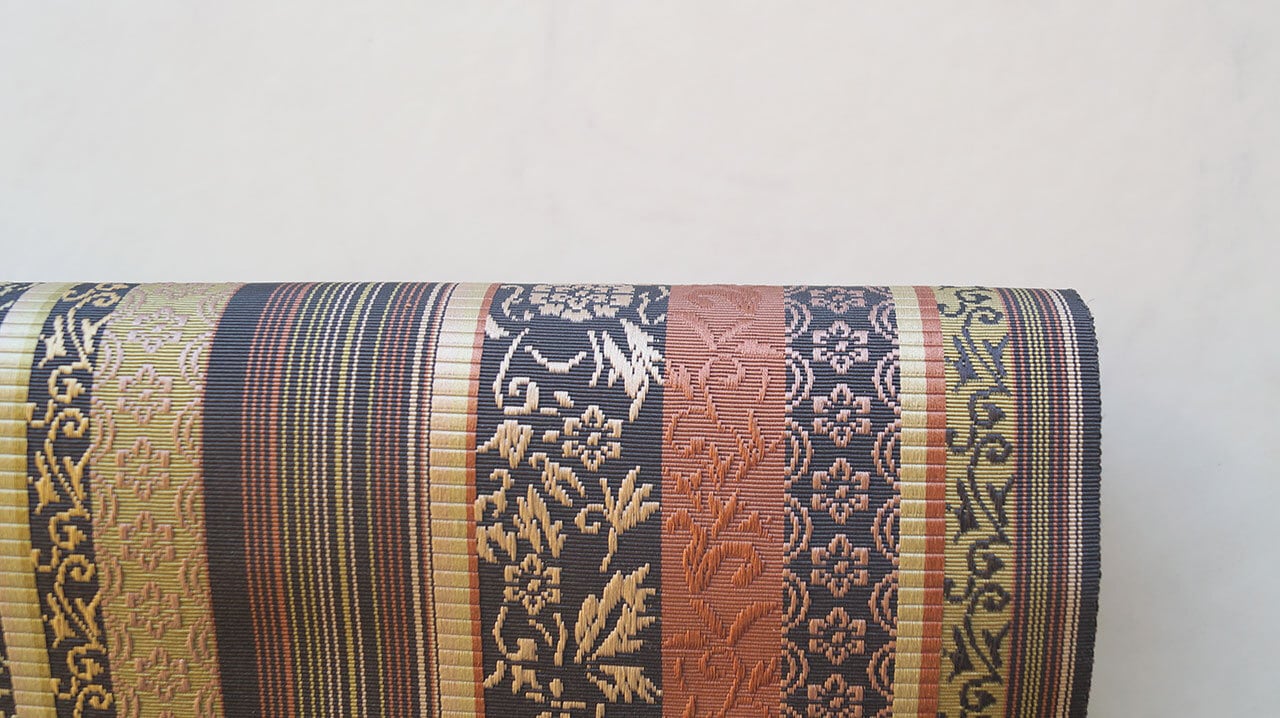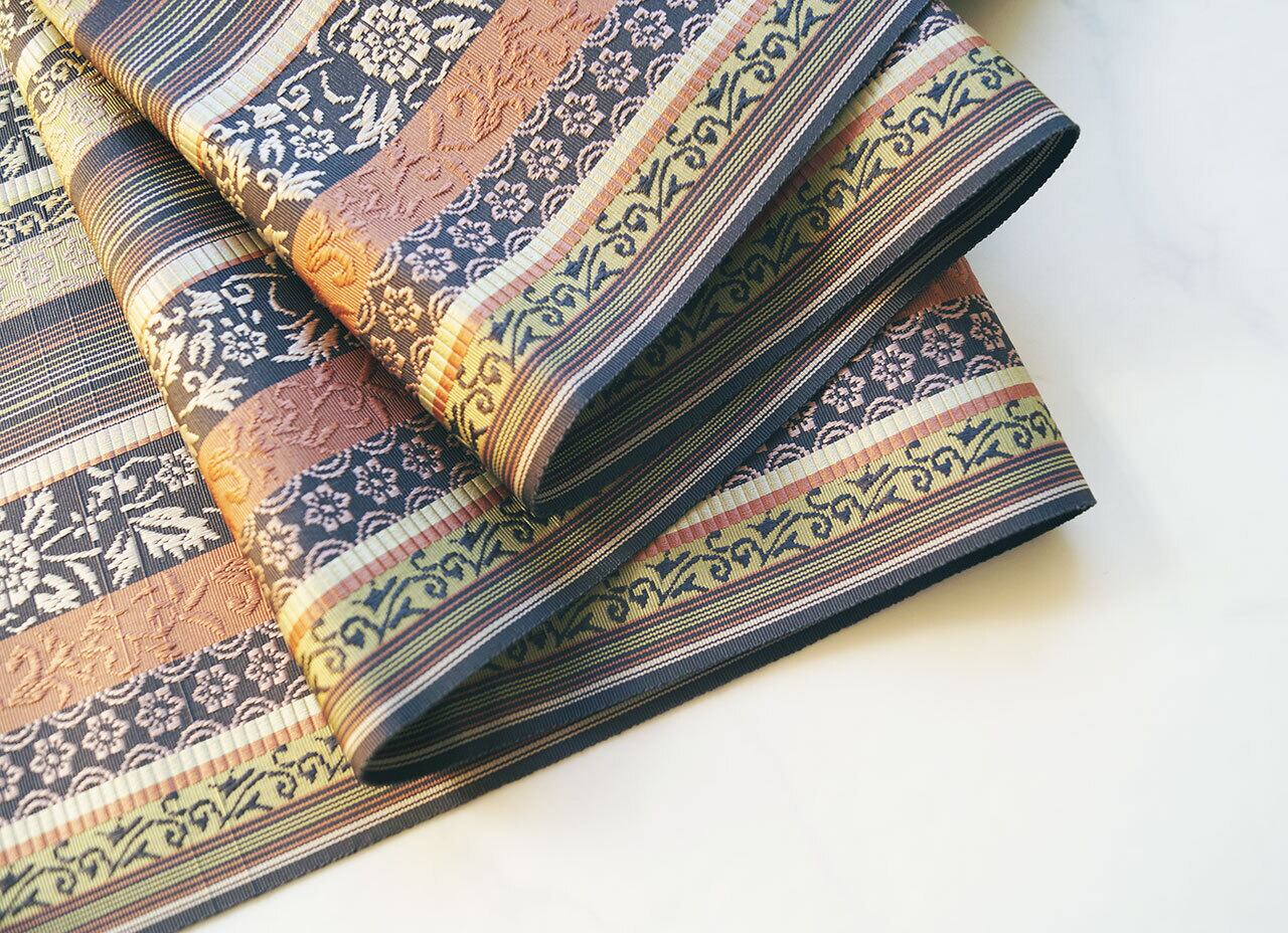 幾何学的なお柄と花草文の織りの美しさ