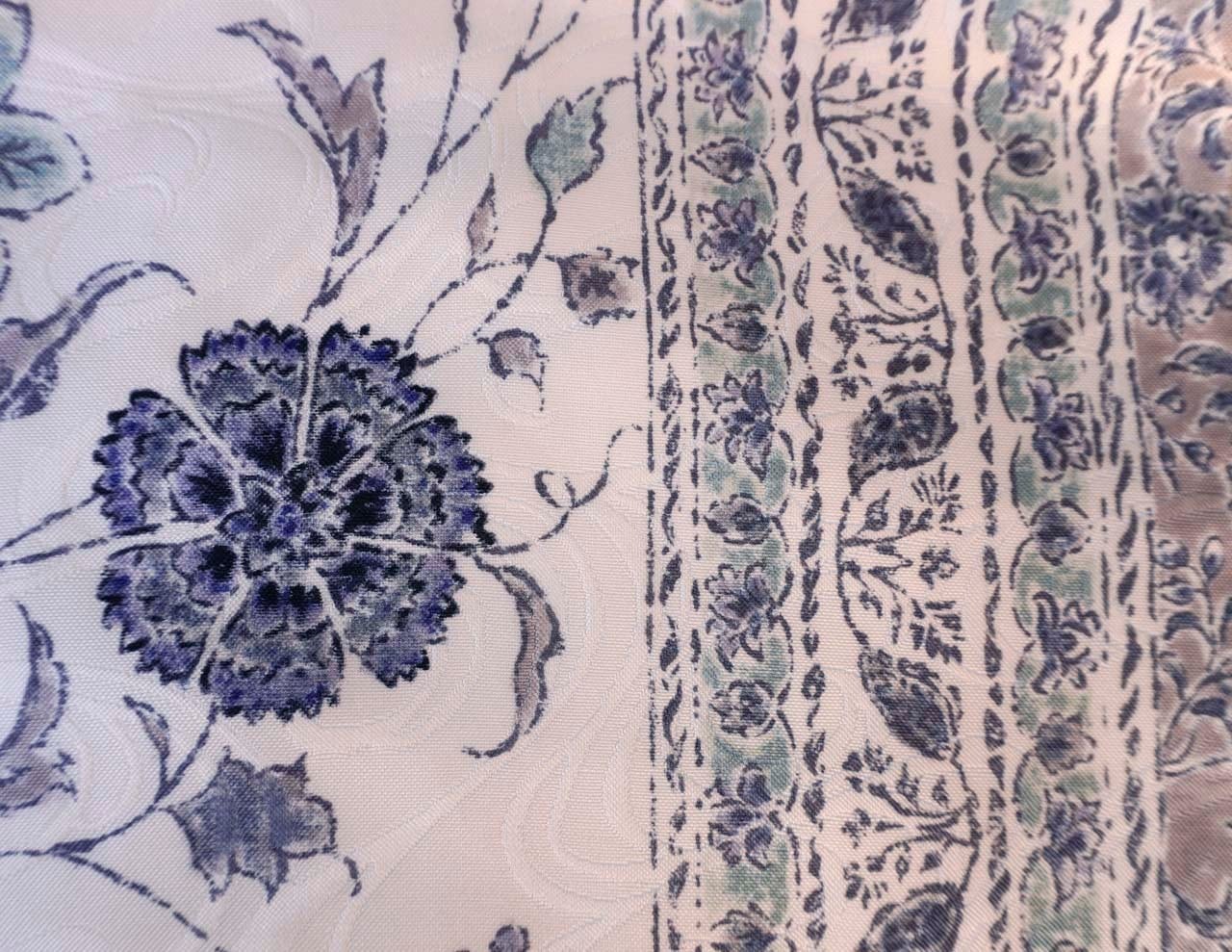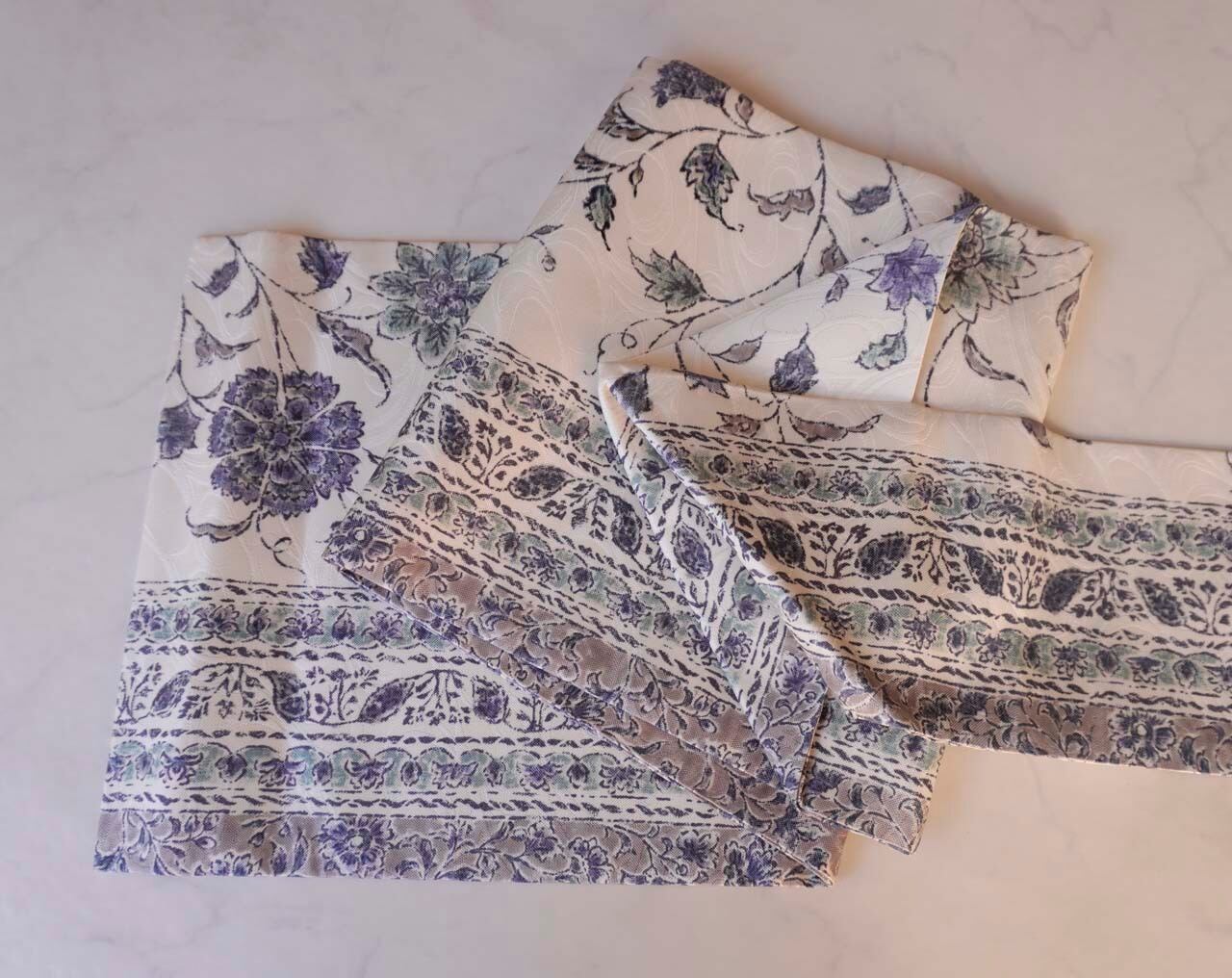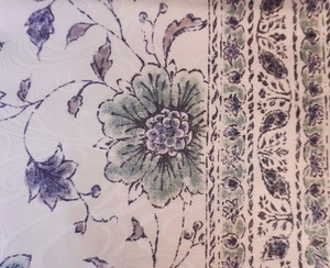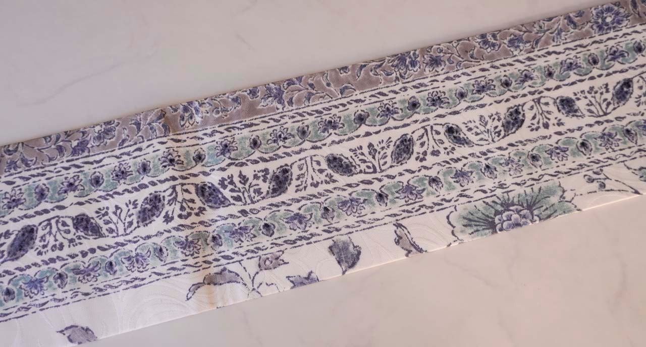 白地に唐花間道が染められたなごや帯です。