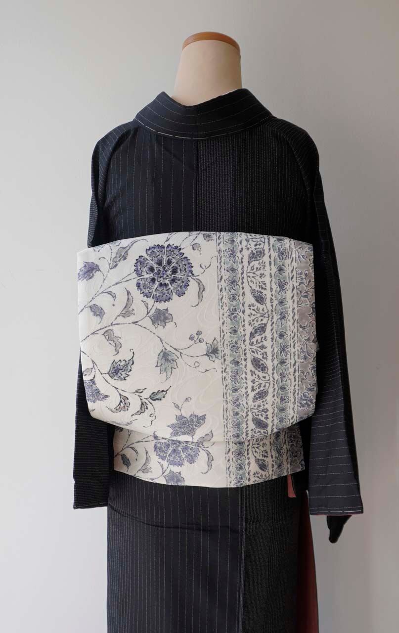 【なごや帯】白地 唐花間道 なごや帯