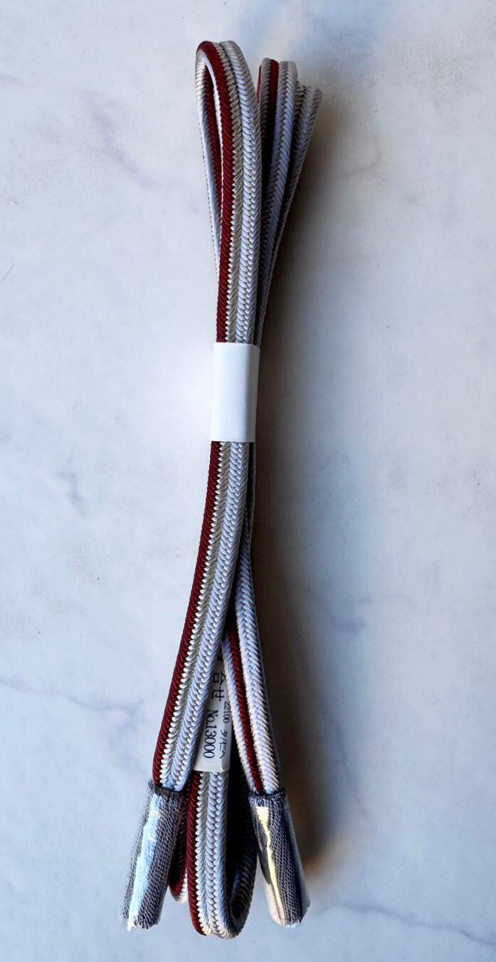 【帯締め】灰薄葡萄×紅樺色 銀糸入り冠組 帯締め 20251120⑥