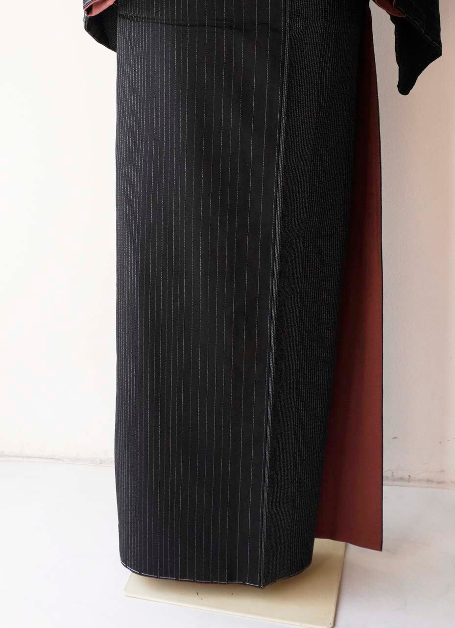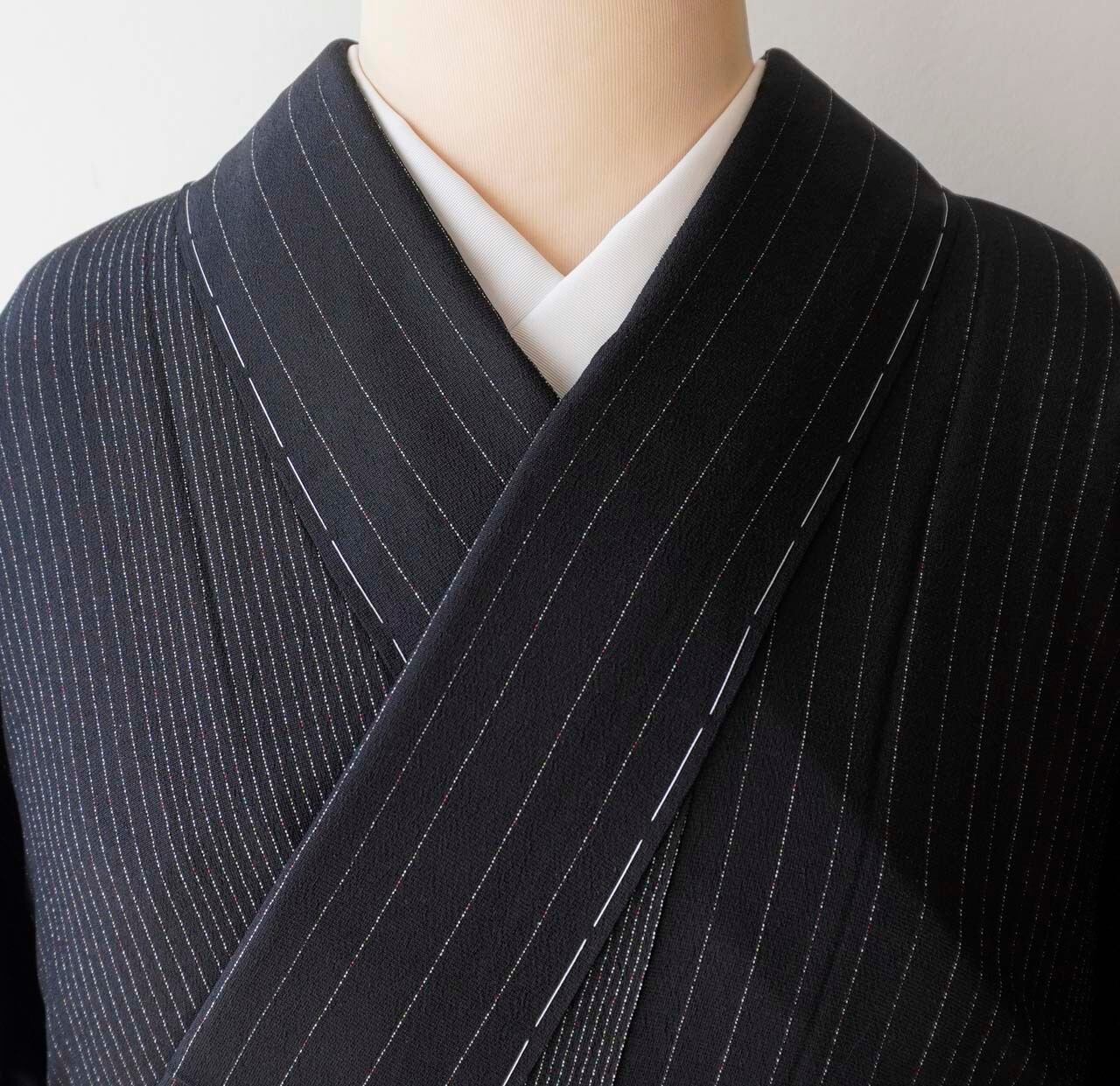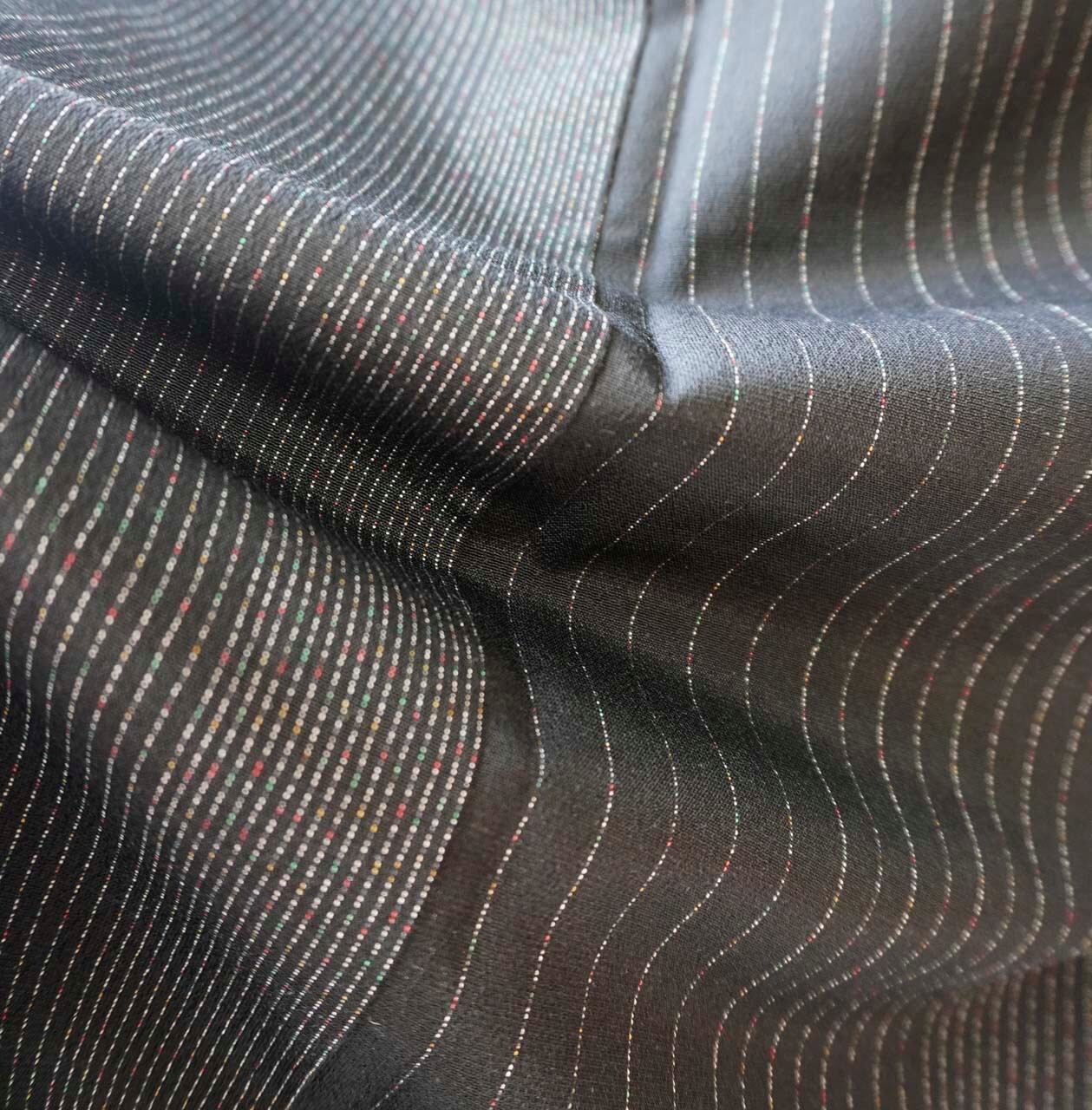 【袷】黒色地 縞文 本塩沢 やまだ織証紙付き