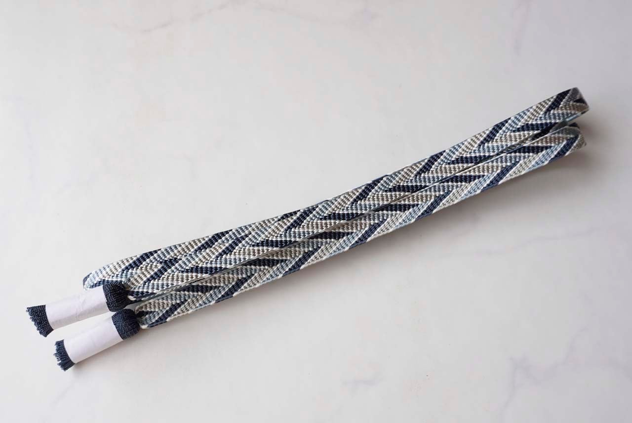 【帯締め】高麗納戸×湊鼠×白橡 笹浪組帯締め 撚り房 251120②