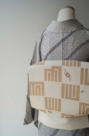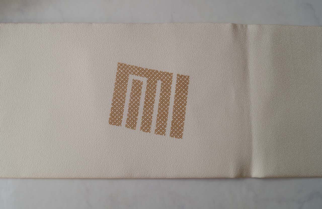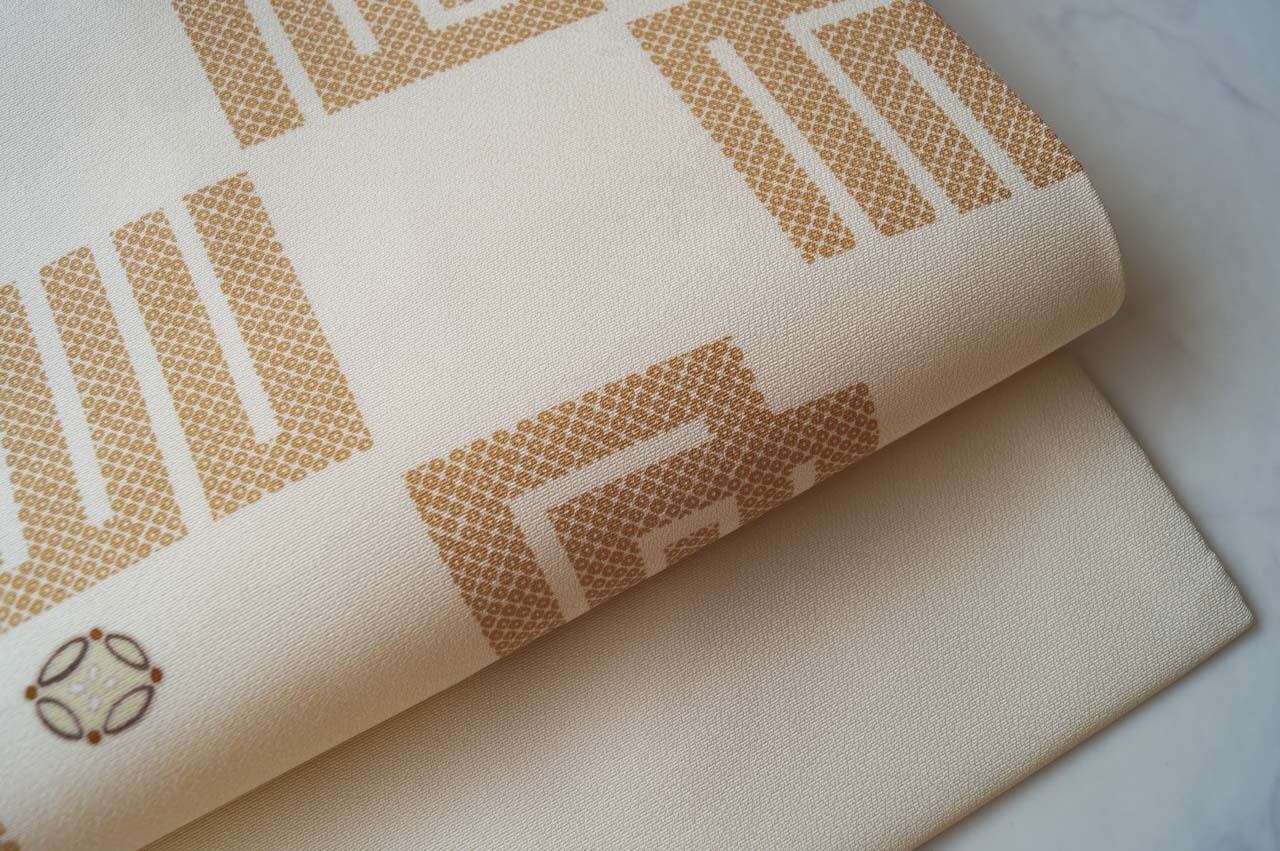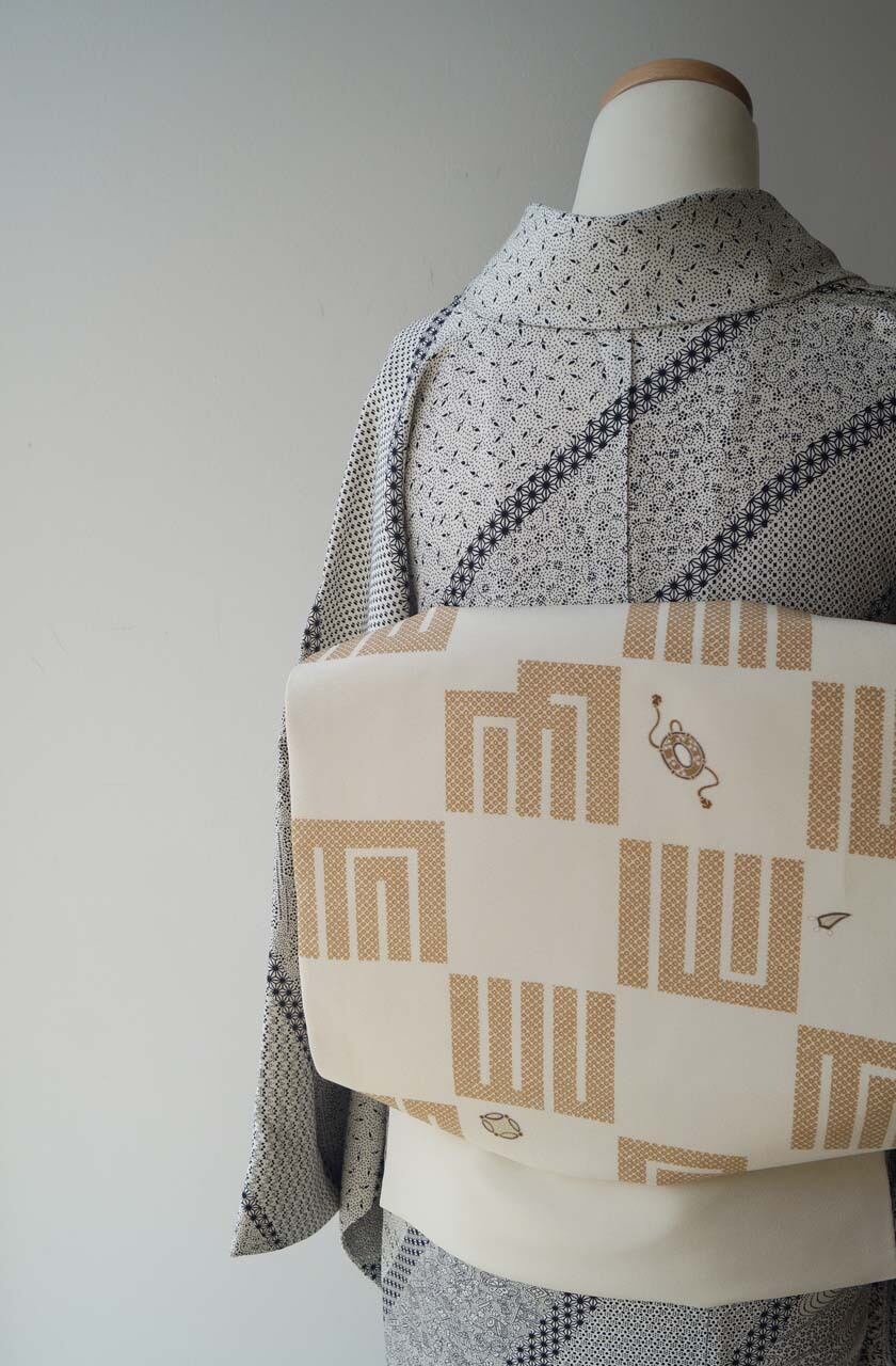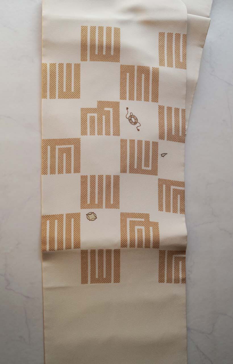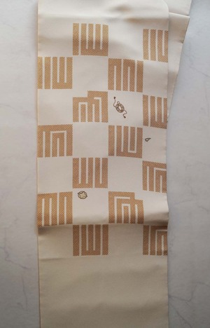 【なごや帯】生成り地 源氏香市松 なごや帯