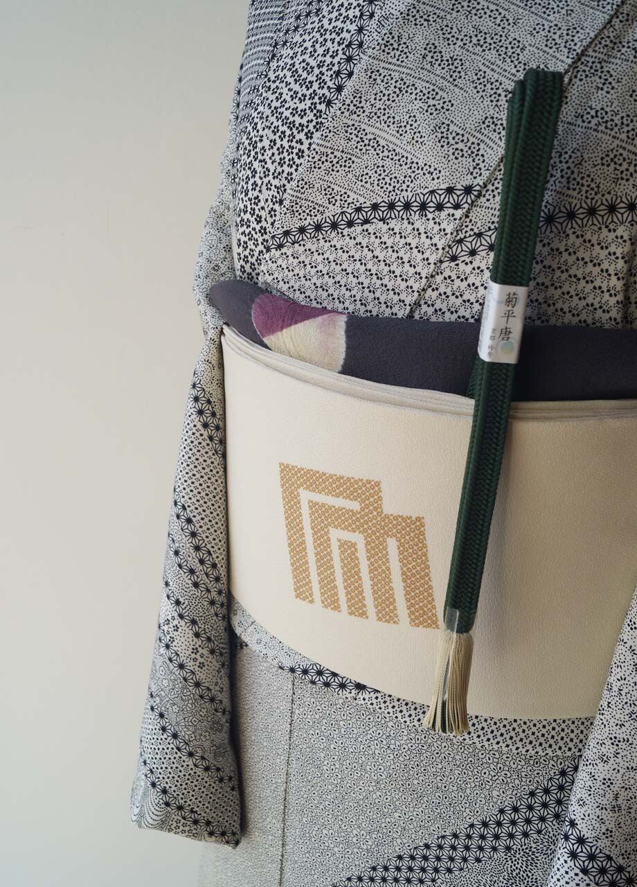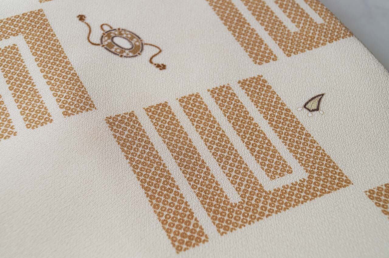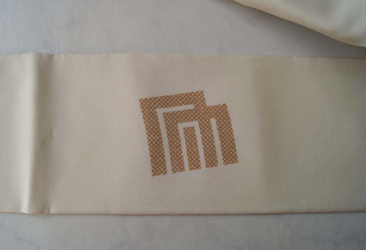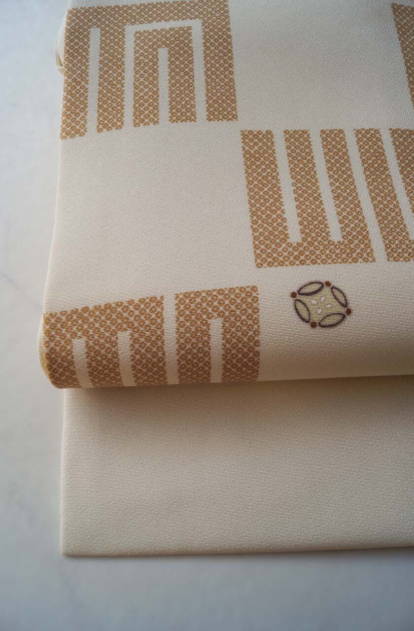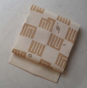 【なごや帯】生成り地 源氏香市松 なごや帯