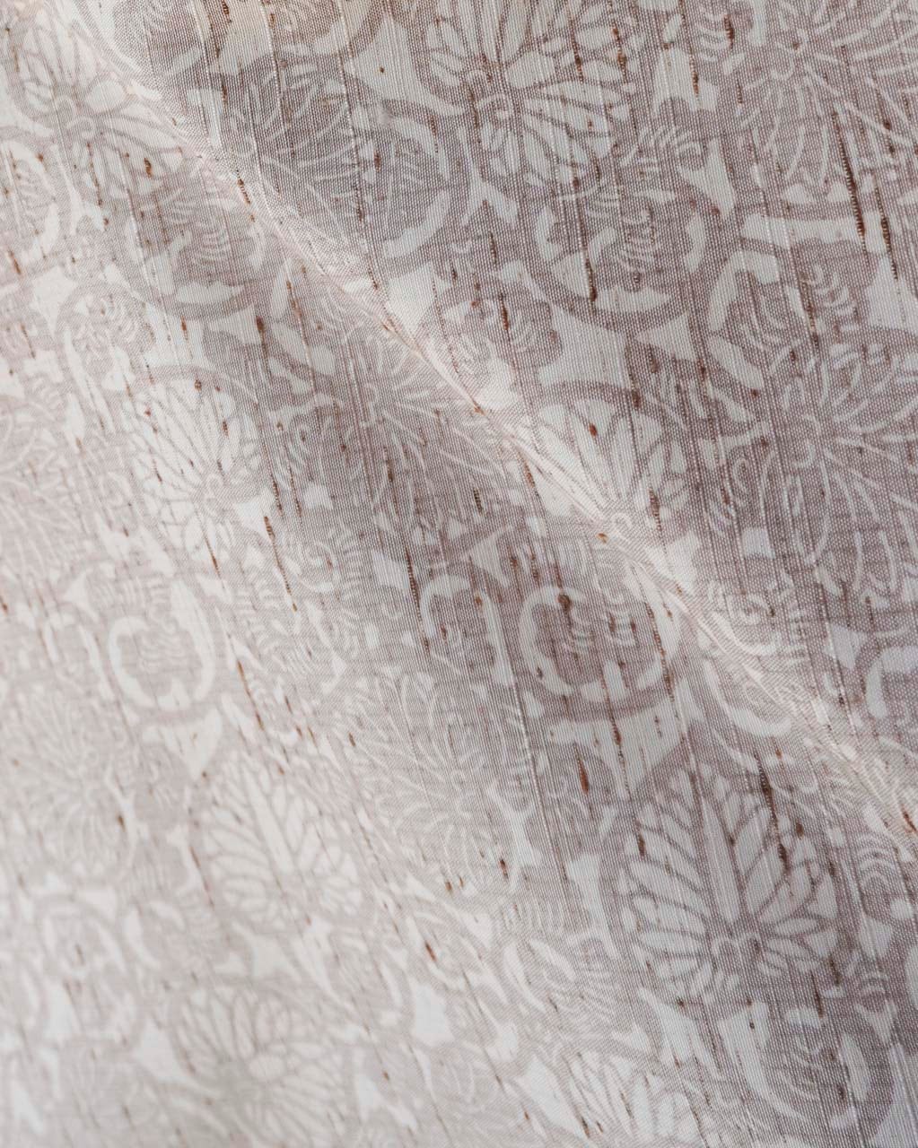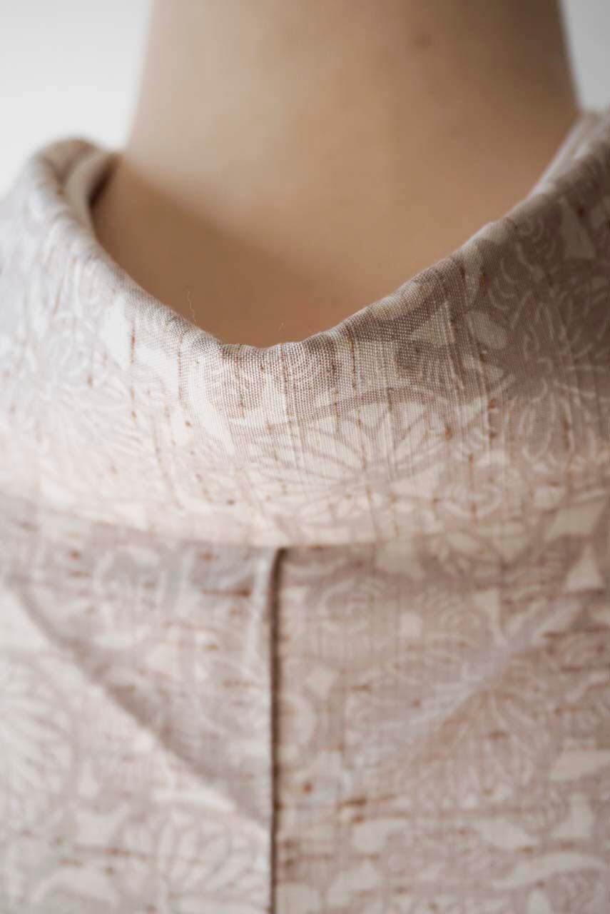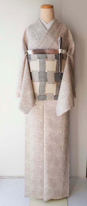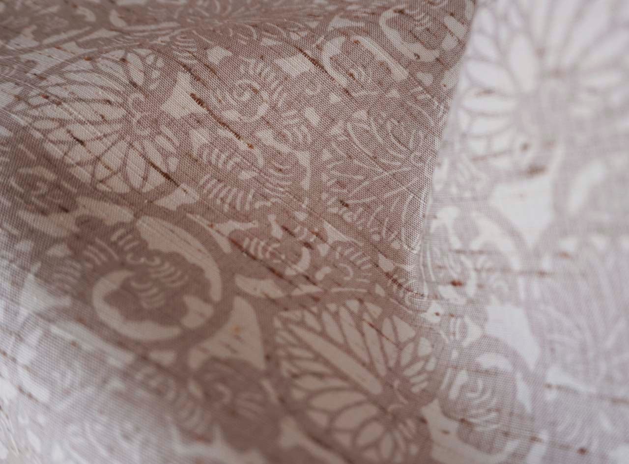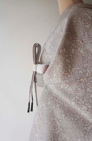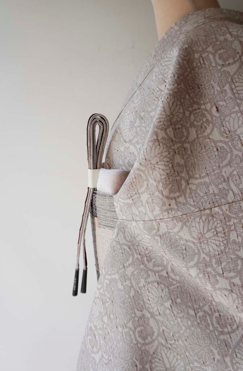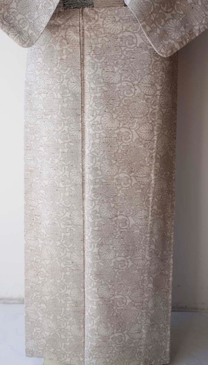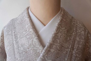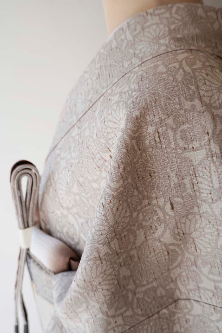 【袷】桜鼠色×生成色 葵唐草文 ぜんまい紬