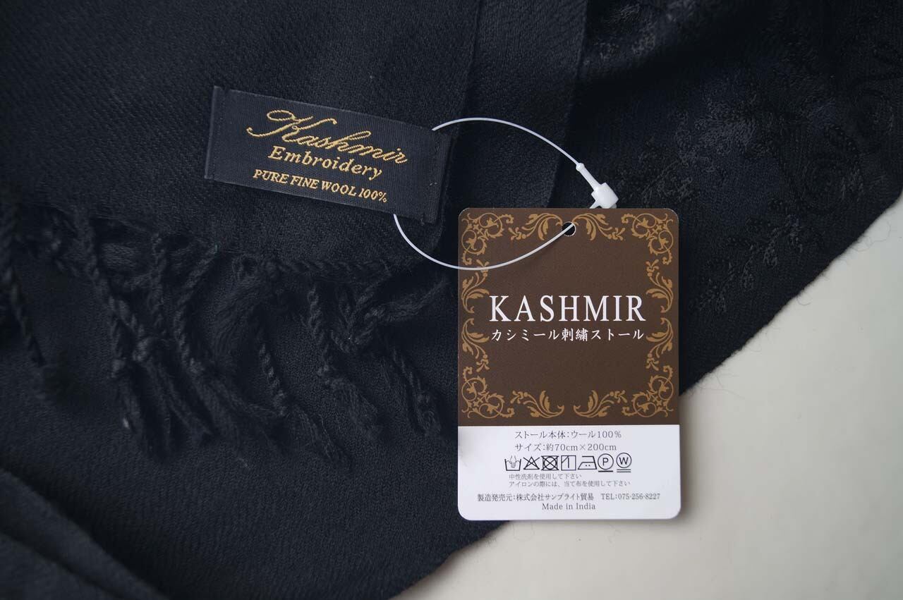 【ストール】カシミール刺繍 マットブラック色 251211C