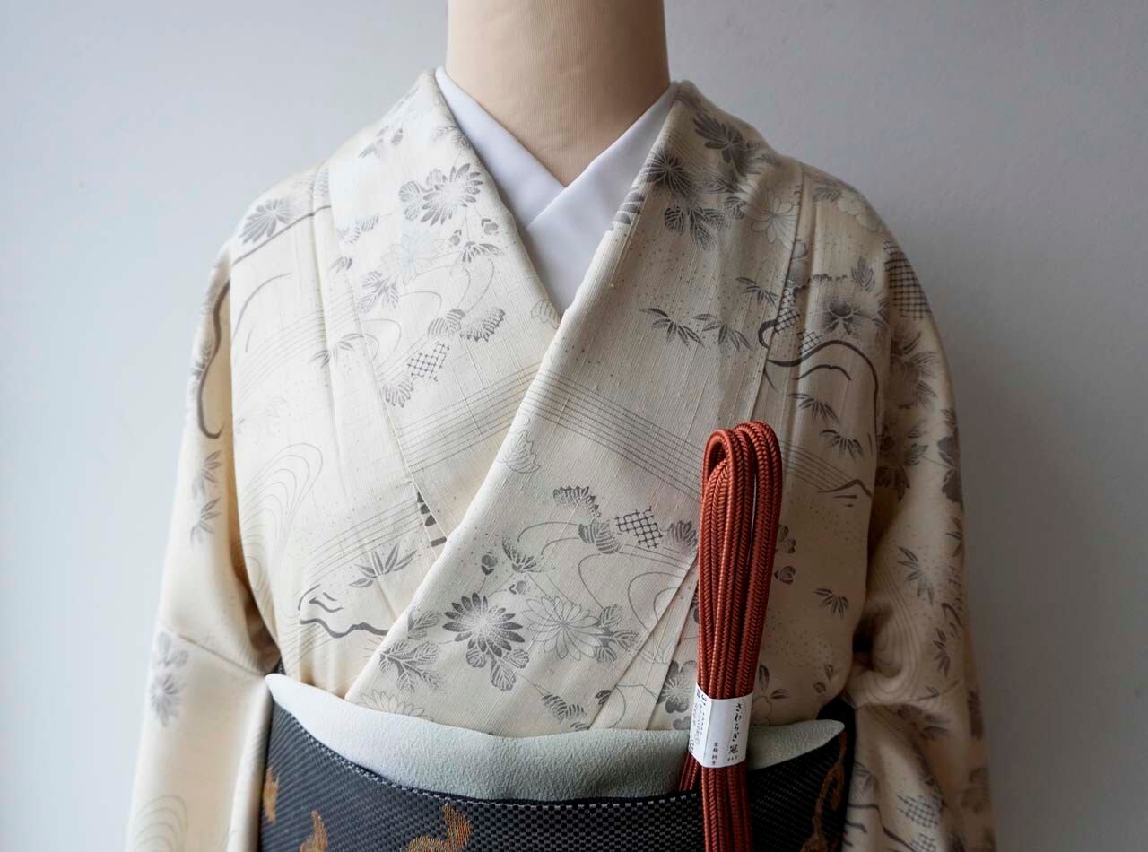 控えめな色使いと古典文様はカジュアル過ぎず、