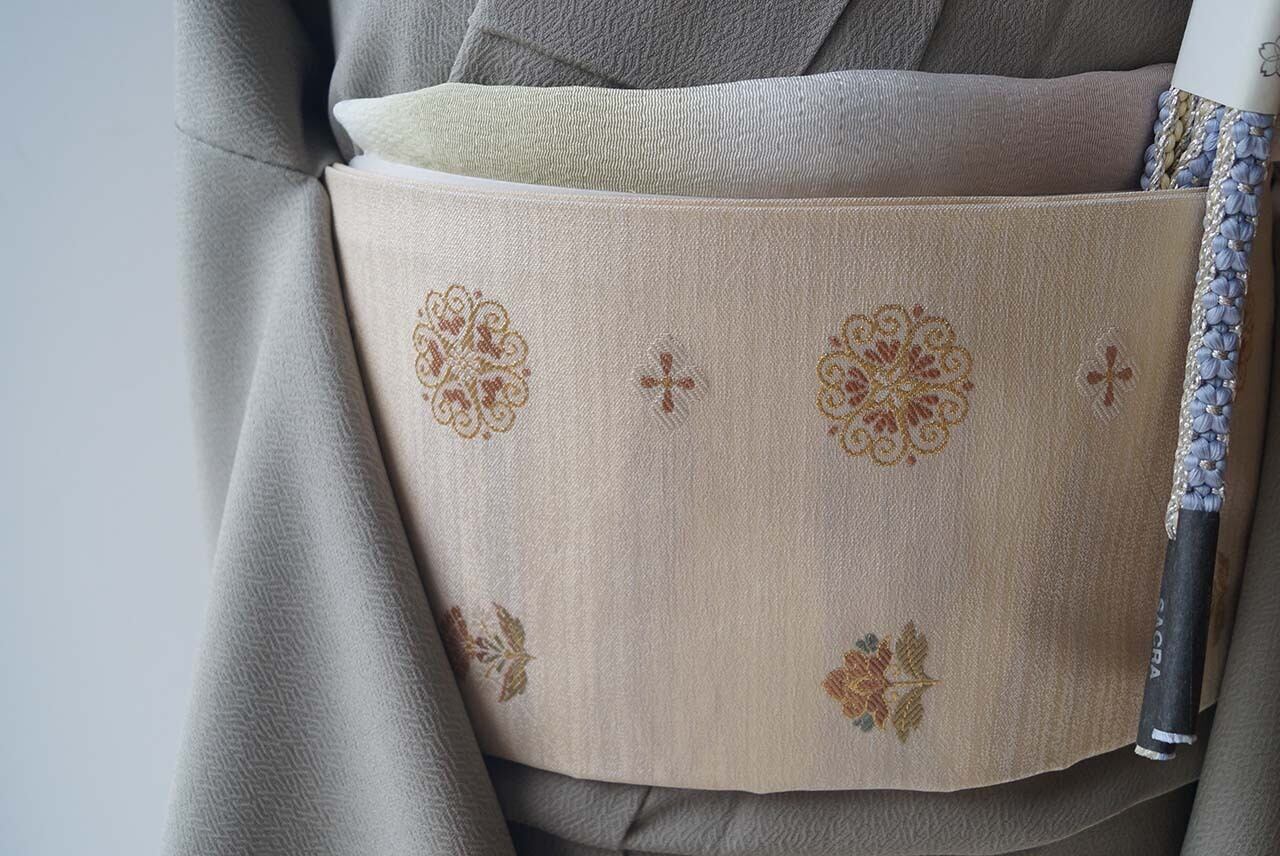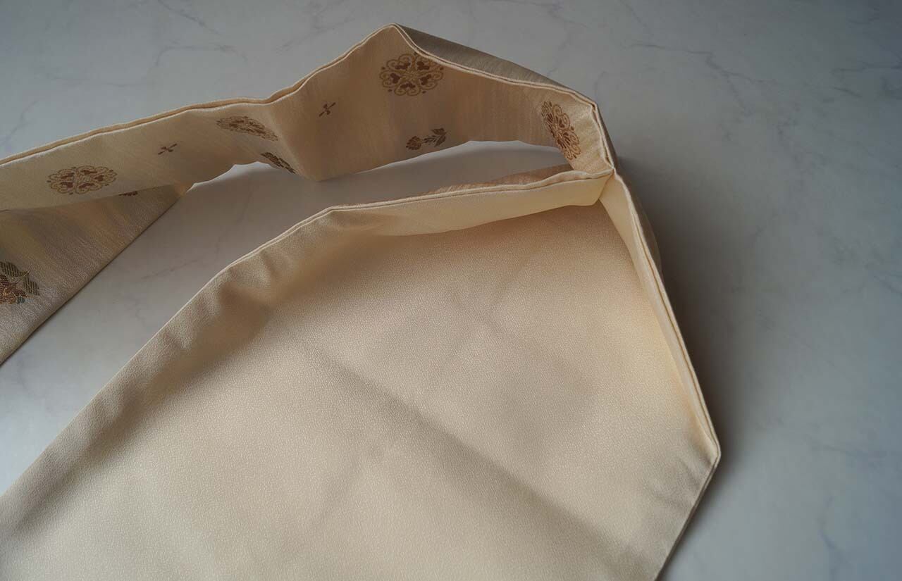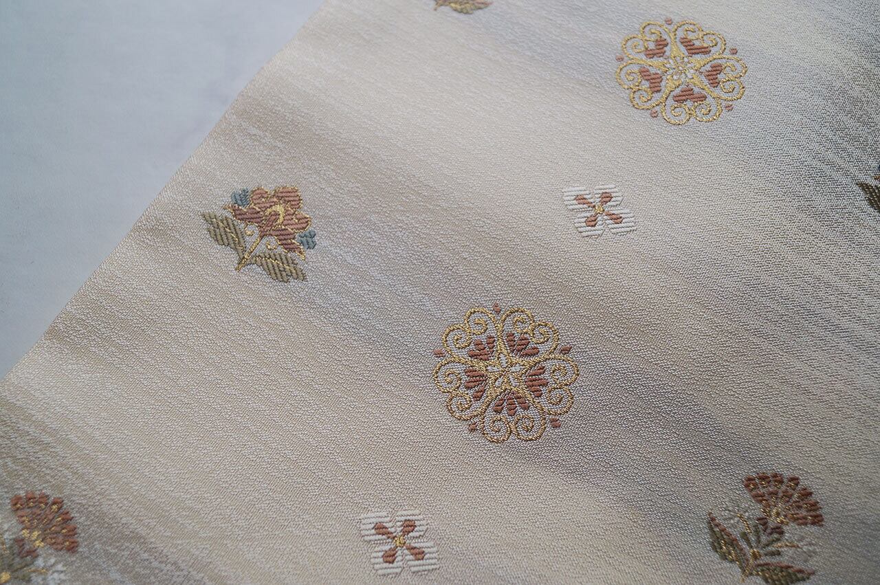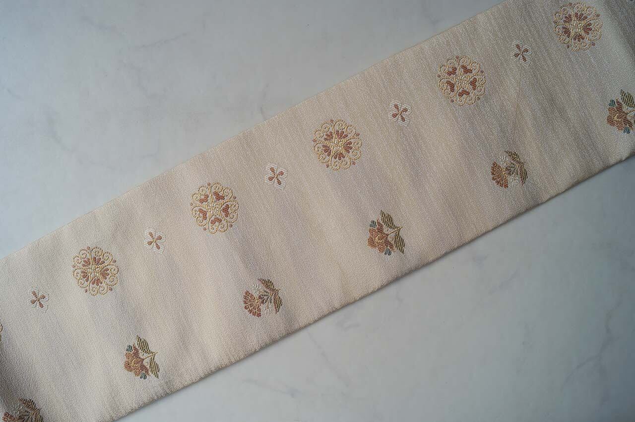 【なごや帯】薄卵色地 抽象花文 なごや帯