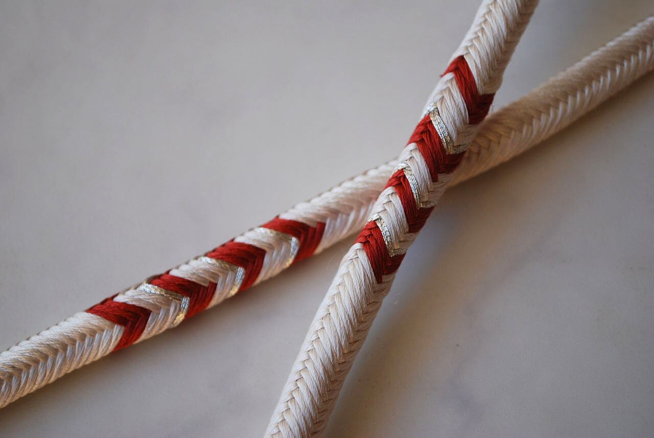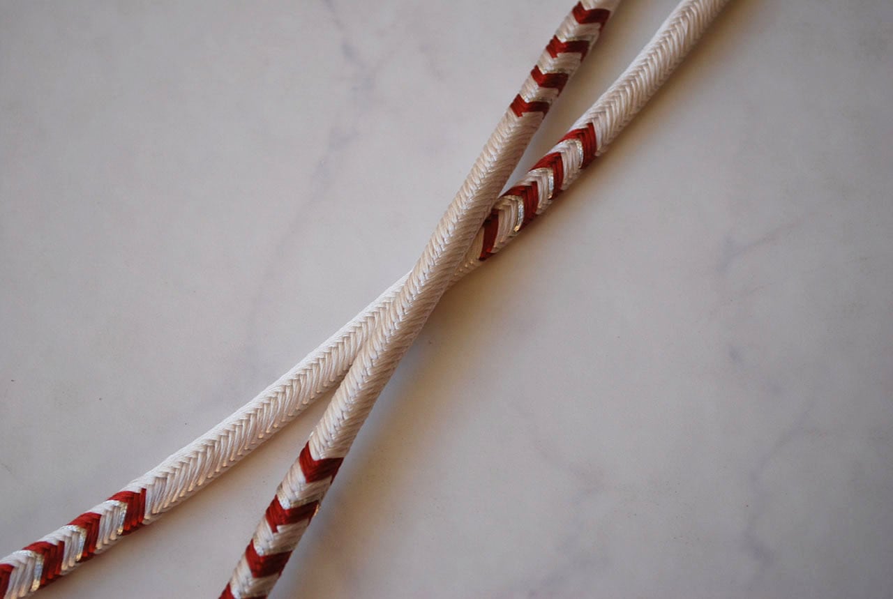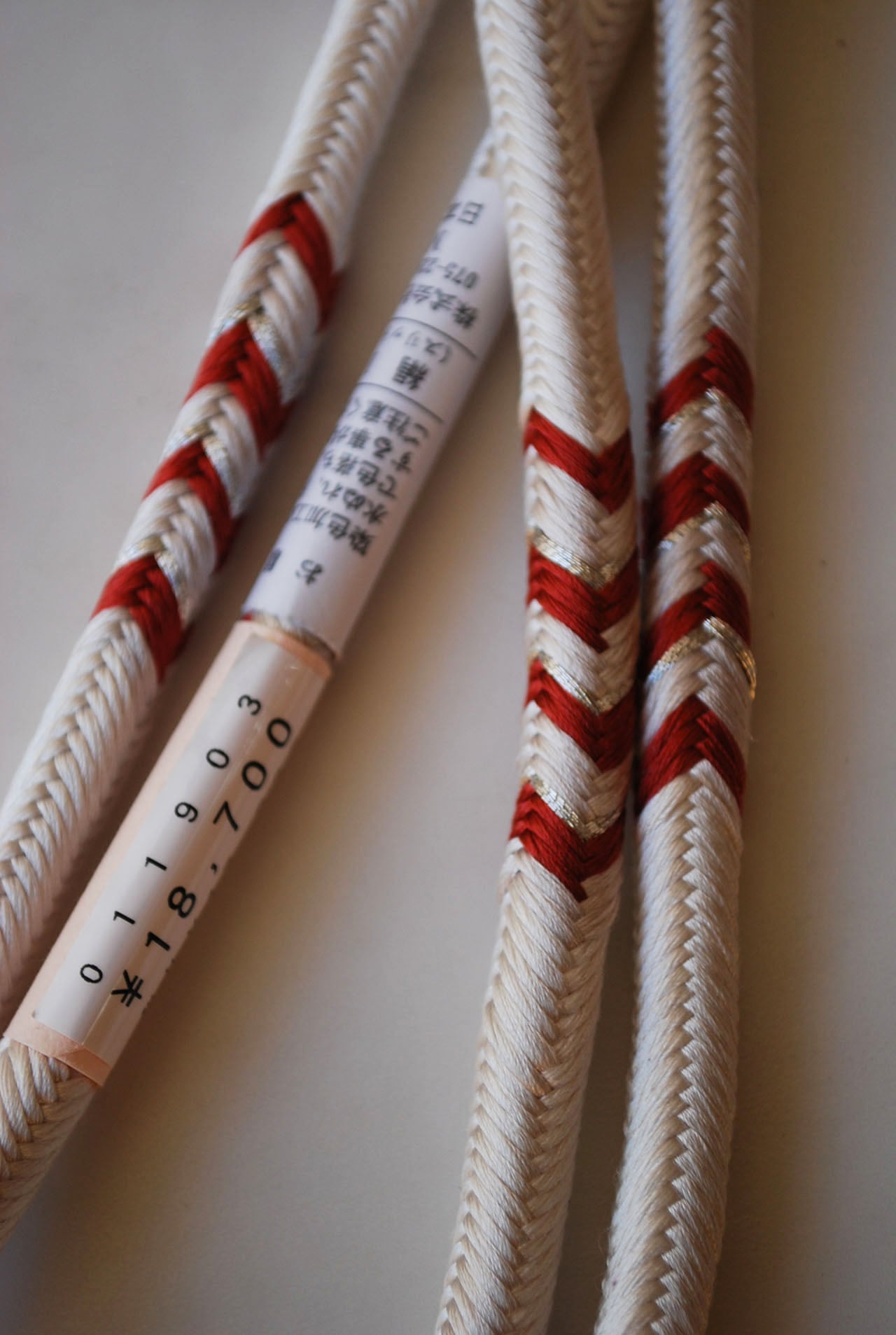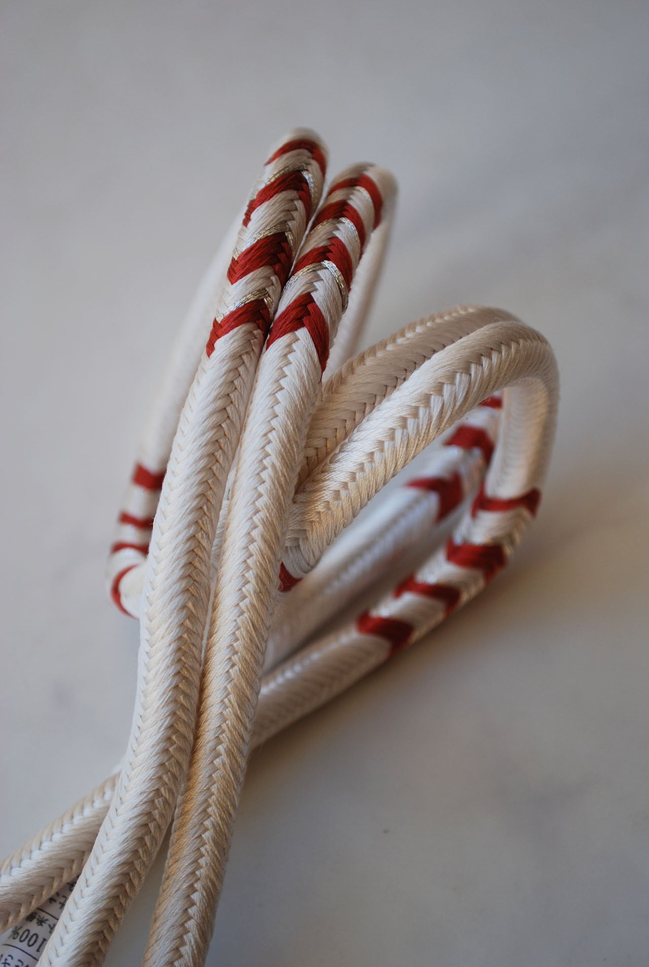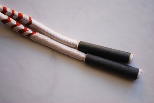 洋角組という丸組の紐のところどころに