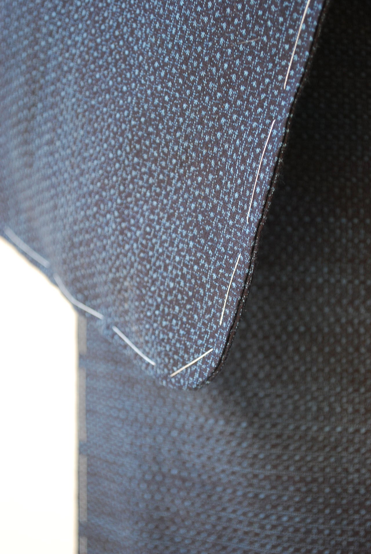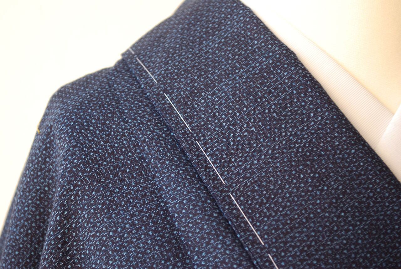 状態:仕付け糸付きです。左胸に細長く「テカリ」がございます。