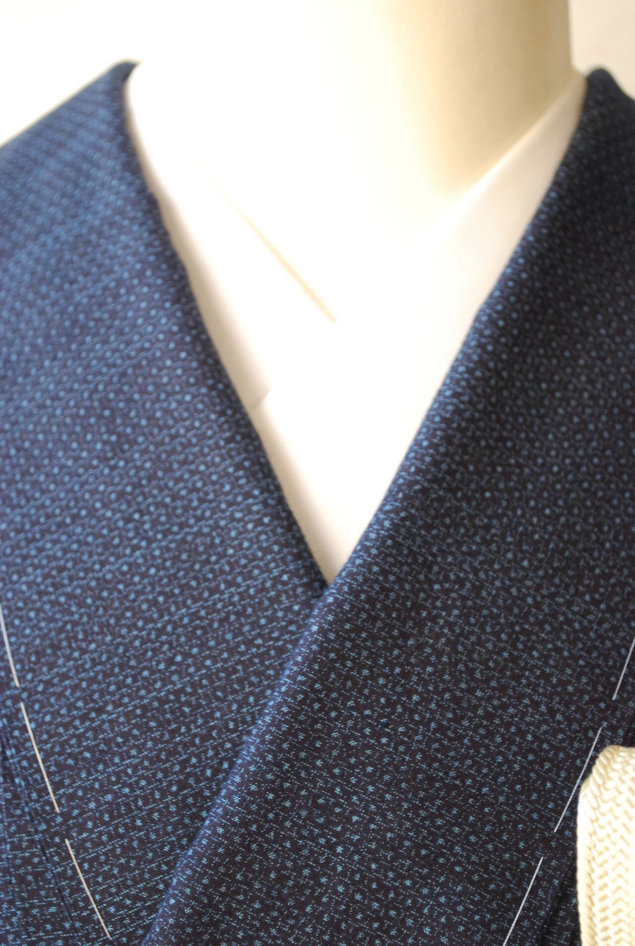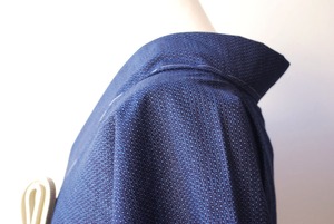 【袷】藍色地 綿薩摩 亀甲紋紬 証紙あり