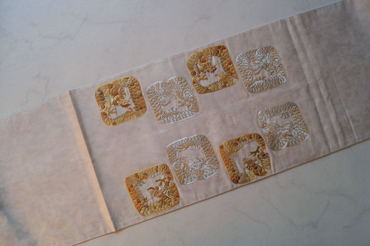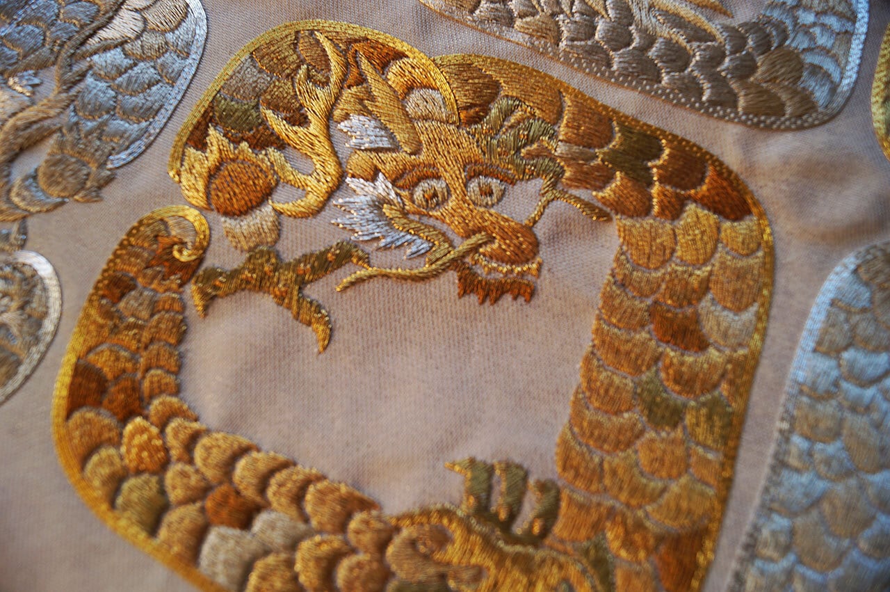こちらの龍は、金糸と銀糸で交互に四角で