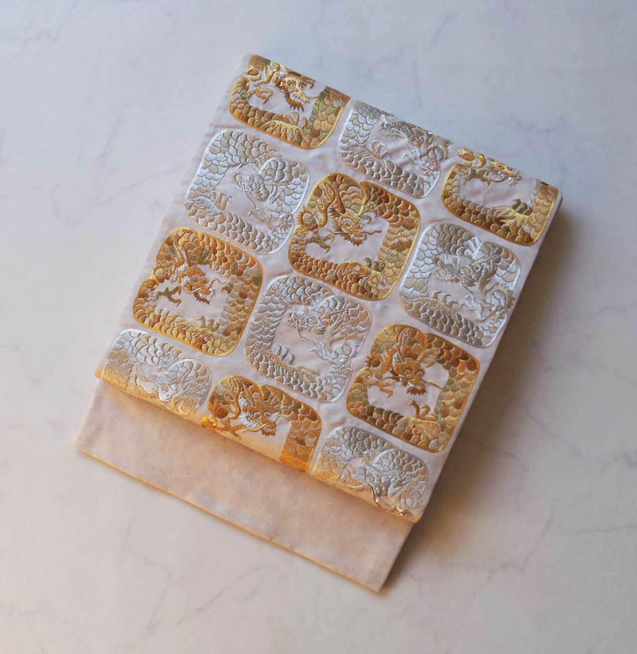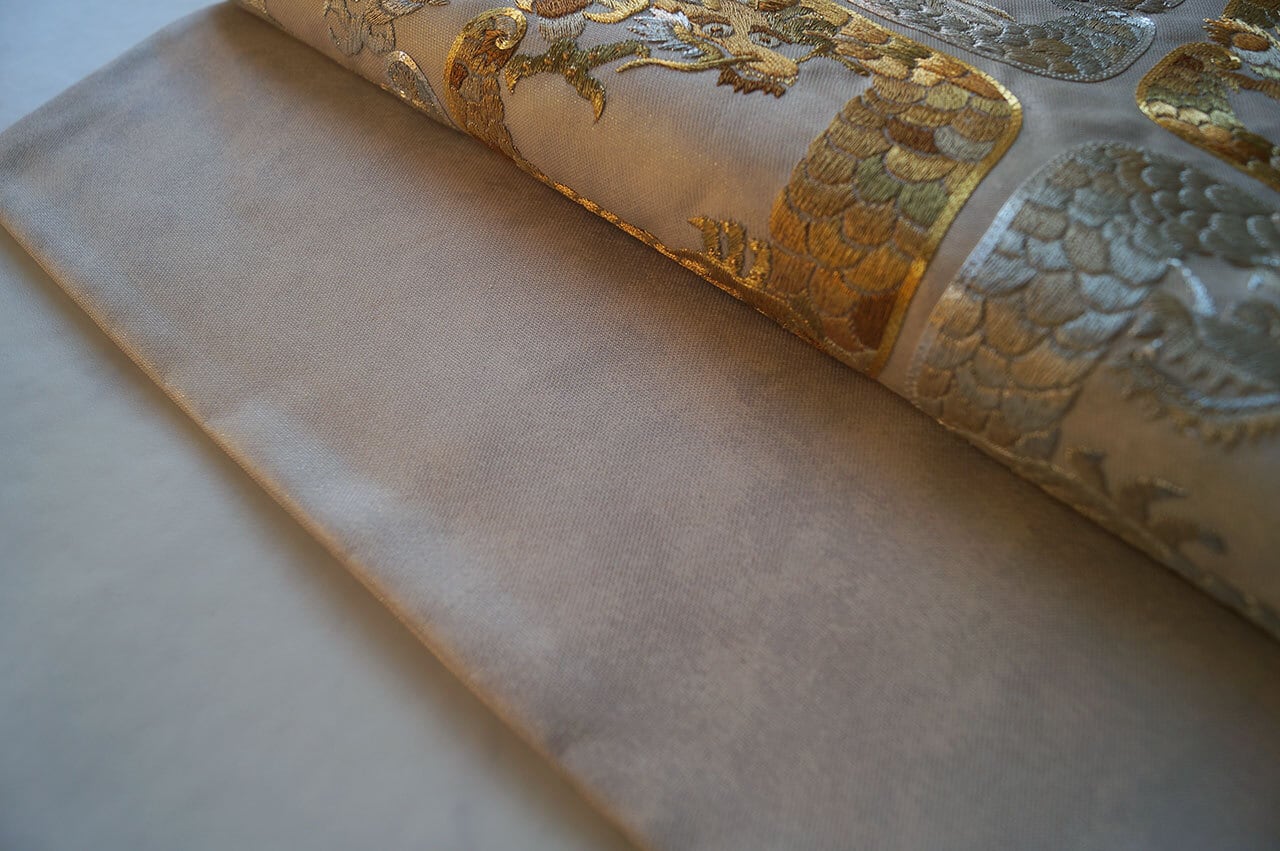 斑なおだやかなお色地に龍が織り出された