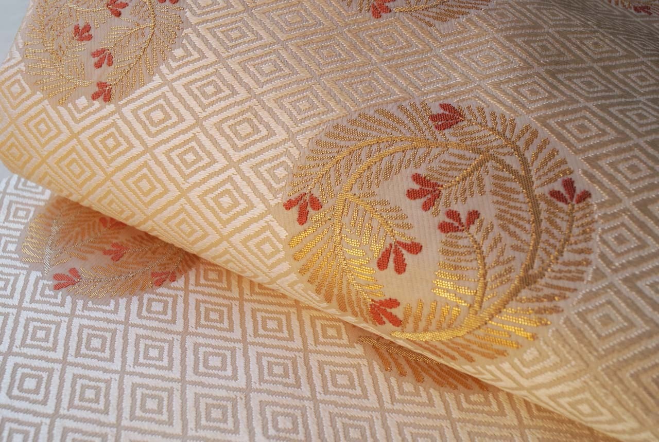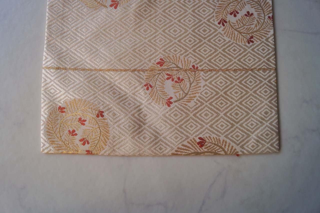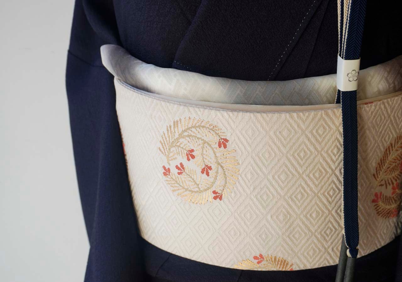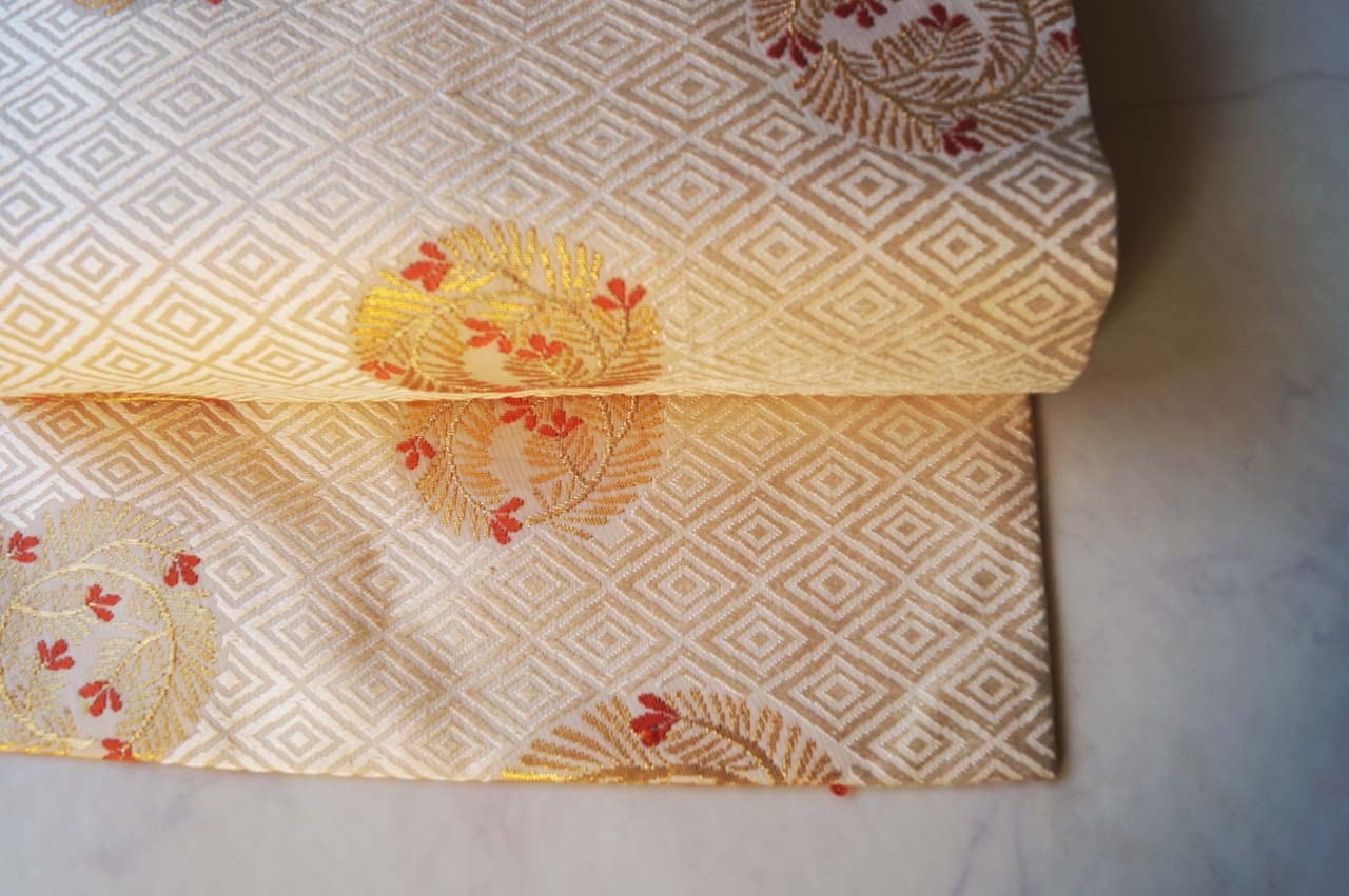 菱文が唐織りされた立体感ある帯地は、