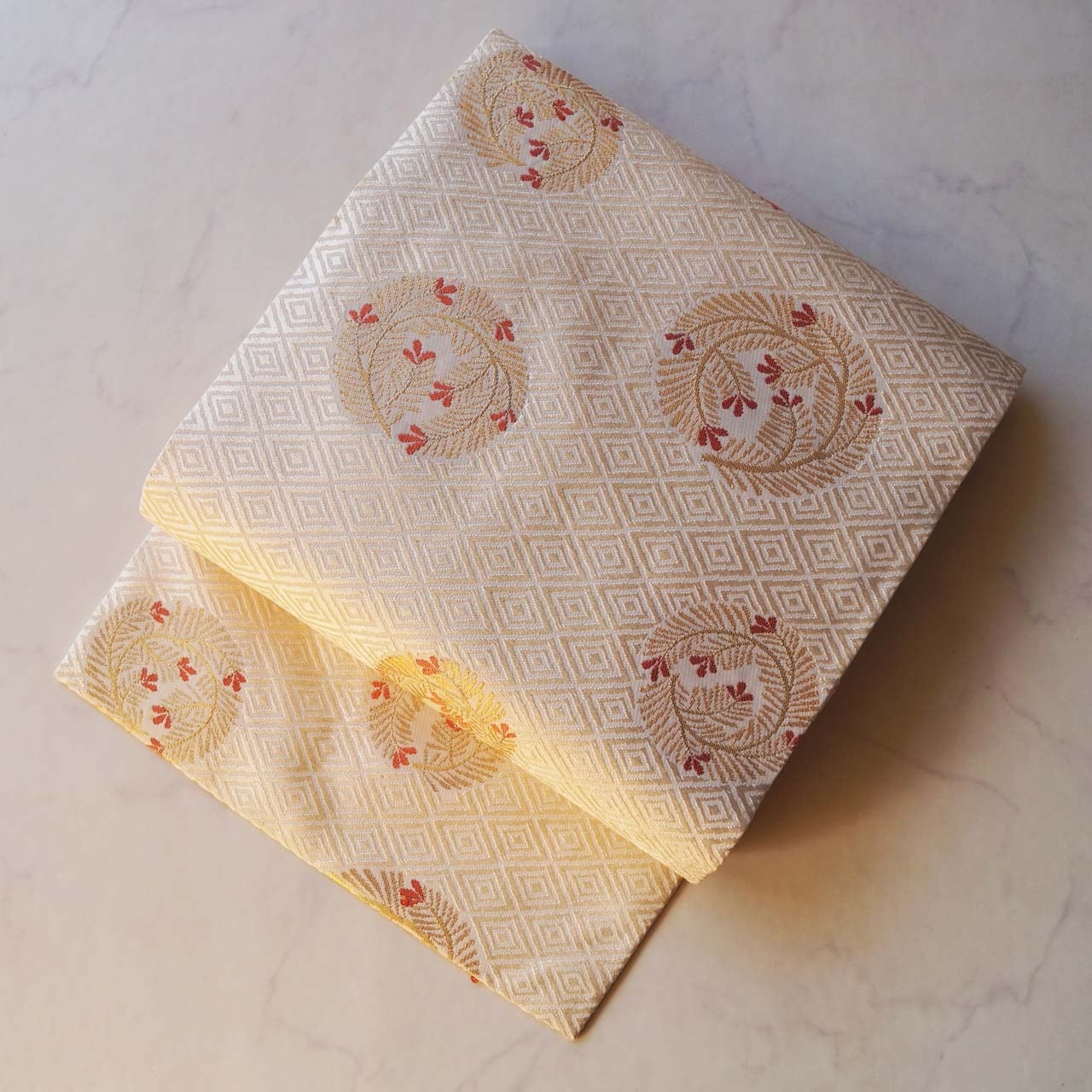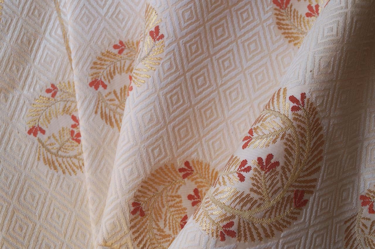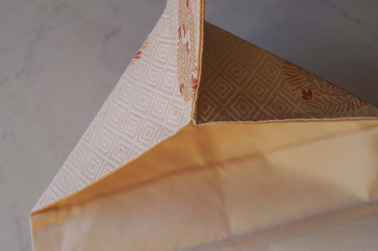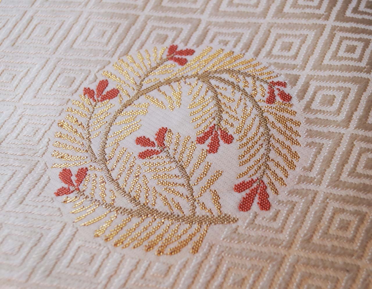 菱文が唐織りされた立体感ある帯地は、