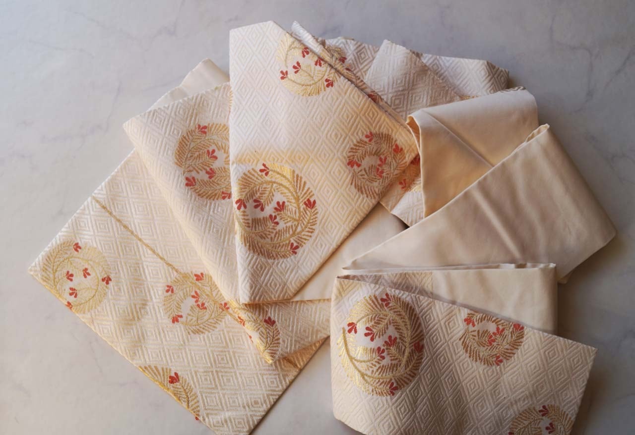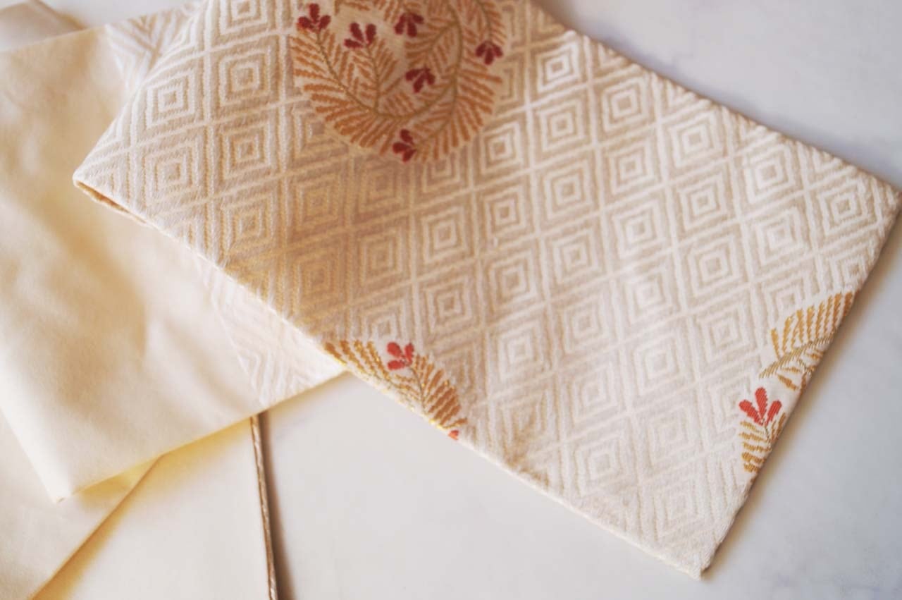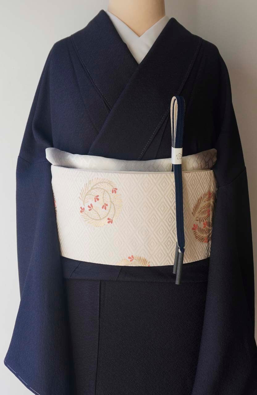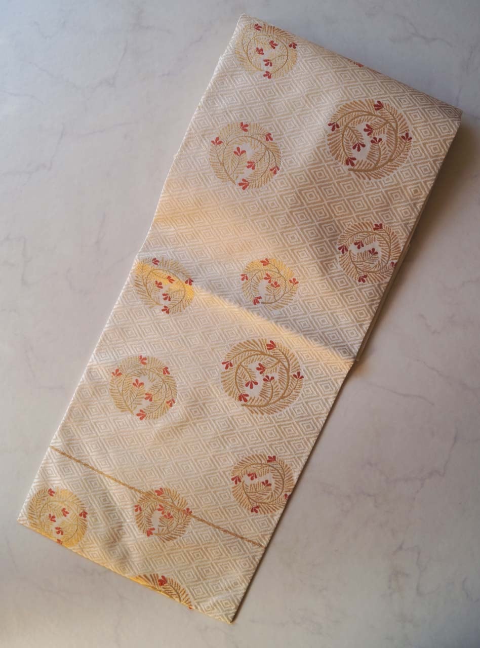 柔らかな練色の帯地に、