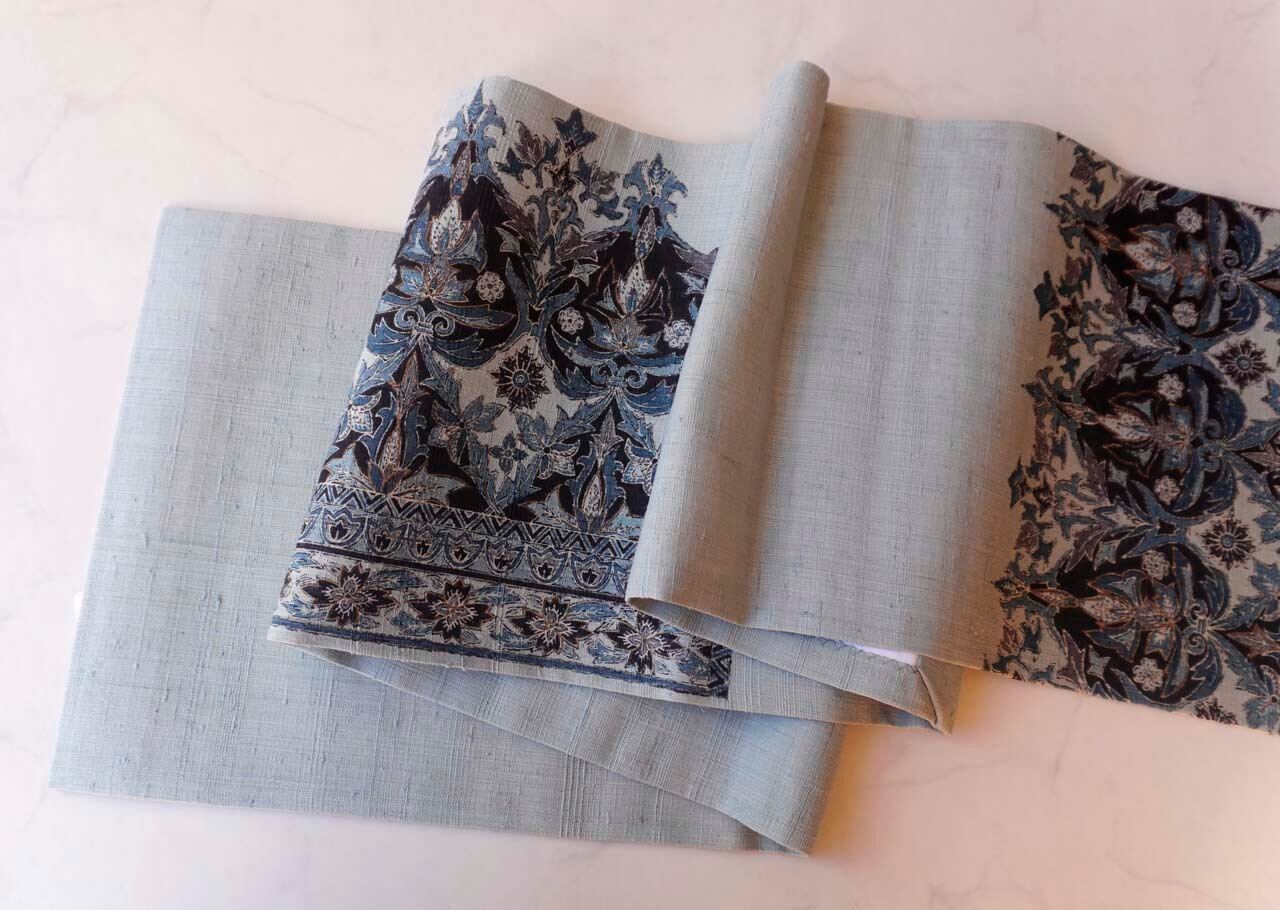ざらりとした生紬特融の手触り。