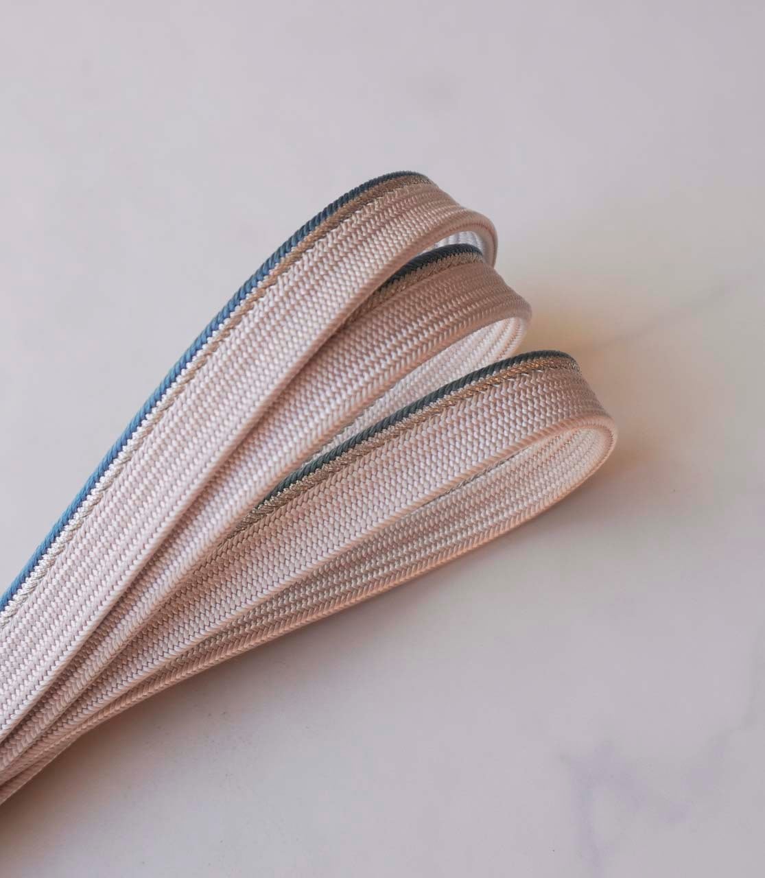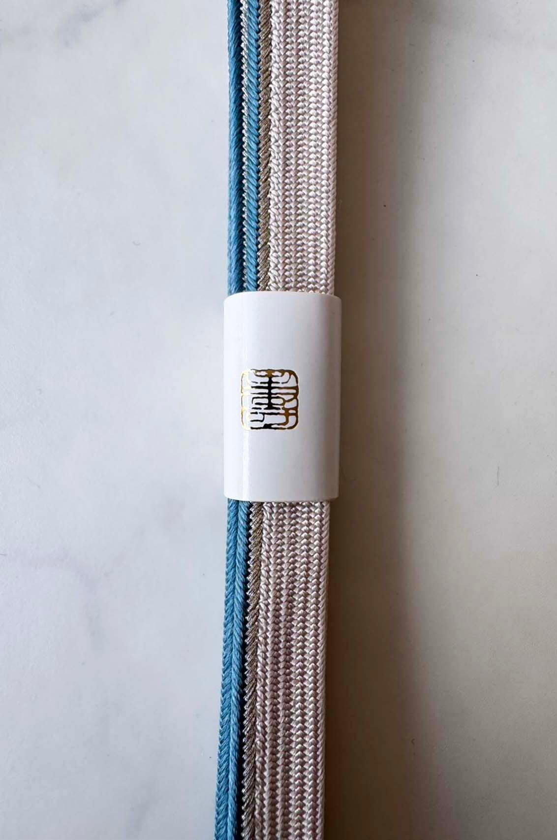 片側に銀糸と錆浅葱のアクセント