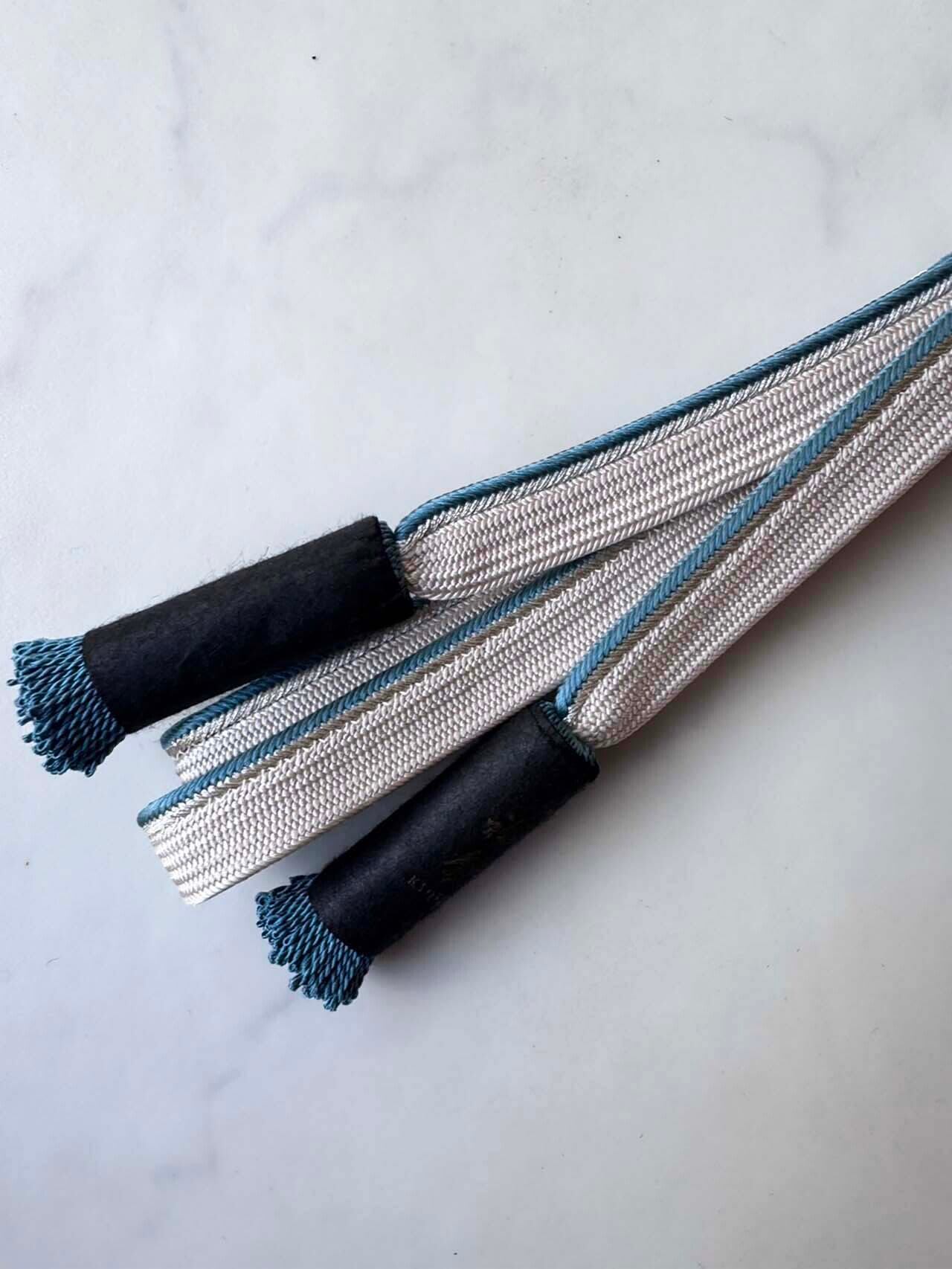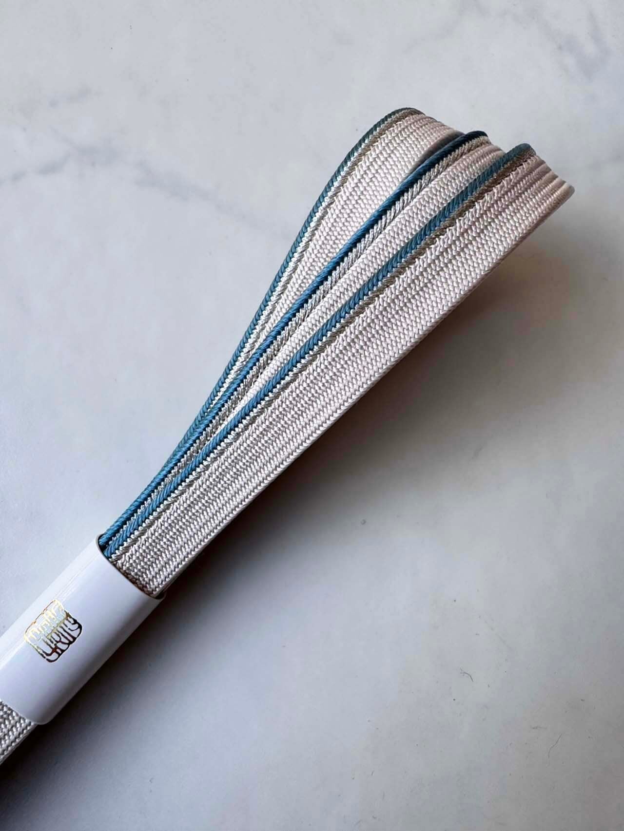 【衿秀・帯締め】白練×錆浅葱×銀 肩耳高麗組 撚り房帯締め 20251216㉕
