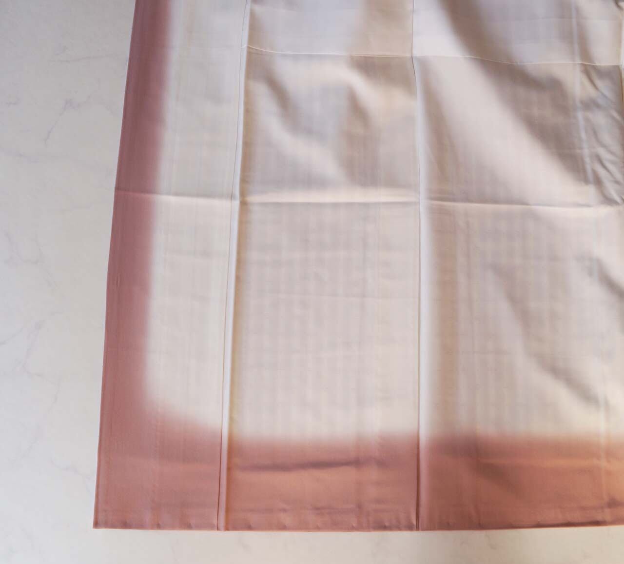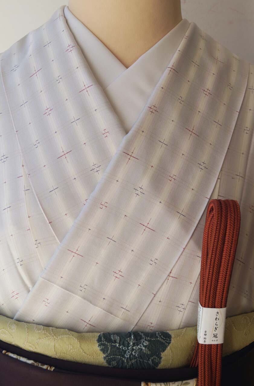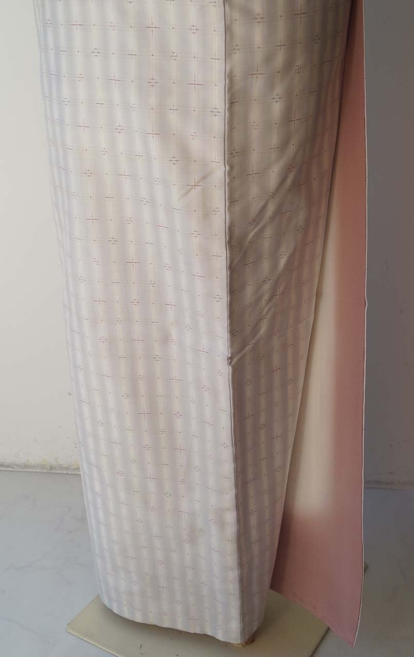 【袷】暁鼠色×胡粉色 格子に絣文 紬 胴抜き仕立て