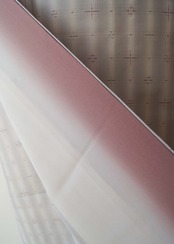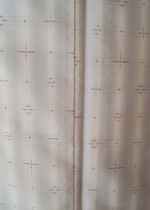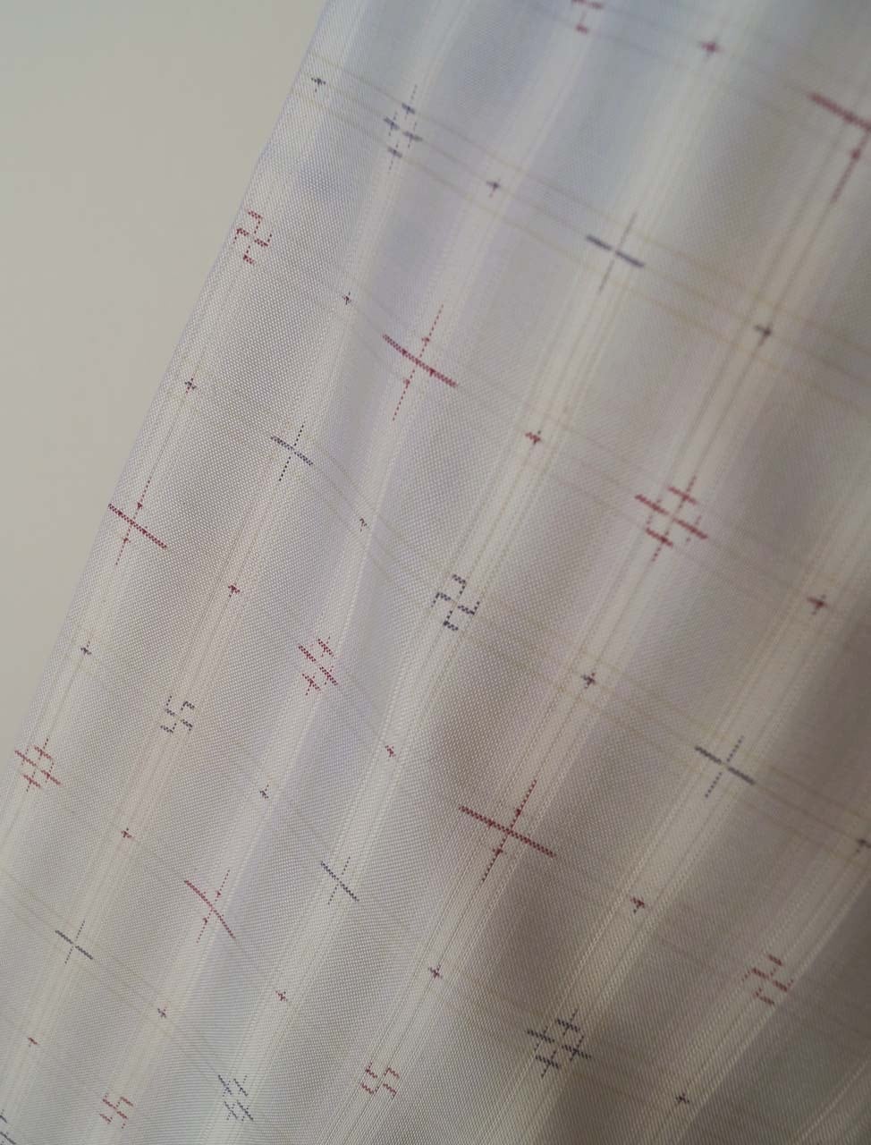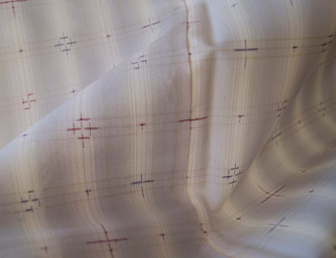 暁鼠色×胡粉色の格子に絣文の紬です。