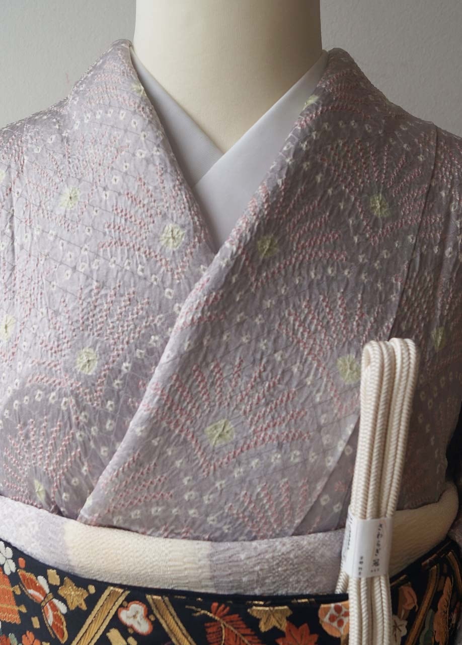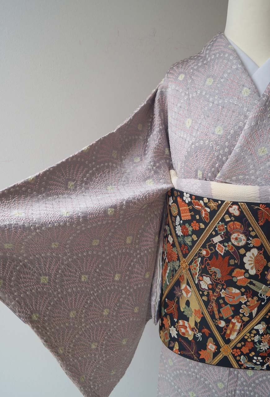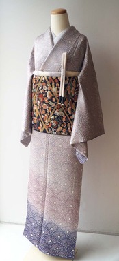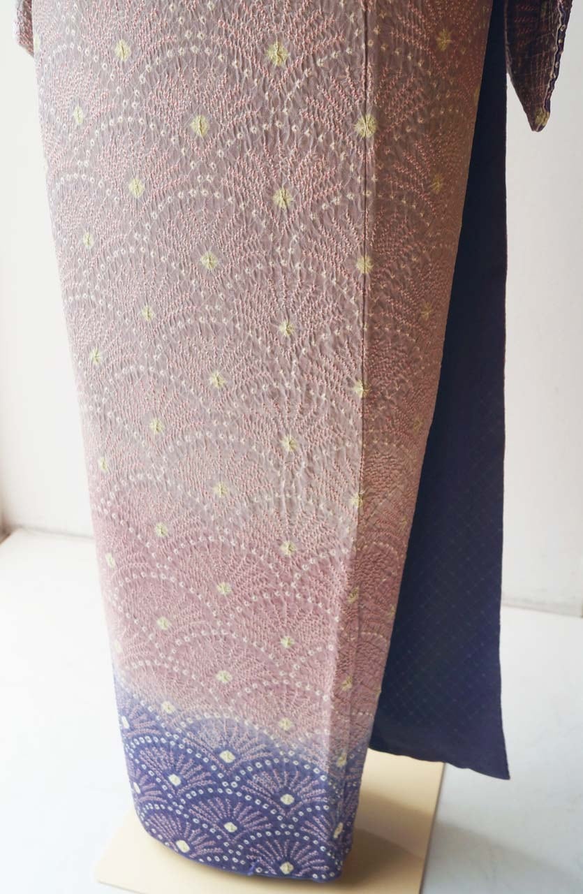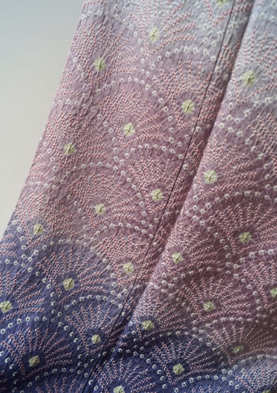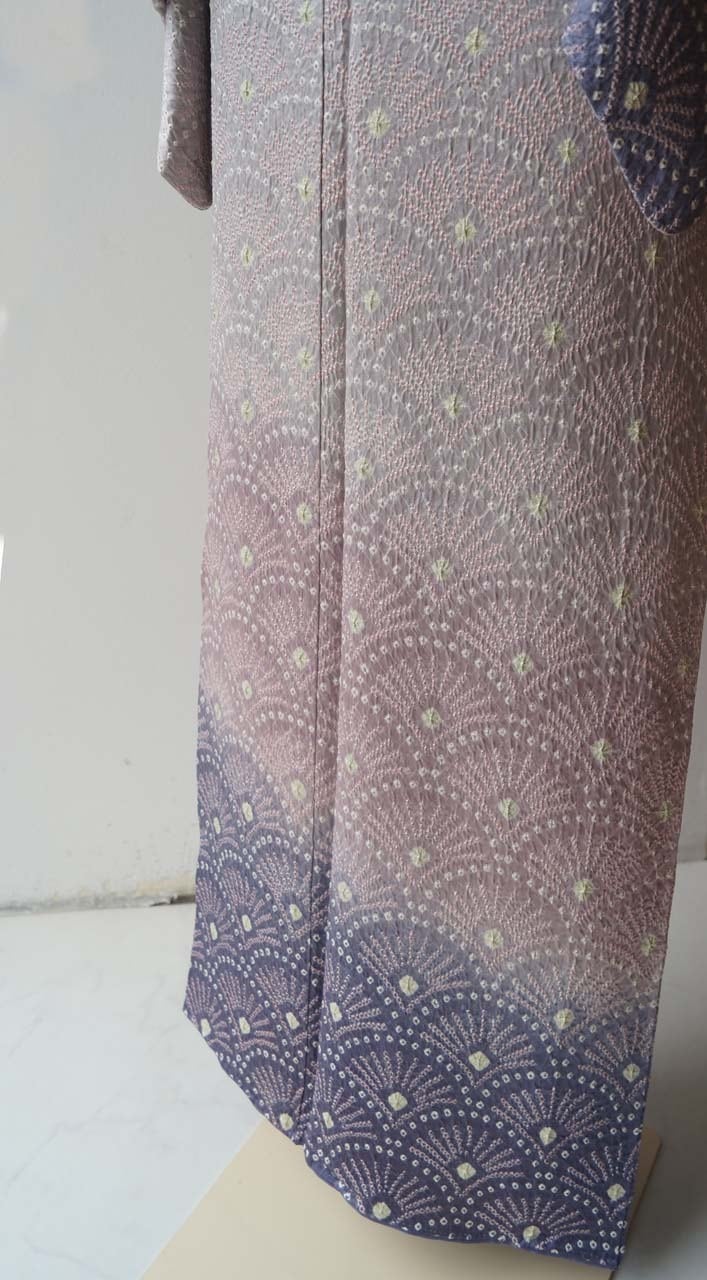 紫色系暈かしの総絞り、青海波文訪問着です。