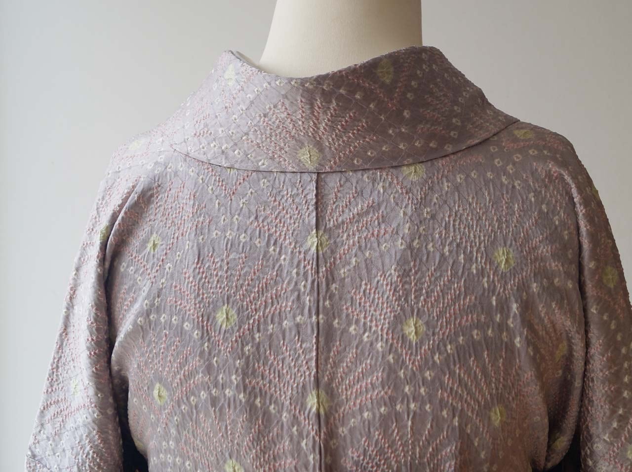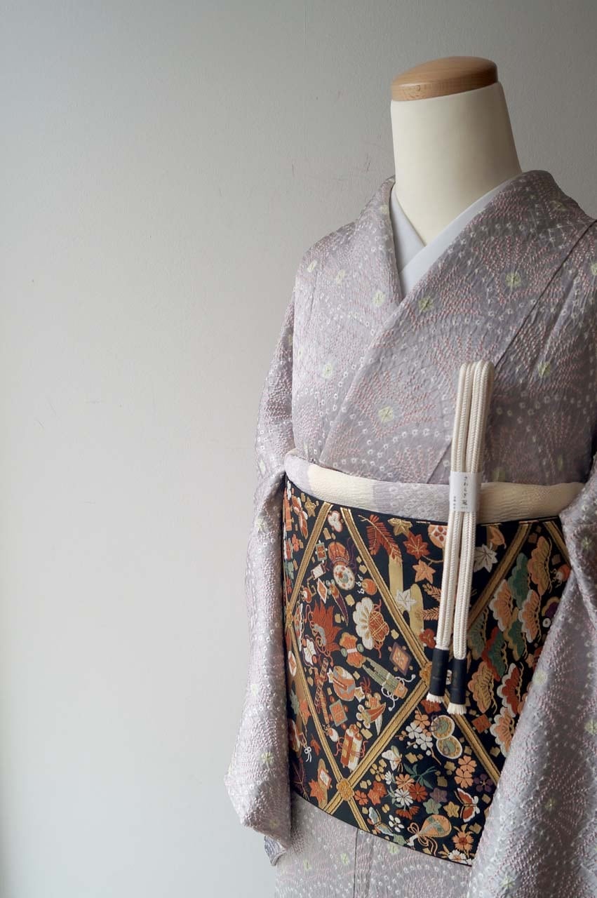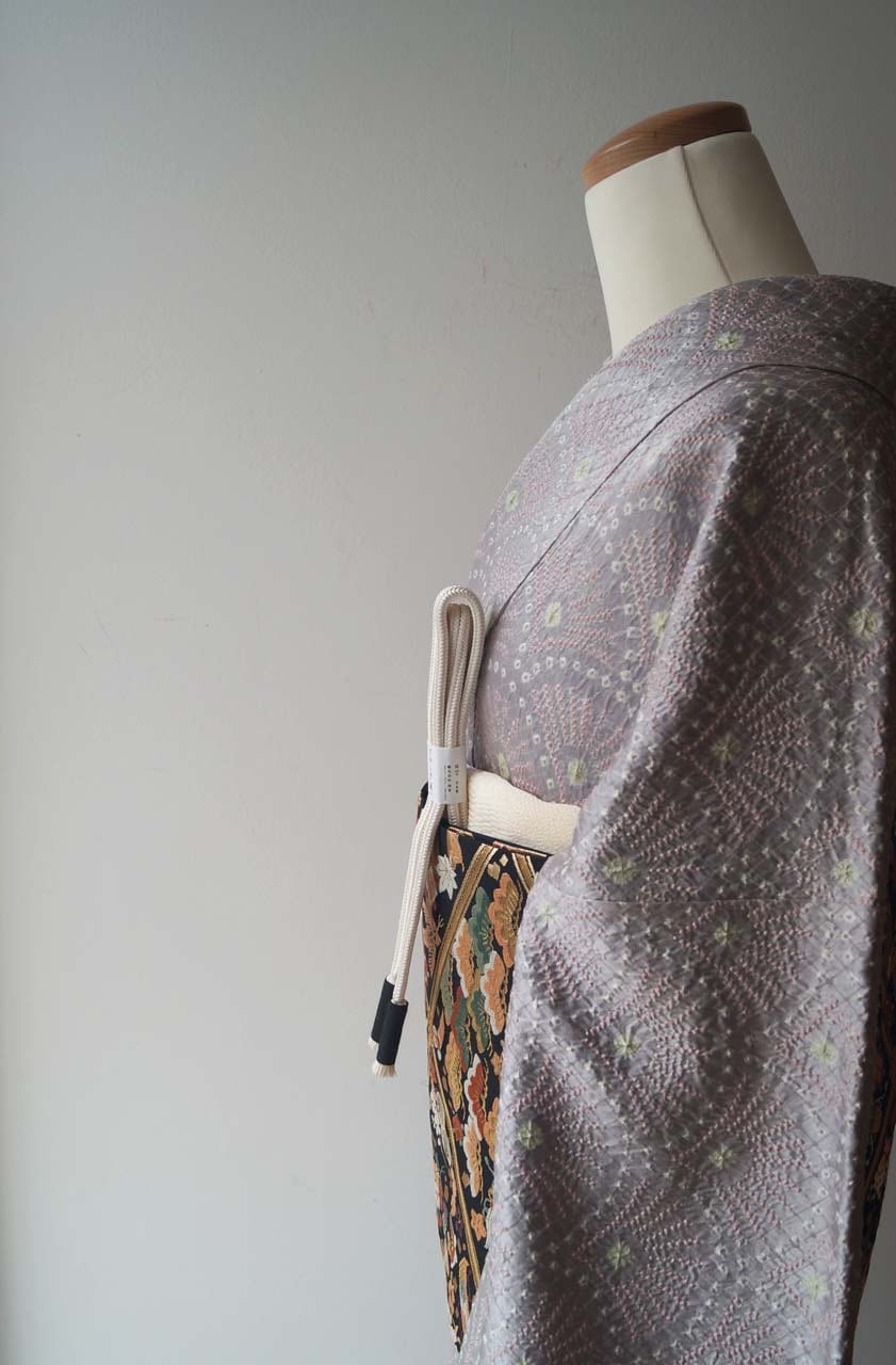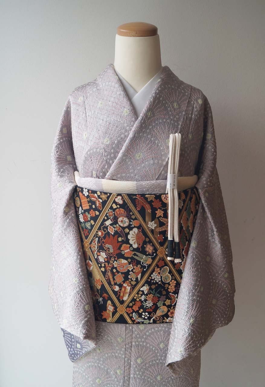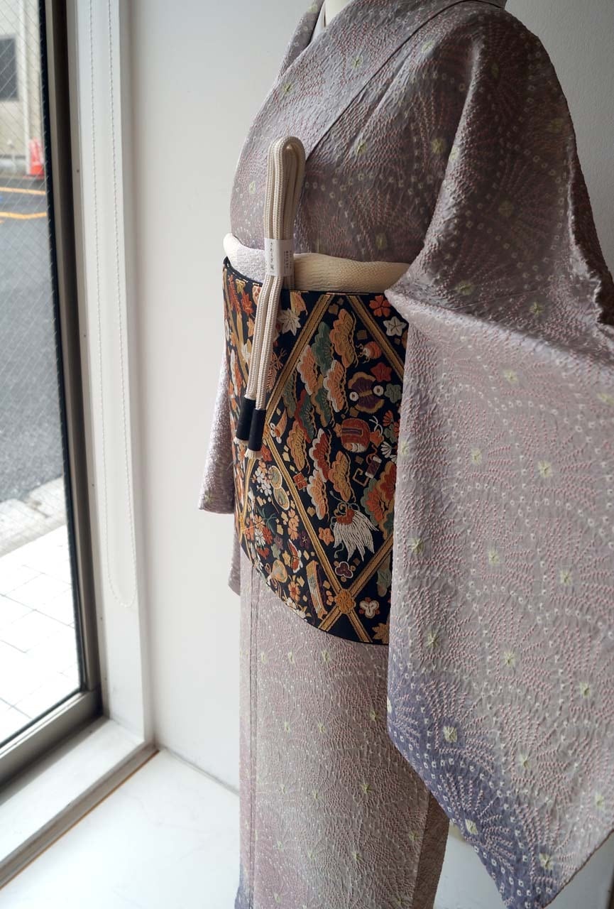 紫色系暈かしの総絞り、青海波文訪問着です。