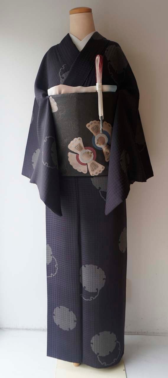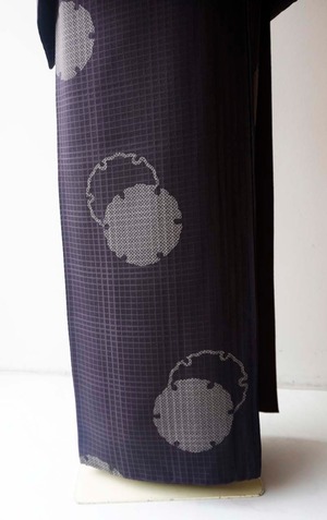 【袷】黒鳶色 雪輪文 小紋
