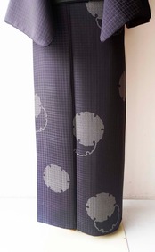 黒に近い深い鳶色の袷の小紋です。