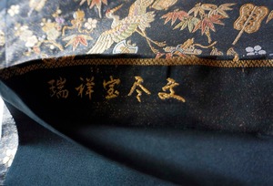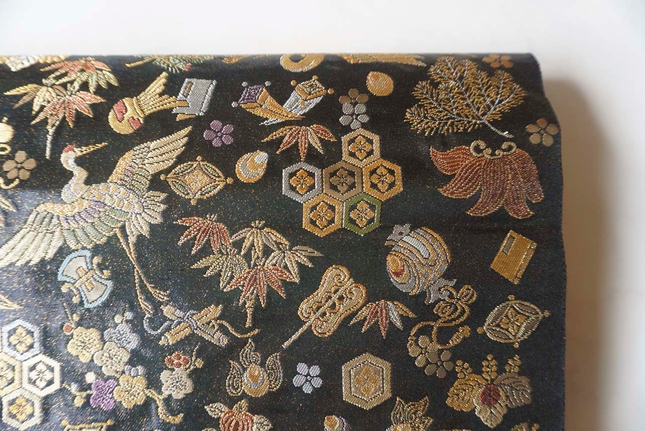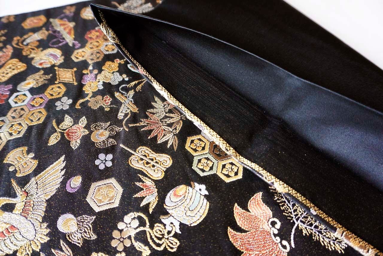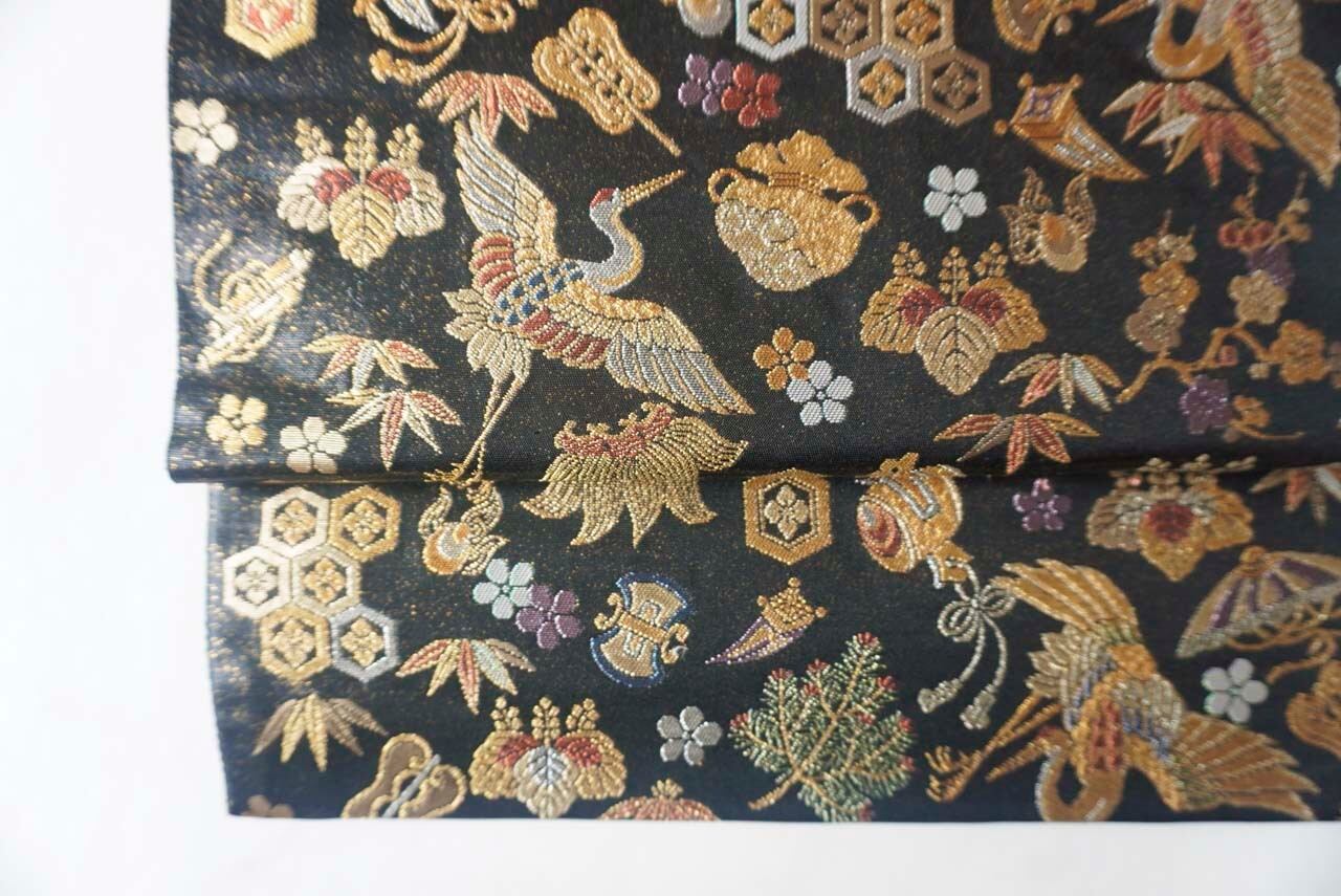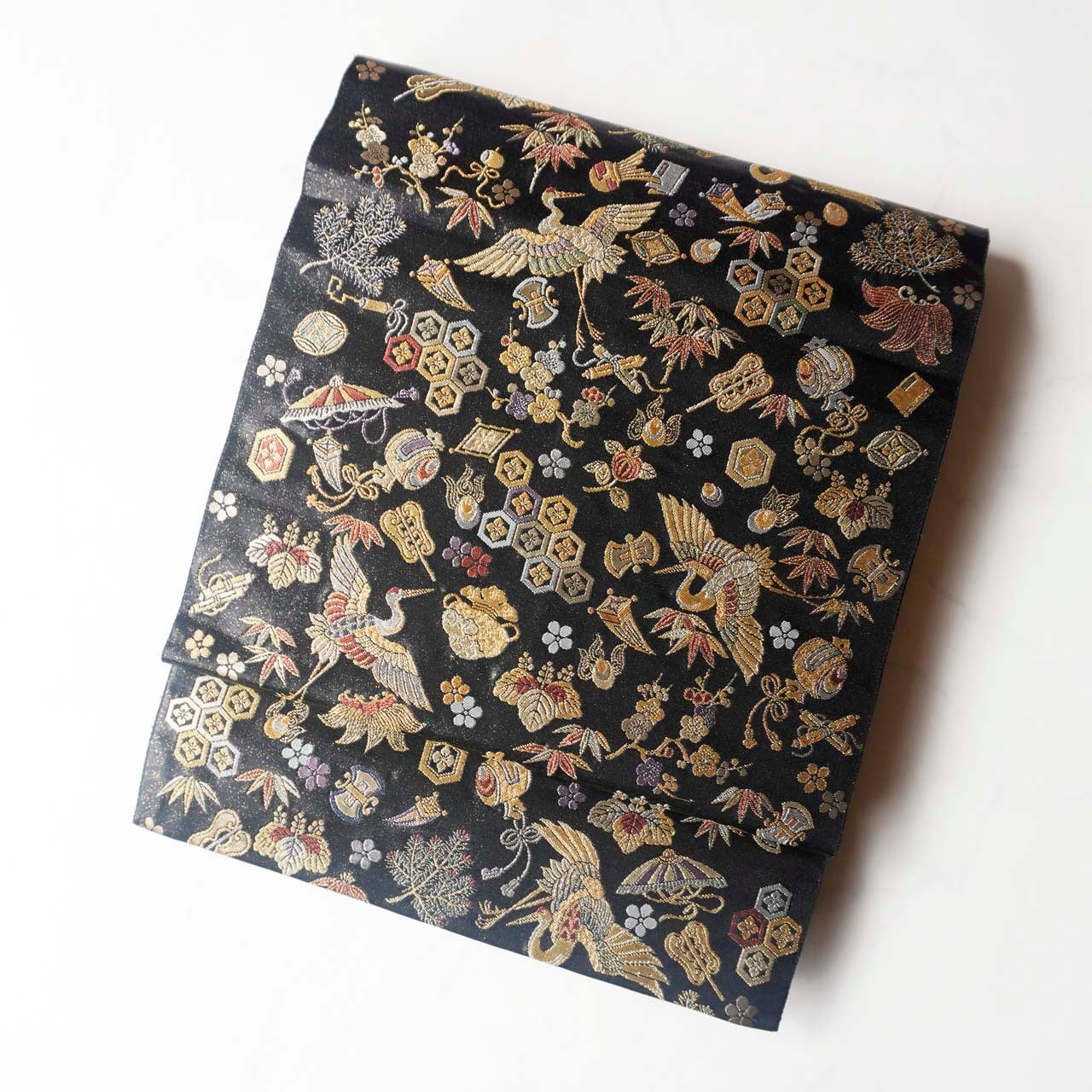【ふくろ帯】黒色地 瑞祥宝尽文 ふくろ帯