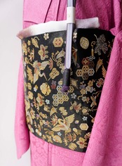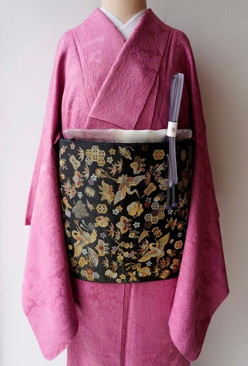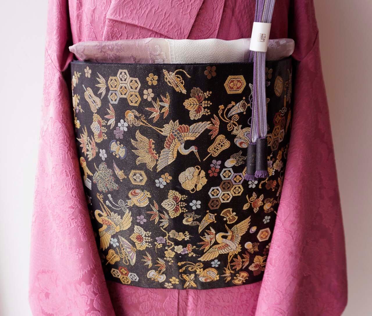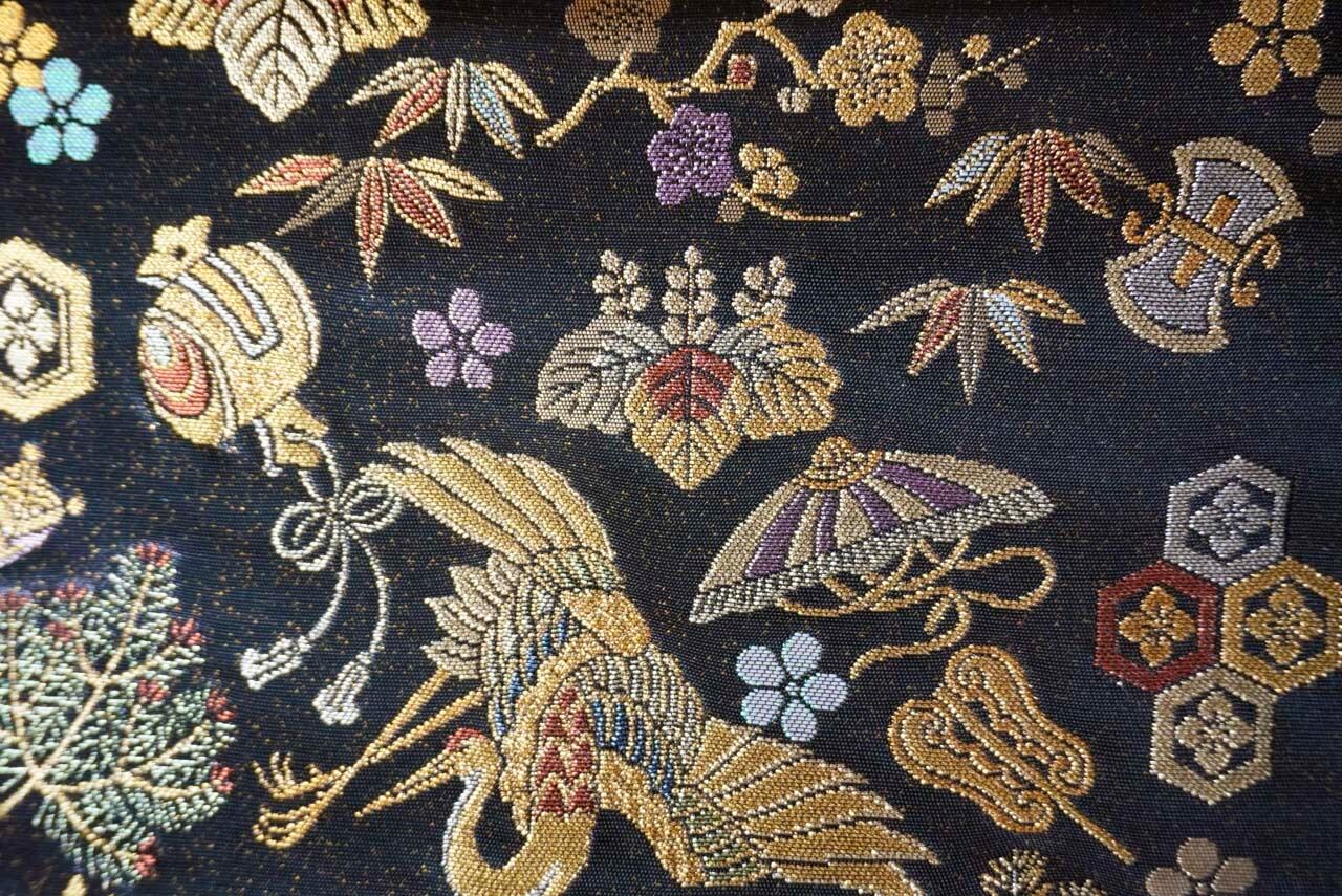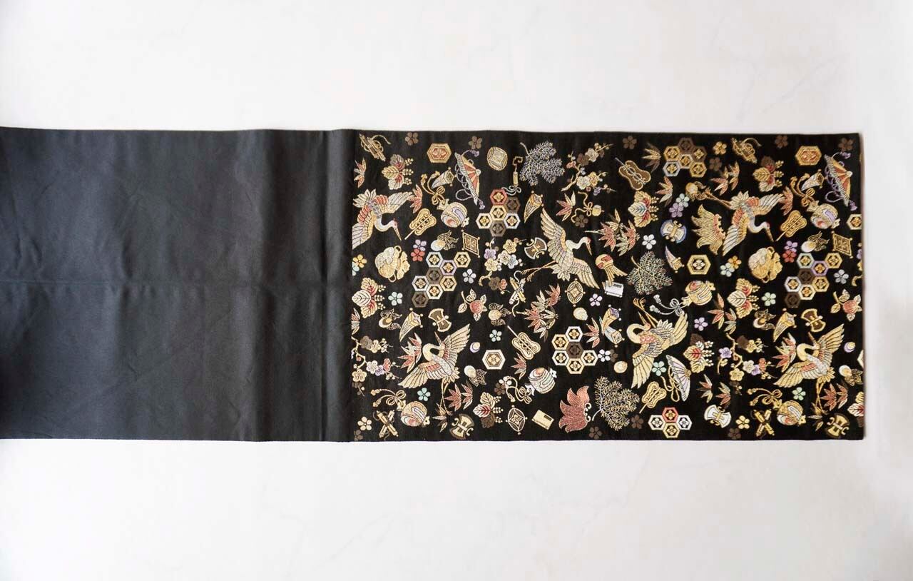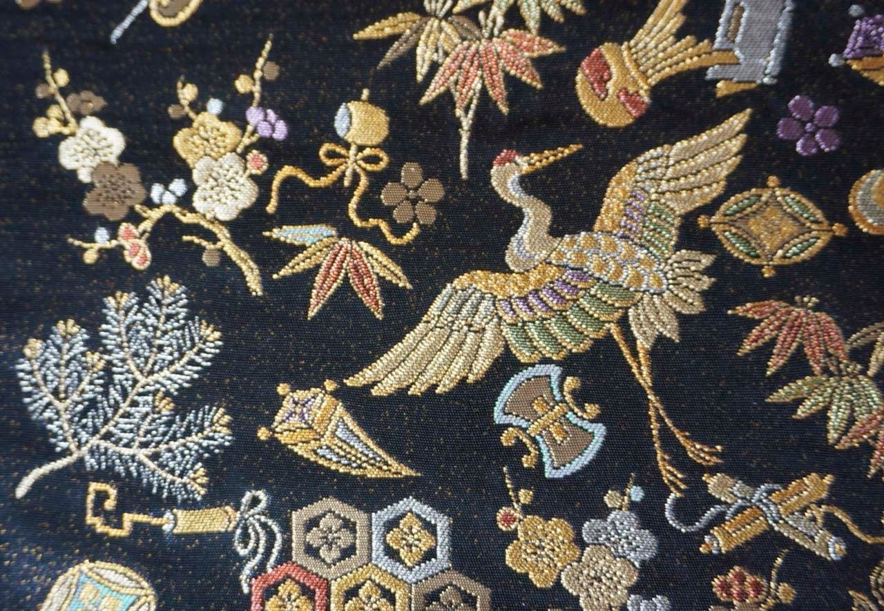 【ふくろ帯】黒色地 瑞祥宝尽文 ふくろ帯