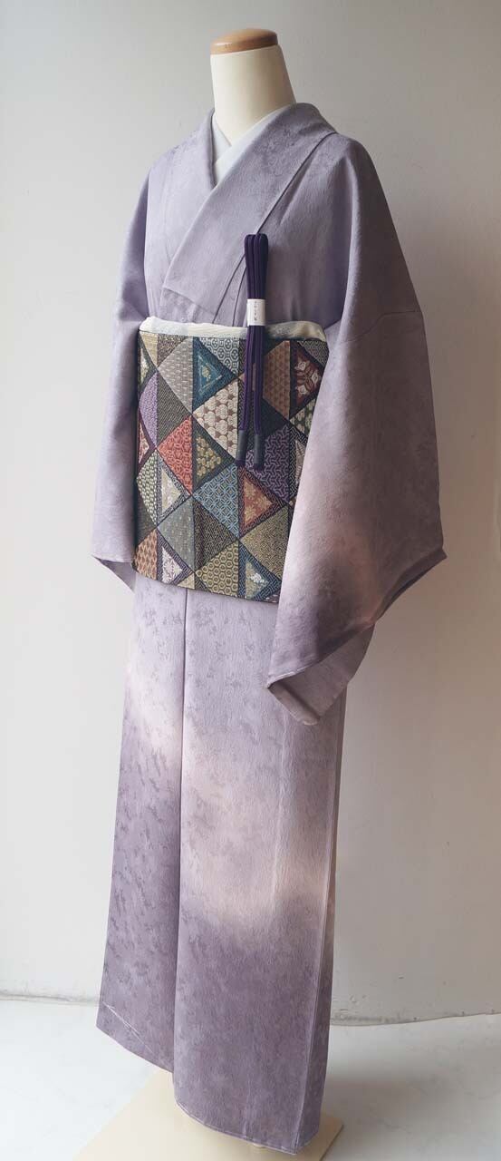藤色系の斜め裾暈かしの附下げです。