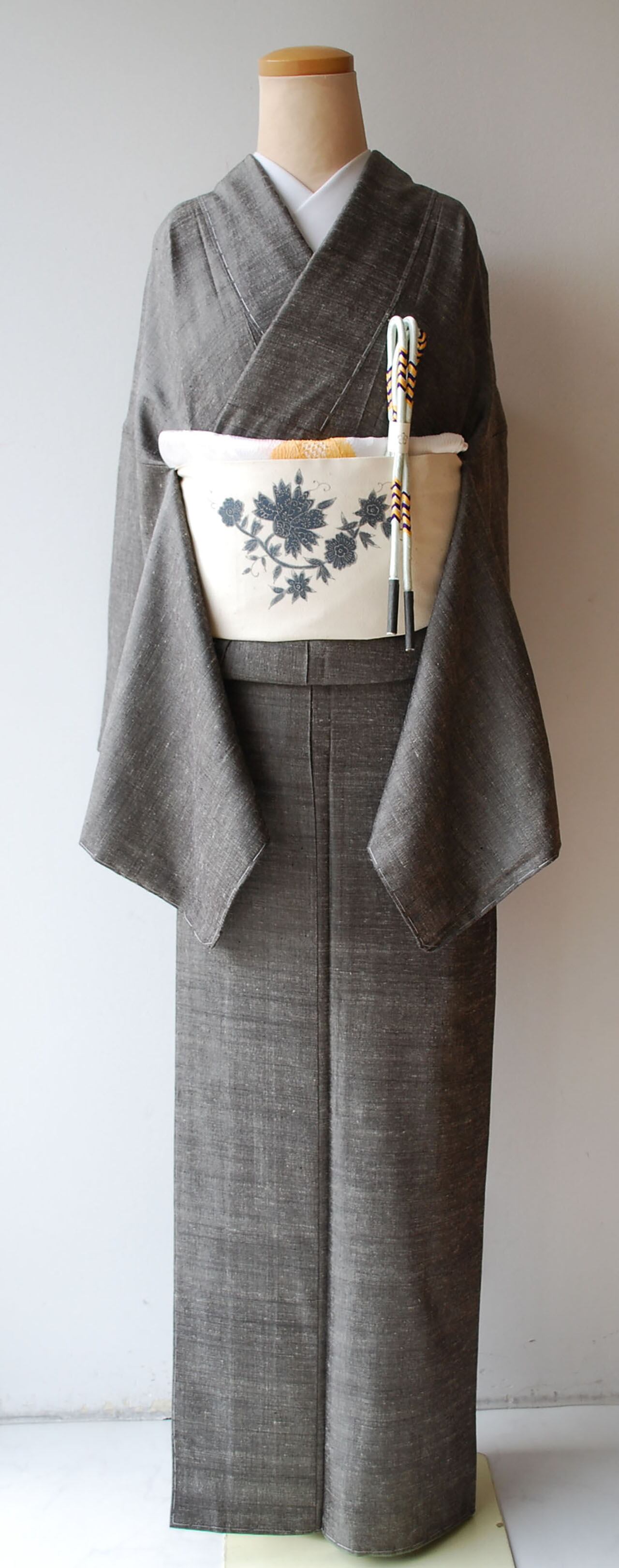 薄手の紬地でところどころに茶色の