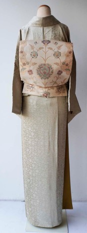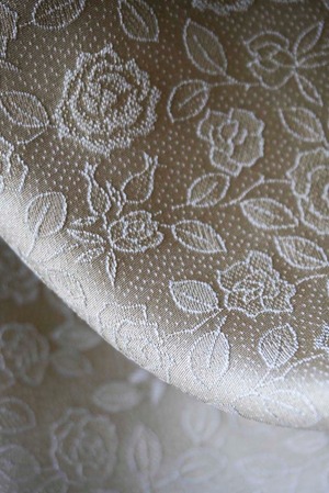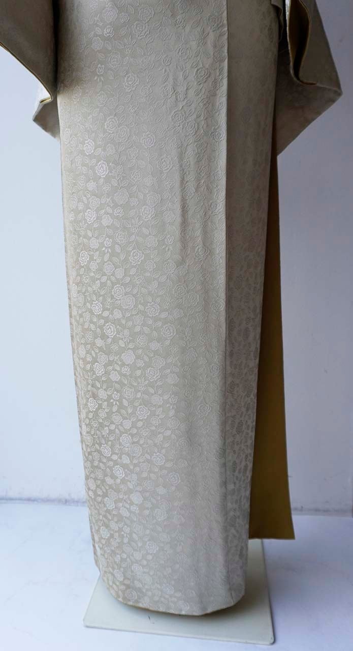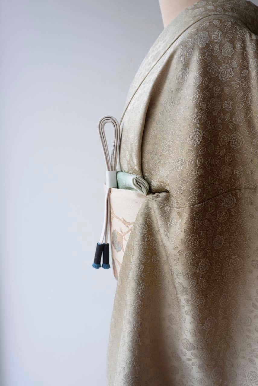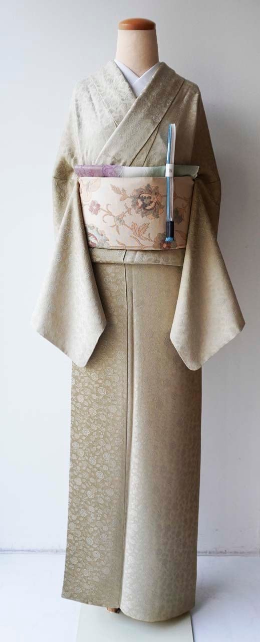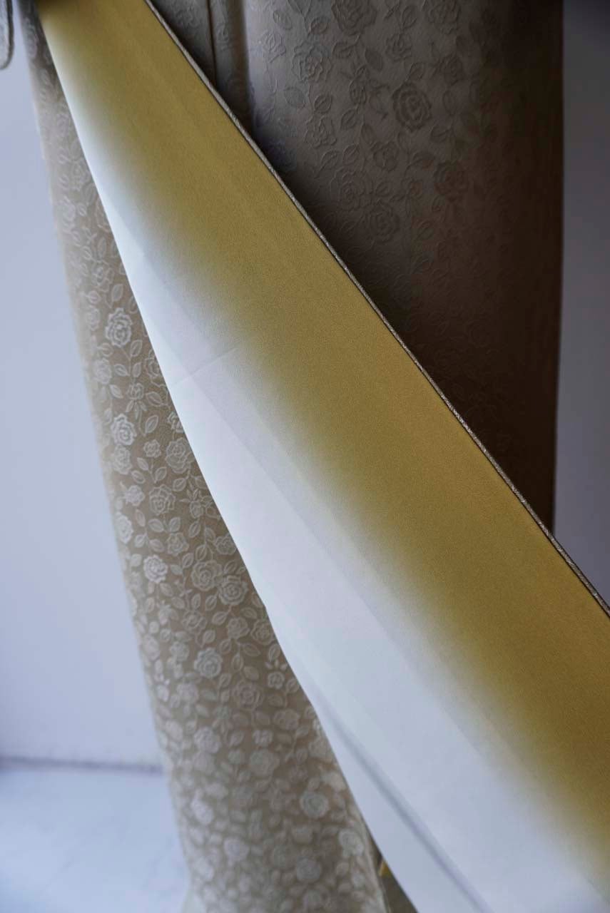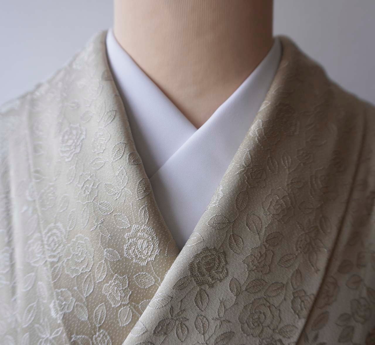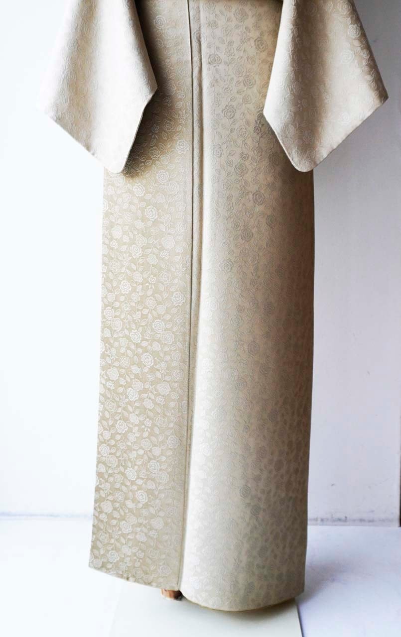 【袷】利休茶色 薔薇の地紋の縦暈かし 小紋