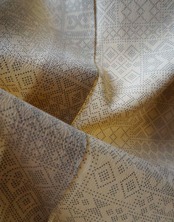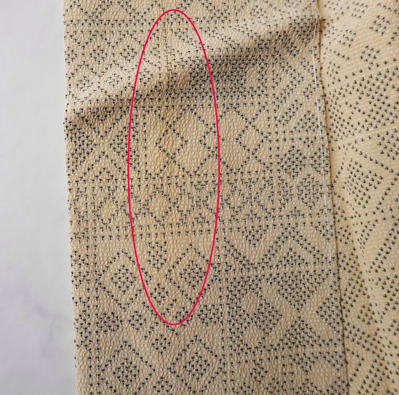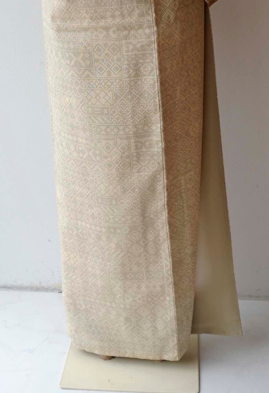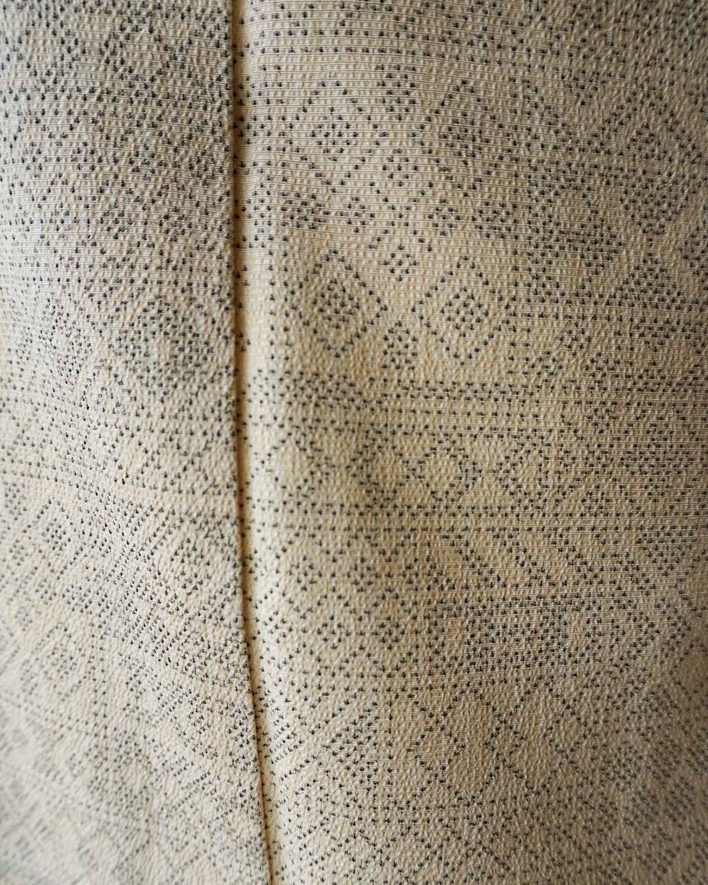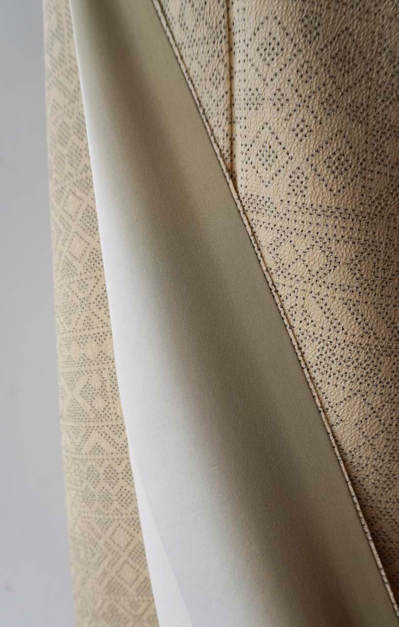 【袷】薄卵色地 幾何学文 塩沢お召し