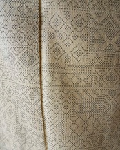 繊細な蚊絣で大小の菱文が様々に組み合わされた