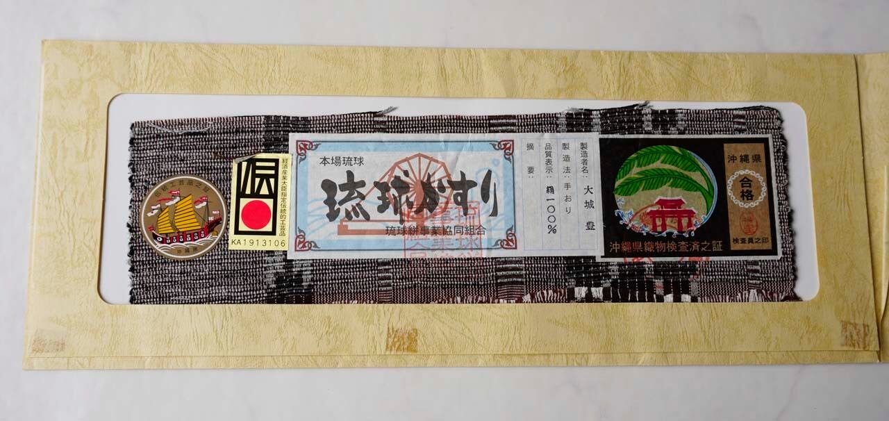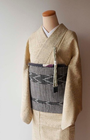 大城豊氏による手織りの琉球絣のなごや帯です。