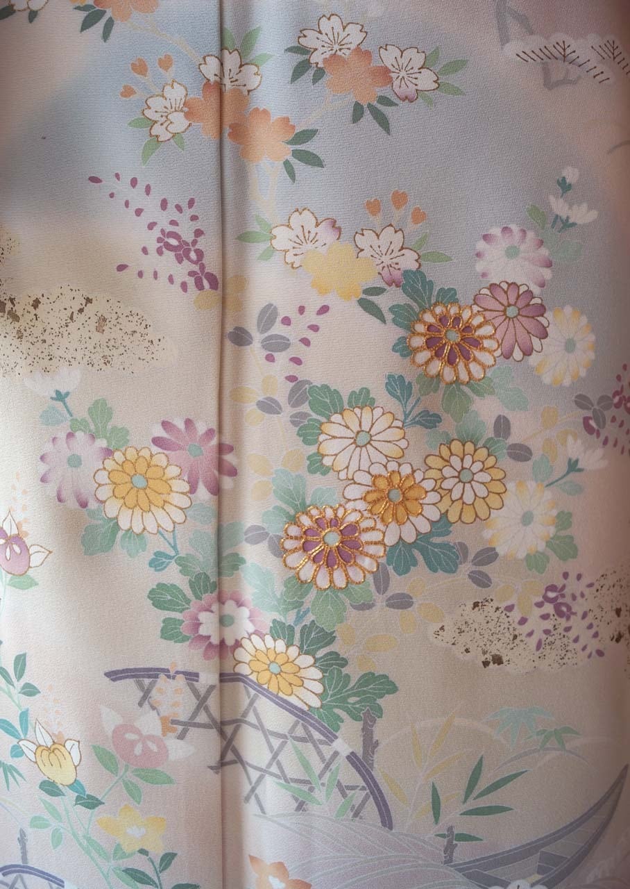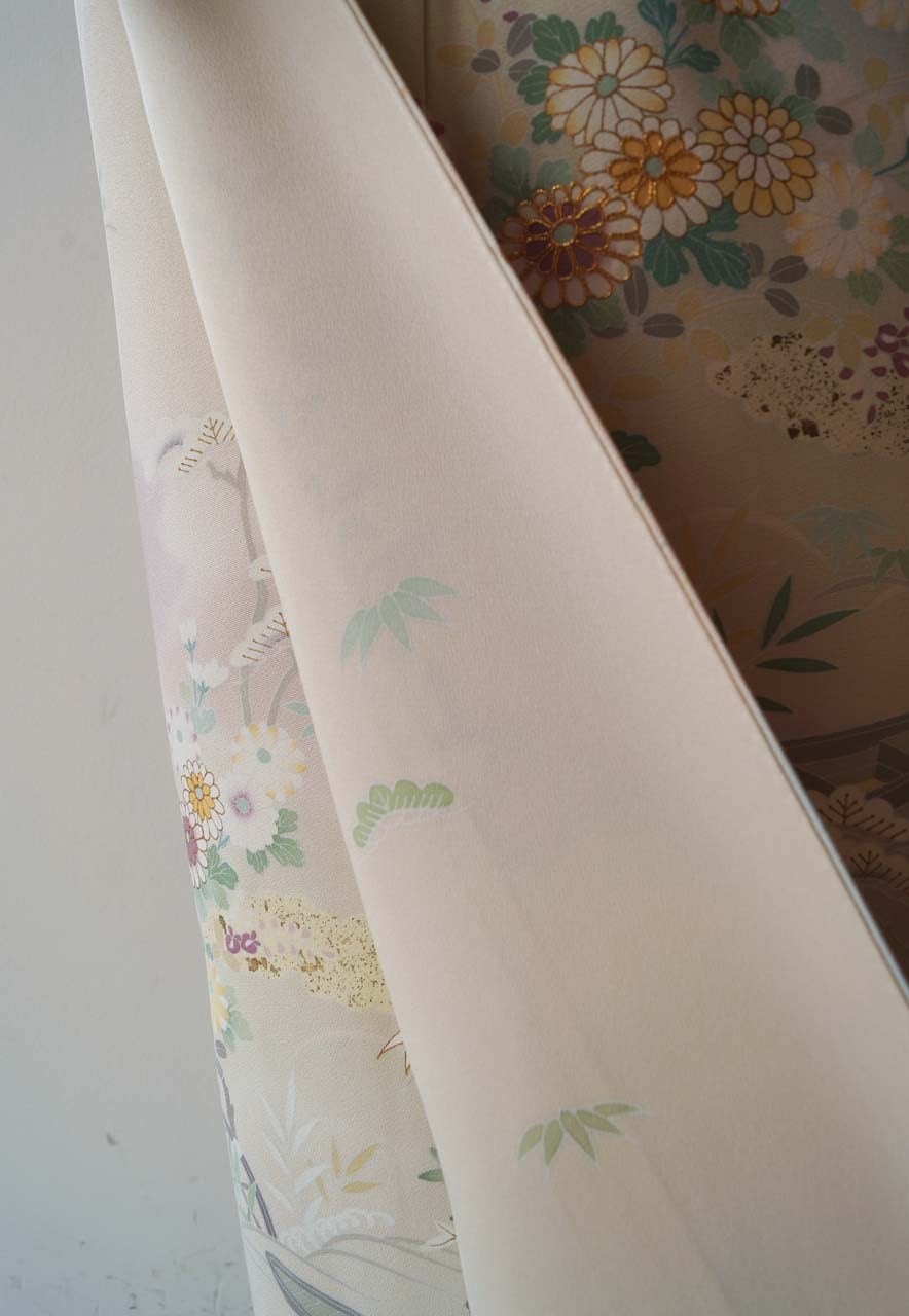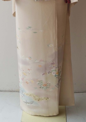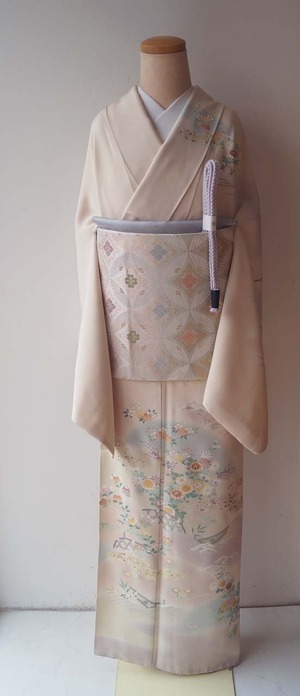 【袷】灰梅地 四季草花文 訪問着