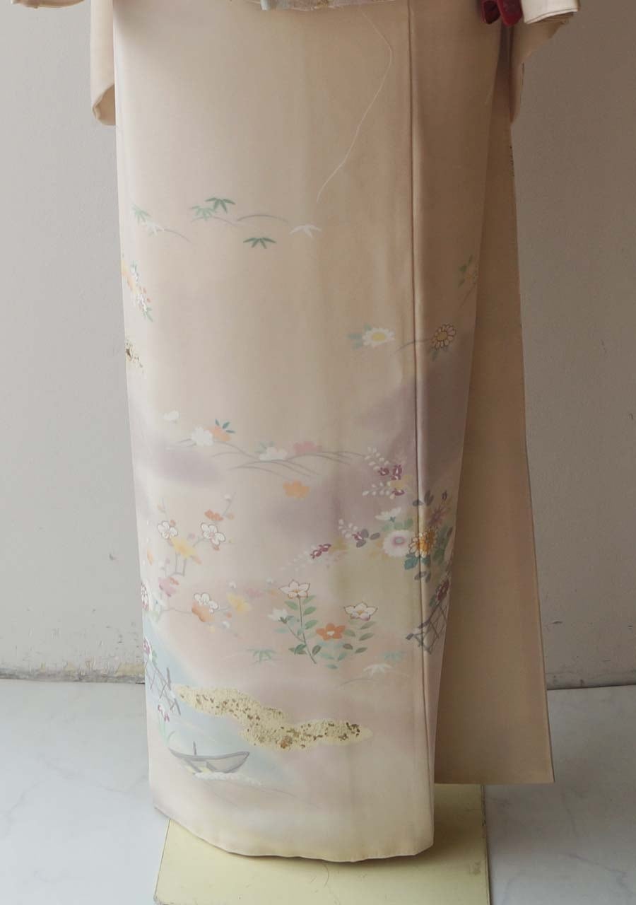 水辺のモチーフである蛇籠や舟に四季草花文、