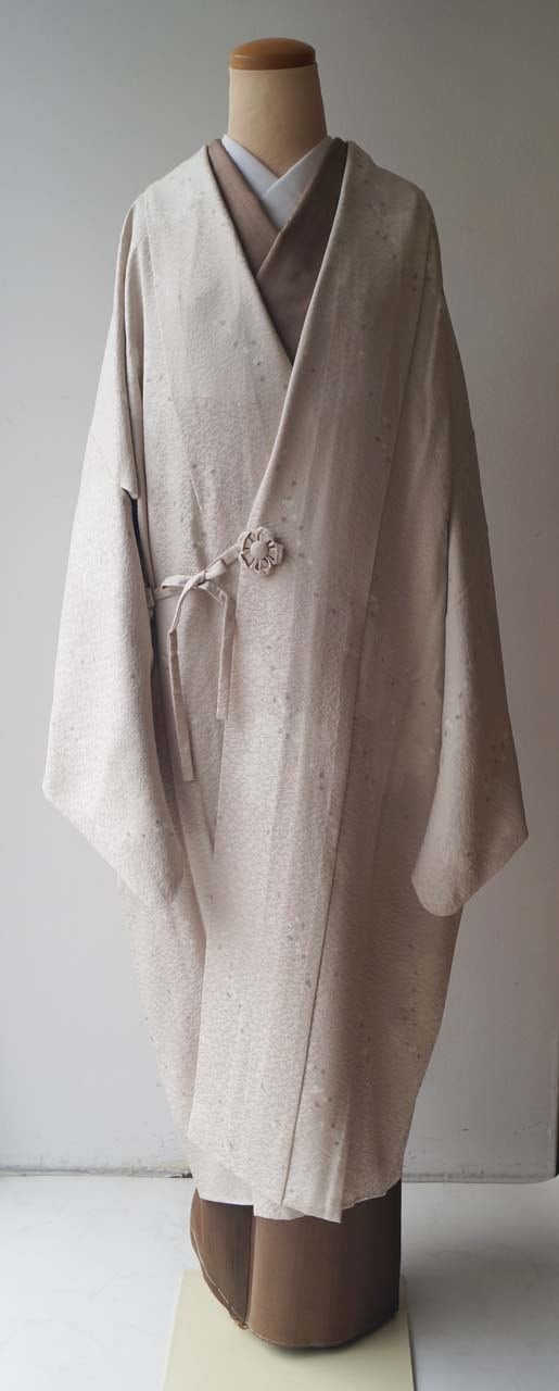 灰梅色地に桜文の道中着です。