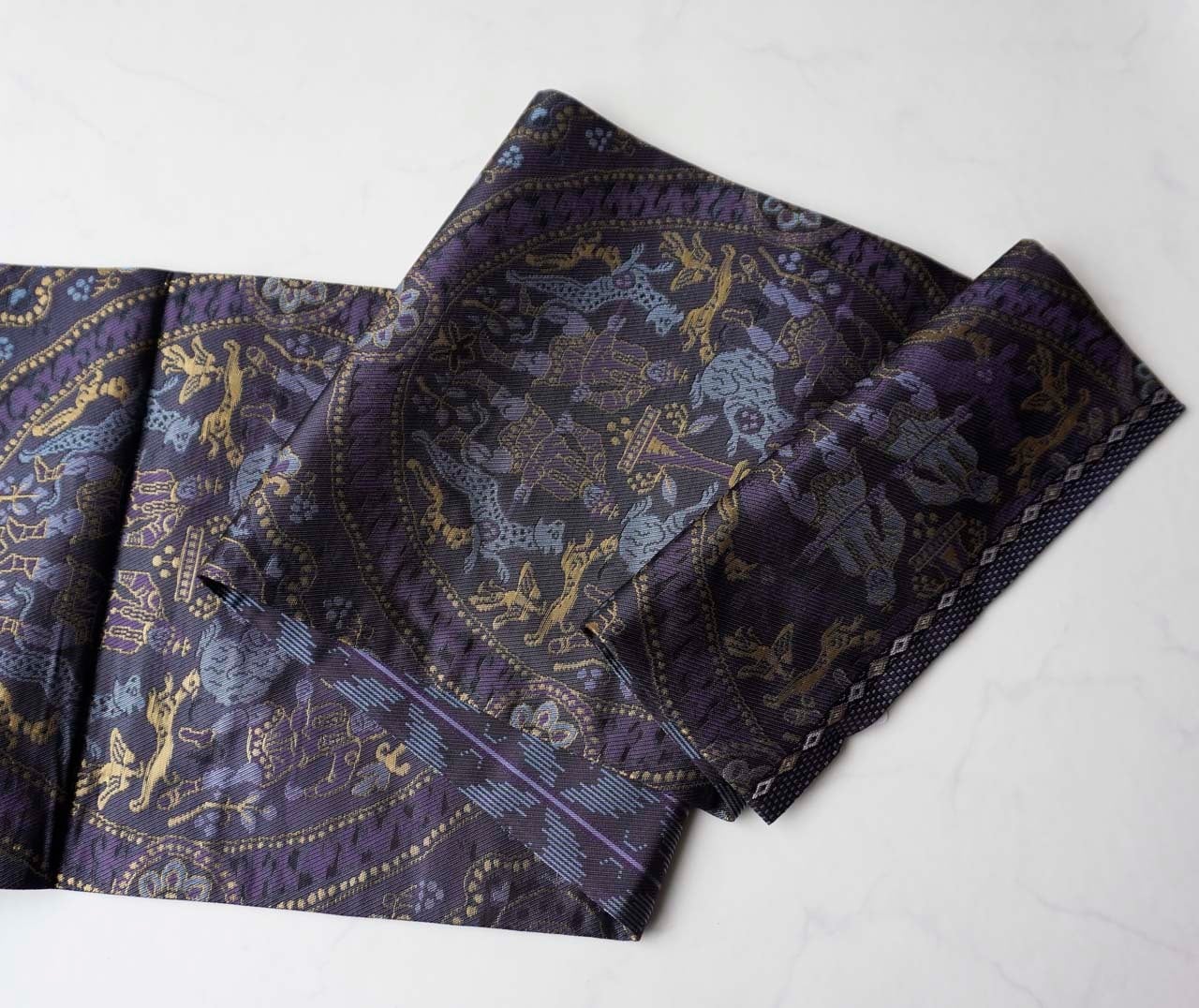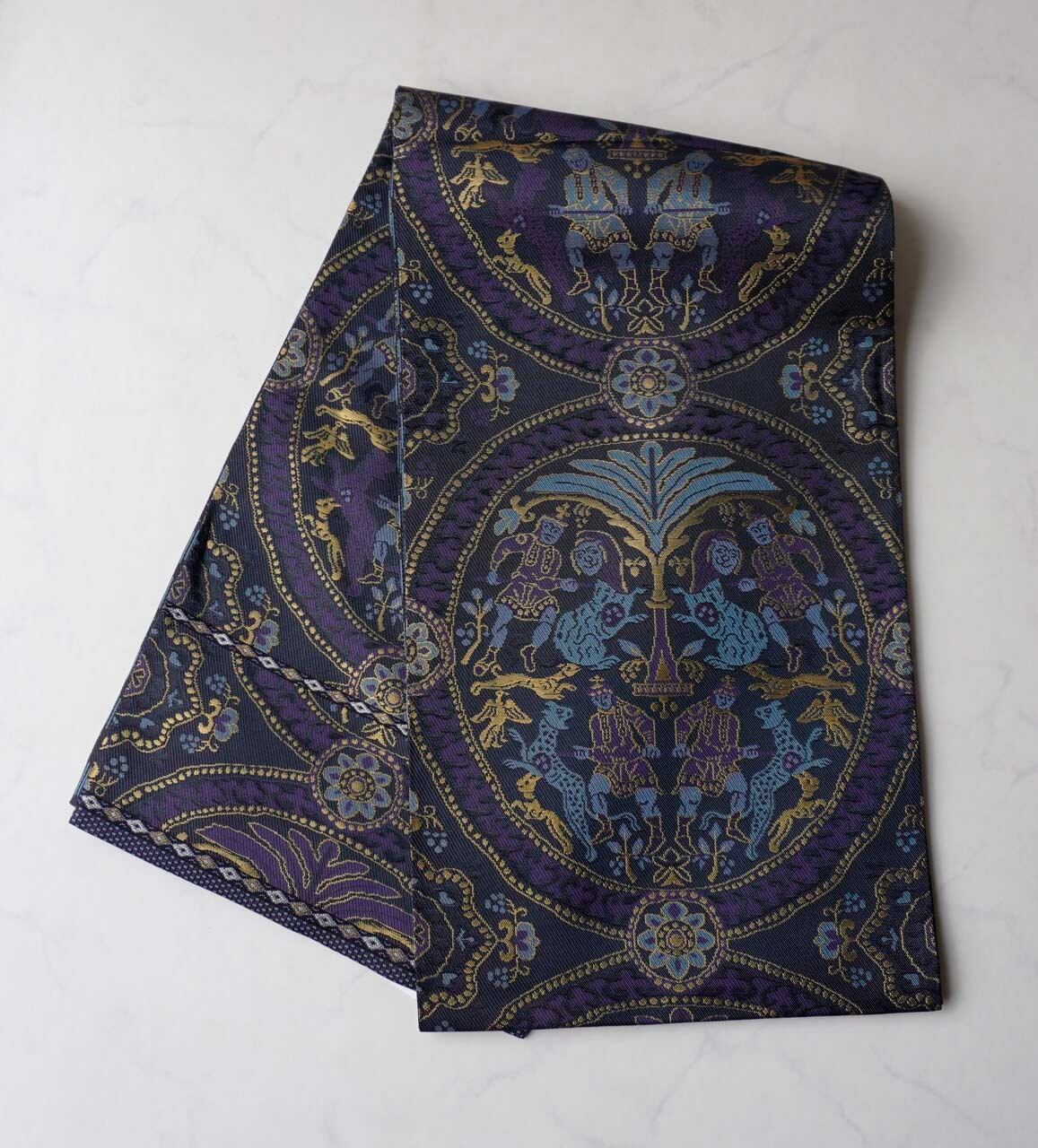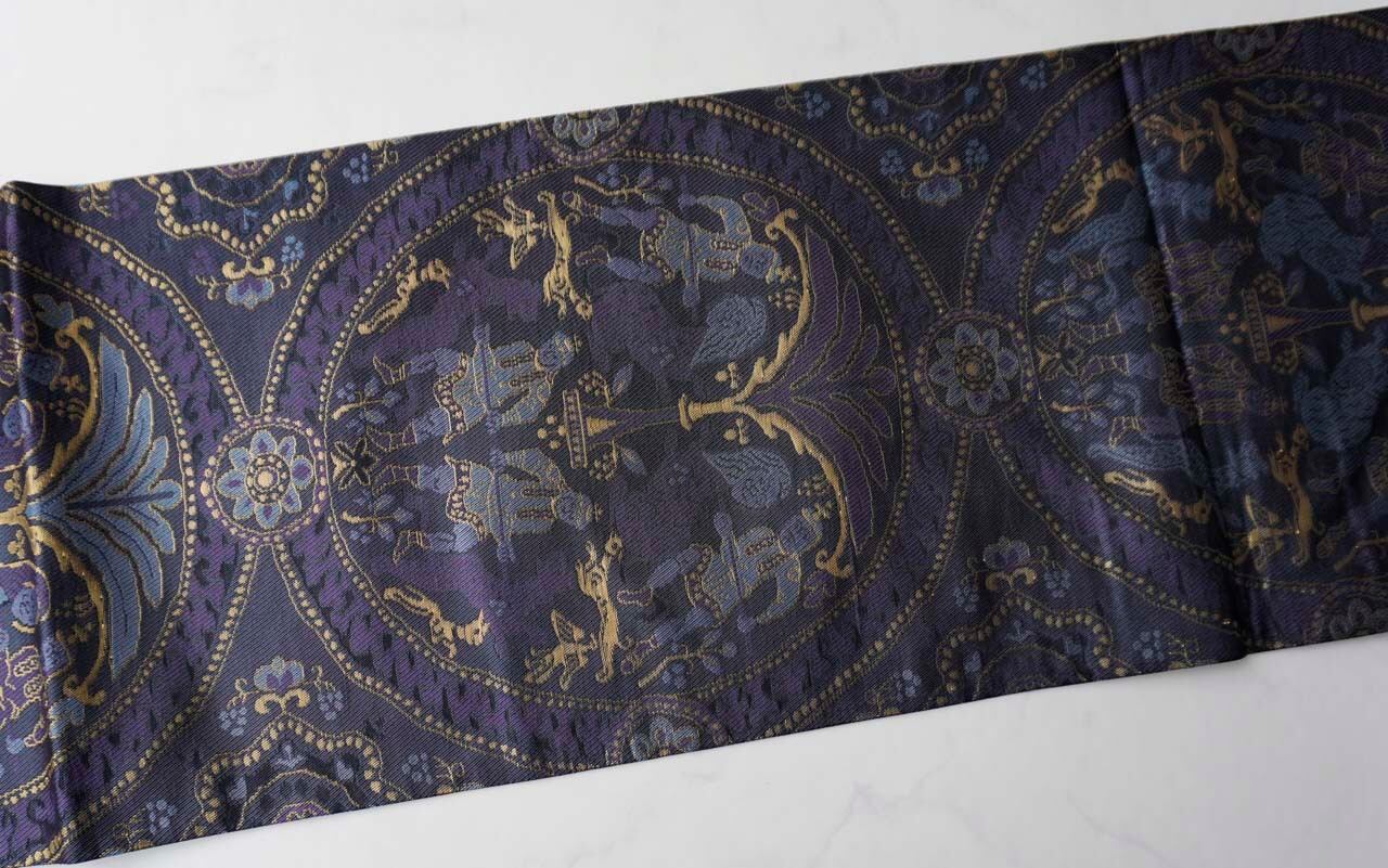 【ふくろ帯】濃紺地 狩猟文 ふくろ帯