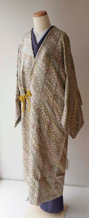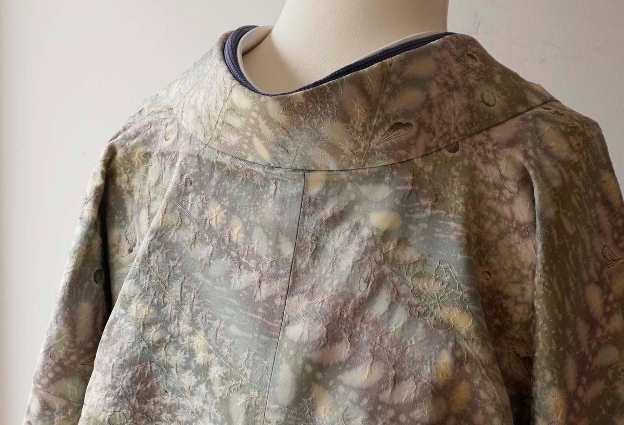 【コート】鈴乃屋扱い 鳩羽鼠×薄青 植物地紋に辻が花文 道中着