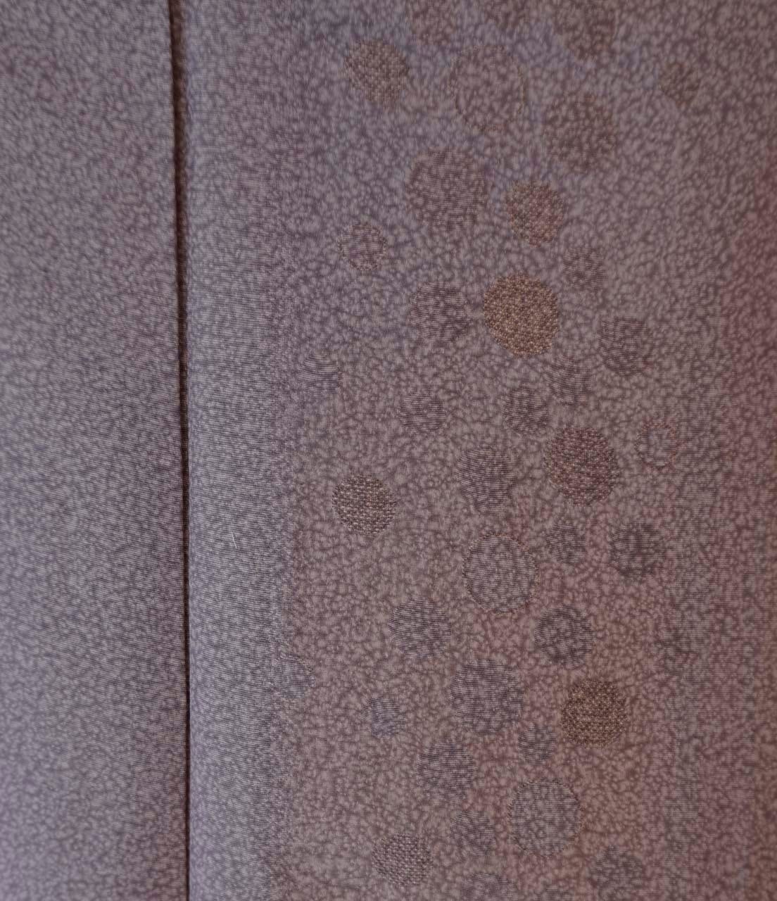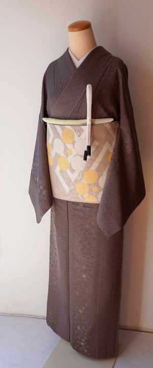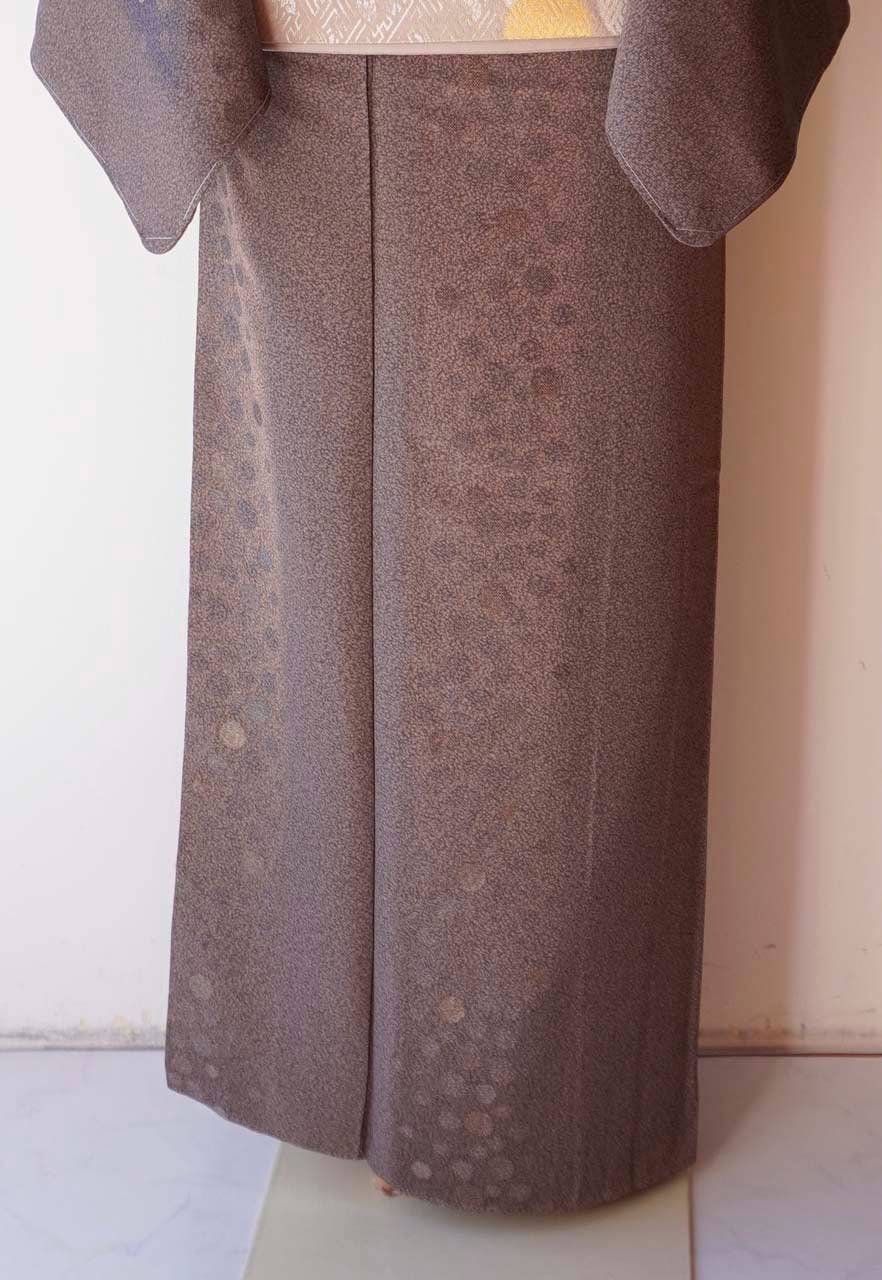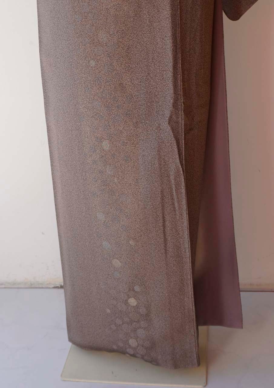 【袷】煤竹色×鴇鼠地 天目染に水玉文 小紋