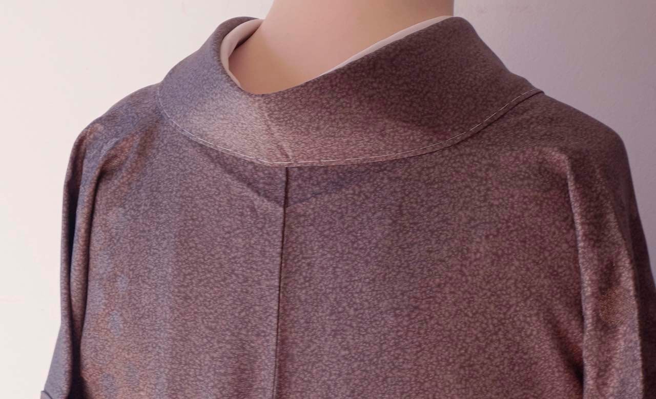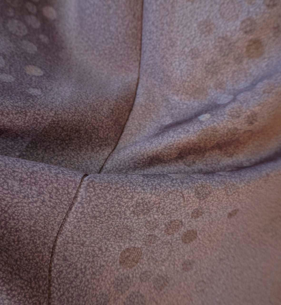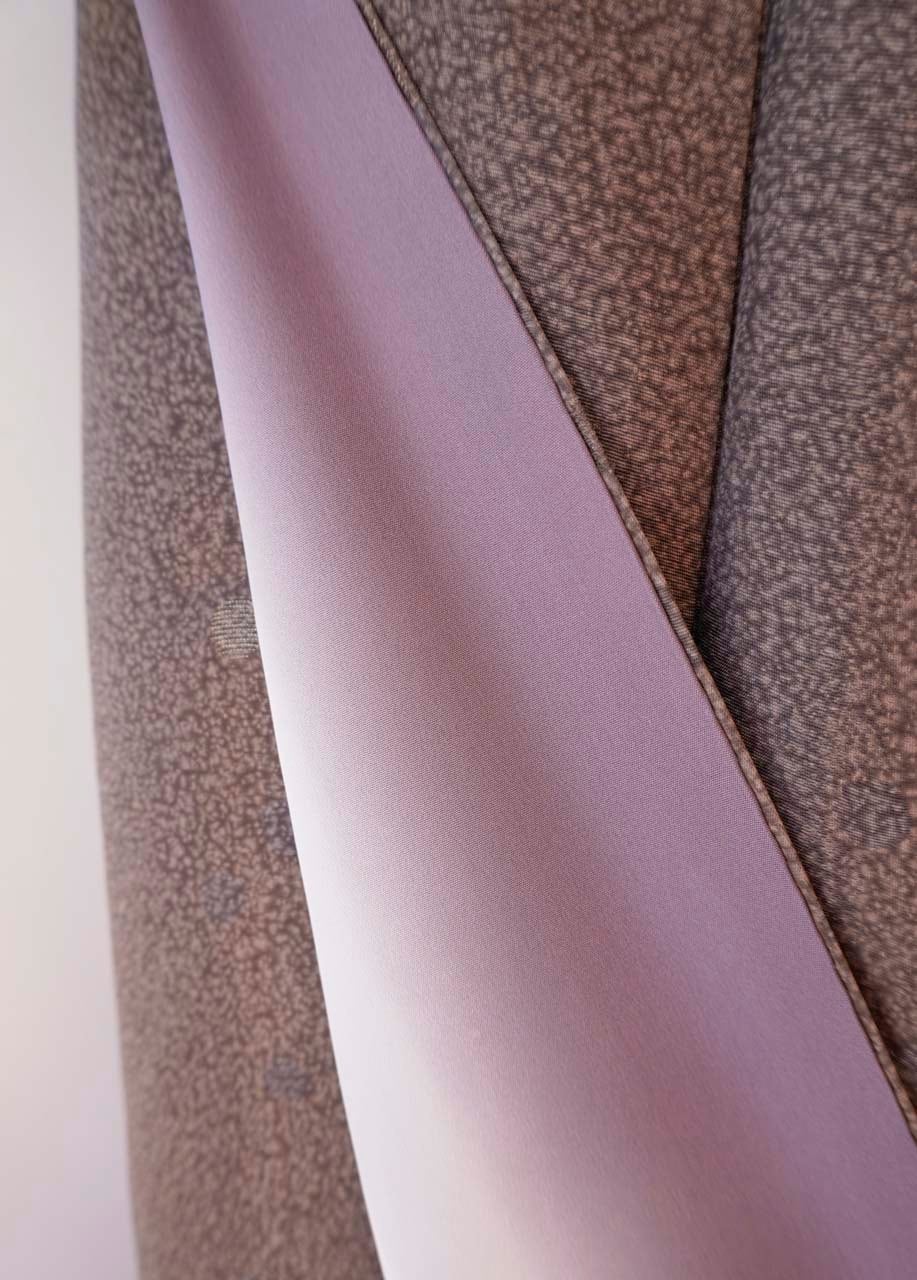 赤味の感じられるグレー系の天目染の小紋です。