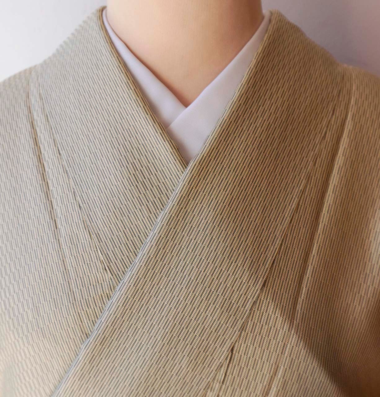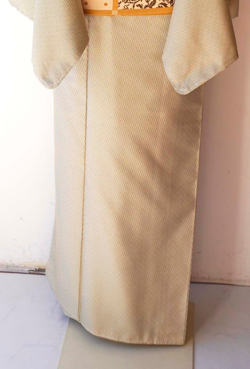 【袷】生成り色地 変わり縞文 紬