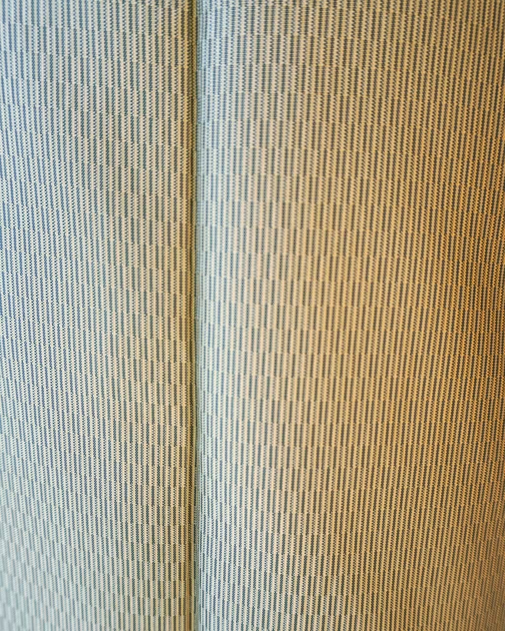 小さな長方形が縞状にモザイクのように織り出された紬です。