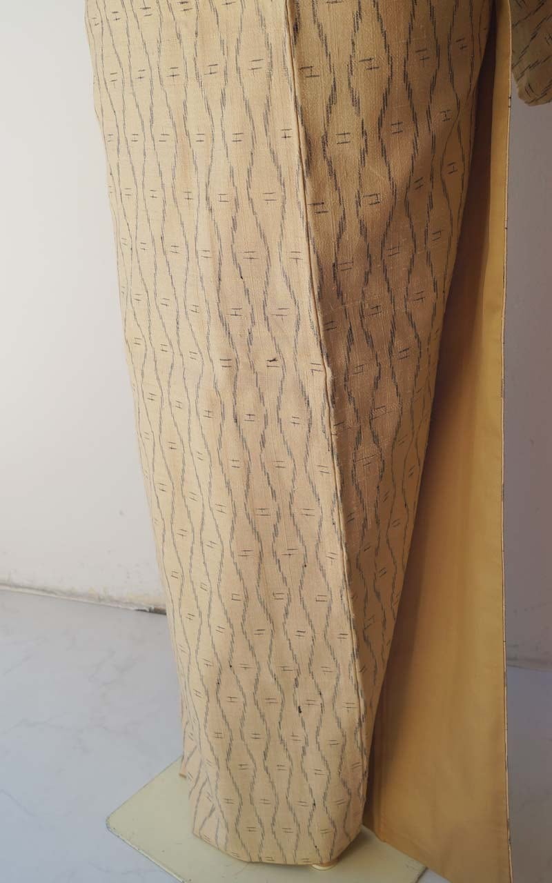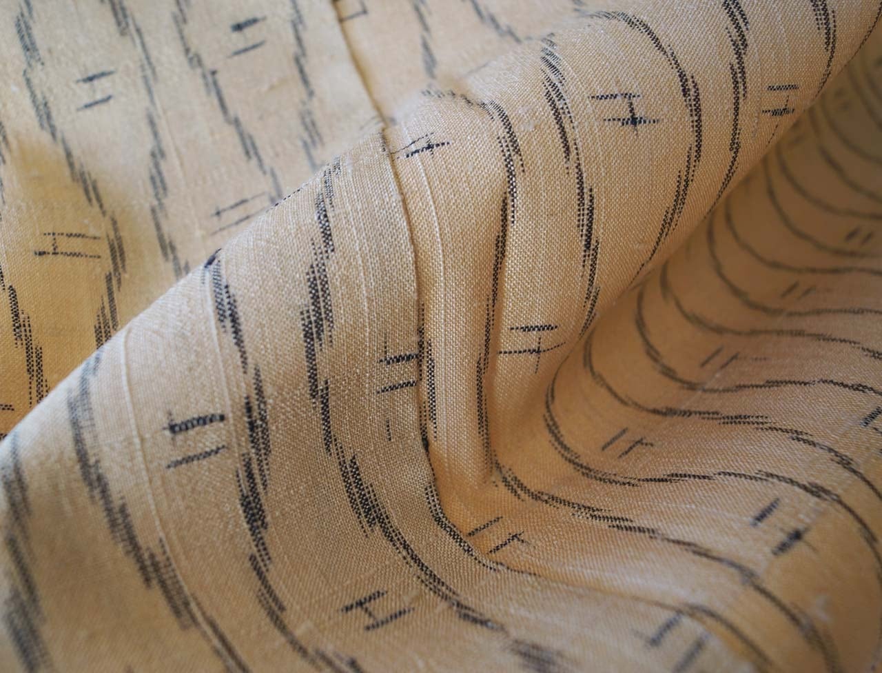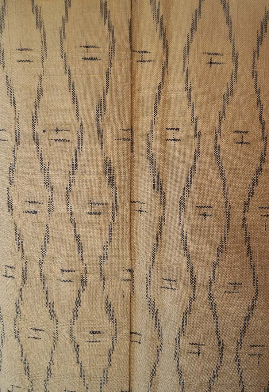 【袷】しょうざん 砥の粉色 よろけ縞に絣柄 生紬